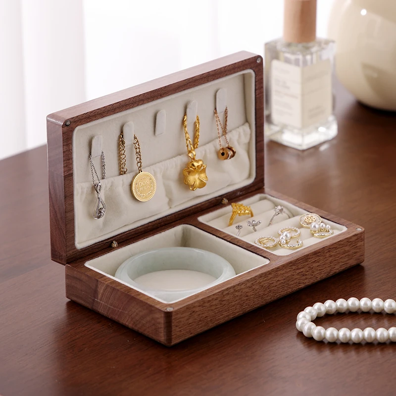 高級木製ジュエリーボックス - 多層設計で収納力抜群!ピアス、イヤリング、ネックレスを美しく整理して、あなたの宝物を引き立てます。おしゃれで実用的なアクセサリー収納に最適!