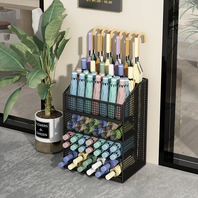家庭用傘収納ラック - 雨の日も安心!玄関に最適な水切り傘立て。ホテルロビーや商業施設でも活躍する、傘をすっきりと収納できる便利アイテム!