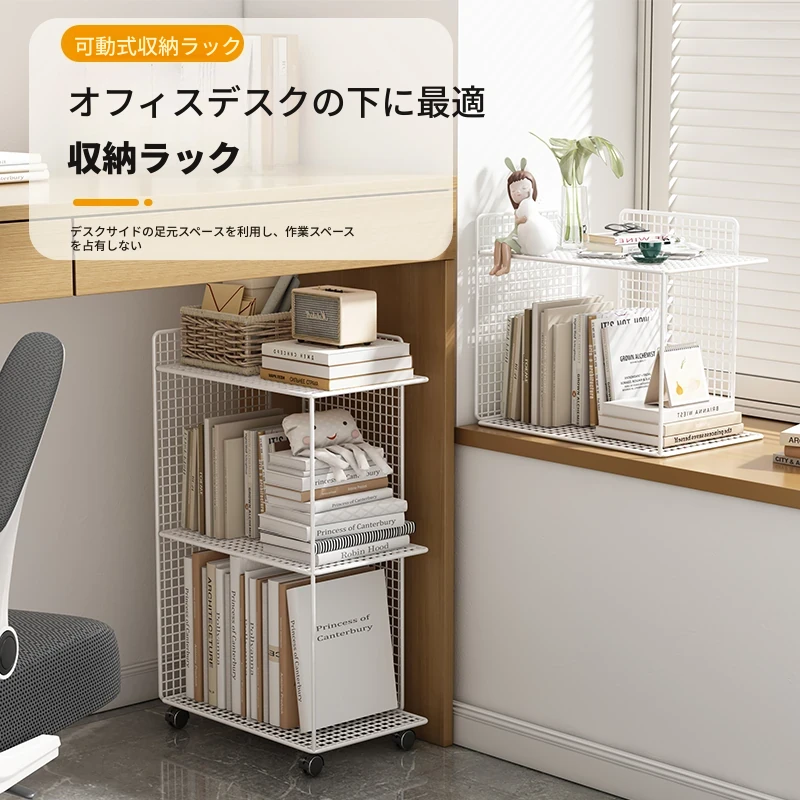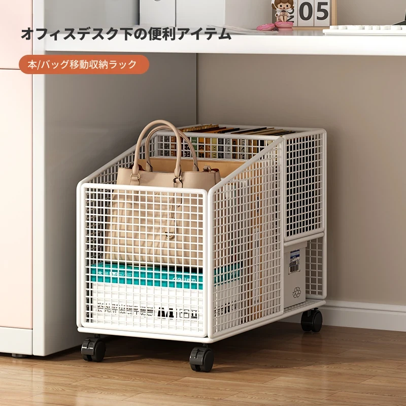 簡単移動式デスク下収納ラック|学生のための書籍やリュックサック収納に最適!家庭用デスクの横にピッタリな本棚で、スッキリ整理整頓!