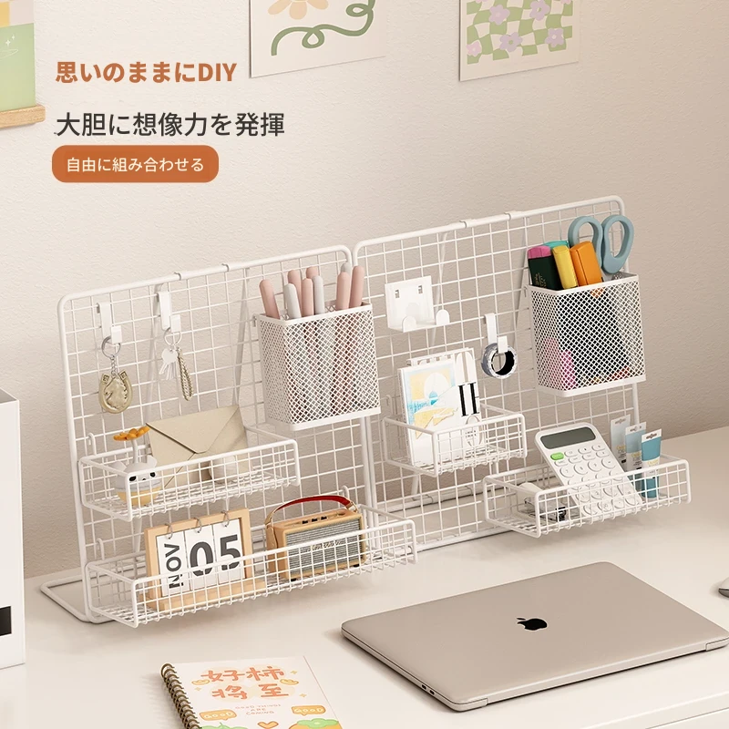 デスク用穴あきボード収納ラック|卓上スタンド型・穴あけ不要で簡単設置|多機能ディスプレイラック|コンパクトな階層式本棚|お部屋をスッキリ整理!