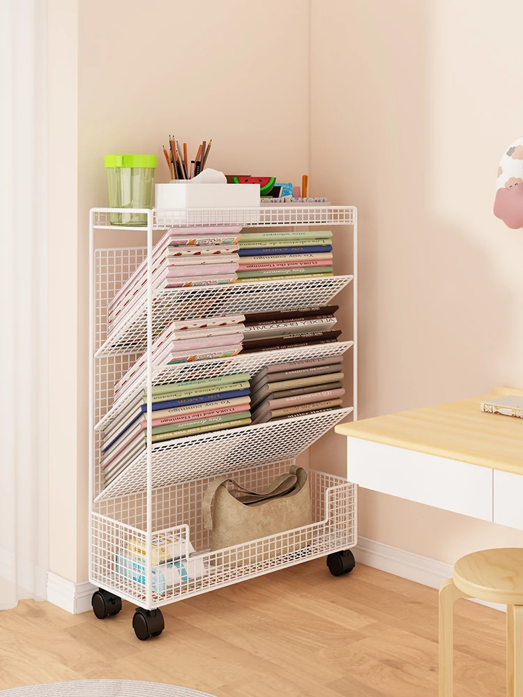 移動可能なフロアブックストレージ、学生用デスクに最適!小型書架で子供たちの絵本や文房具をスッキリ収納。お部屋をすっきり片付けて、学習環境を整えましょう!