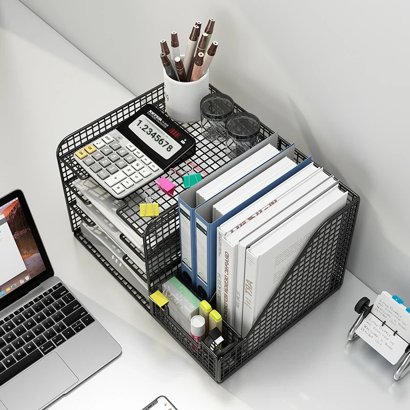 Multi-Tier Metal File Organizer for A3/A4 Desktop – Stylish Document Rack, Space-Saving Storage Box for Papers, Books, and Office Supplies