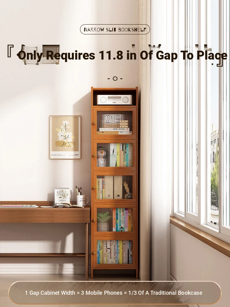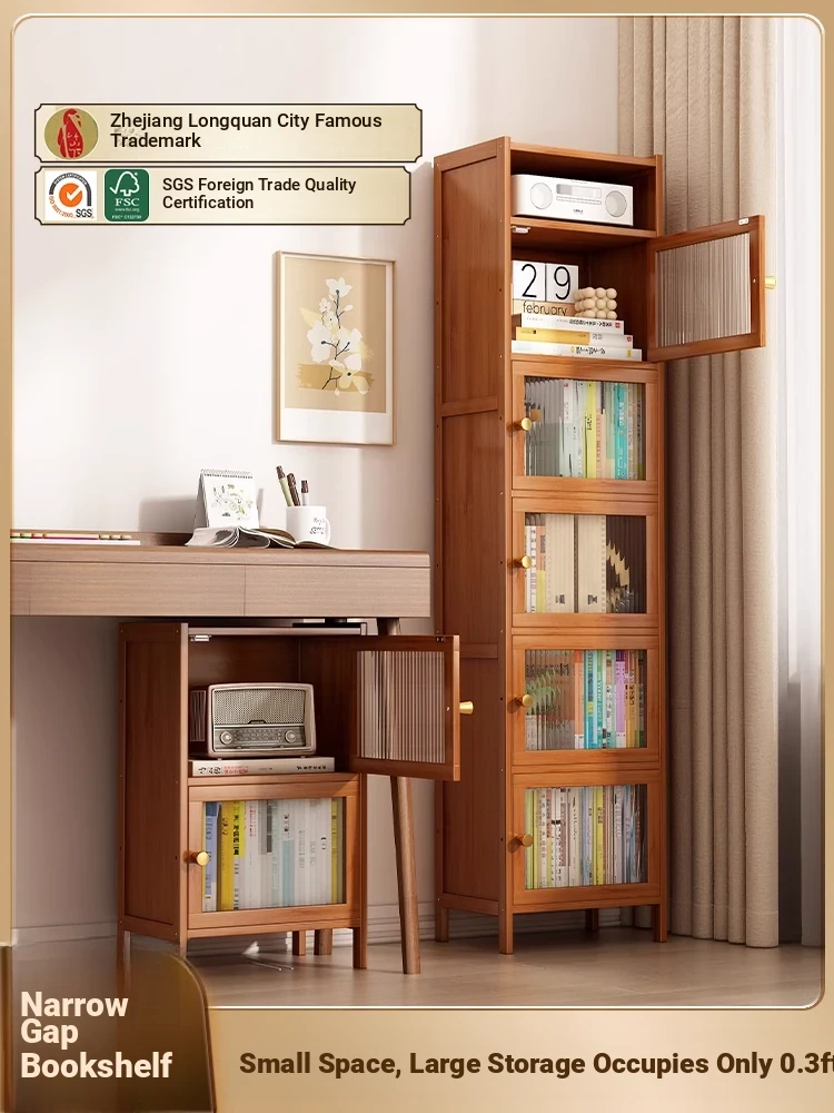 Modern Minimalist Solid Wood Floor-Standing Bookcase - Stylish Corner Narrow Storage Shelf with Dustproof Design for Books and Display