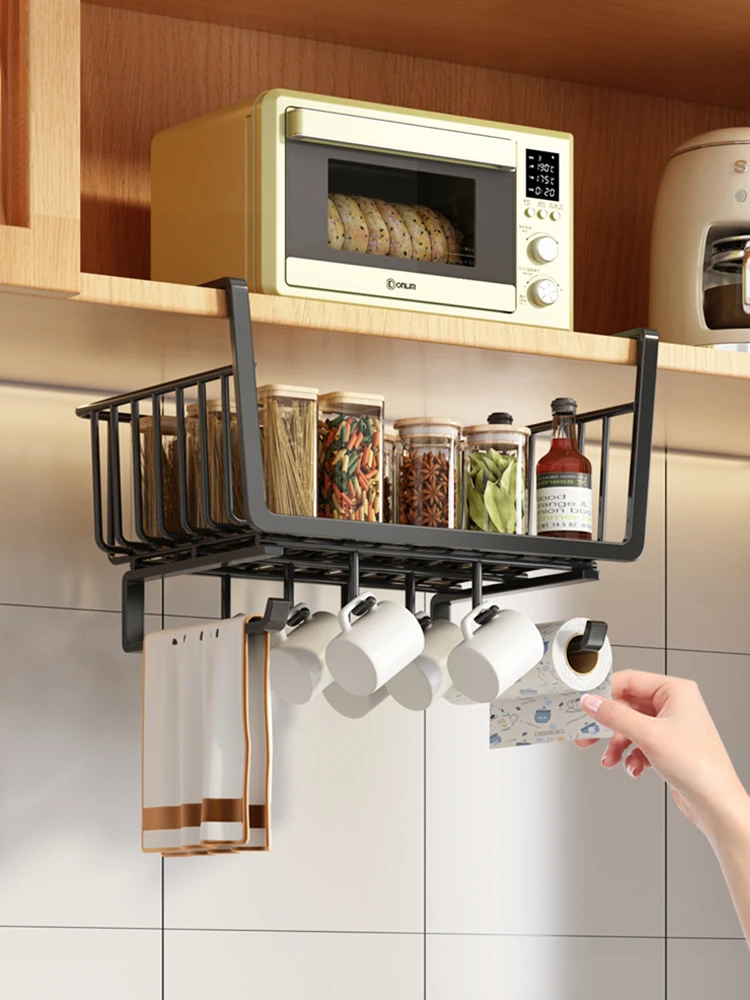 多機能キッチン収納ラック|吊り下げ式調味料ラック&ティッシュホルダーでスペースを有効活用!料理がもっと楽しくなる便利アイテム!