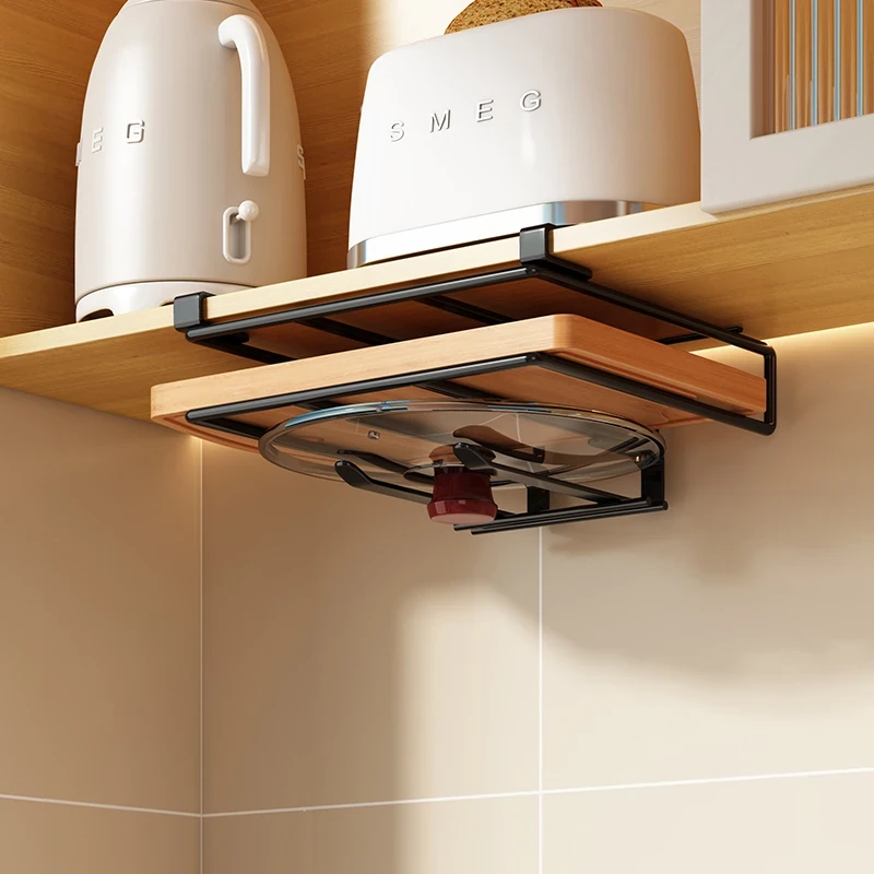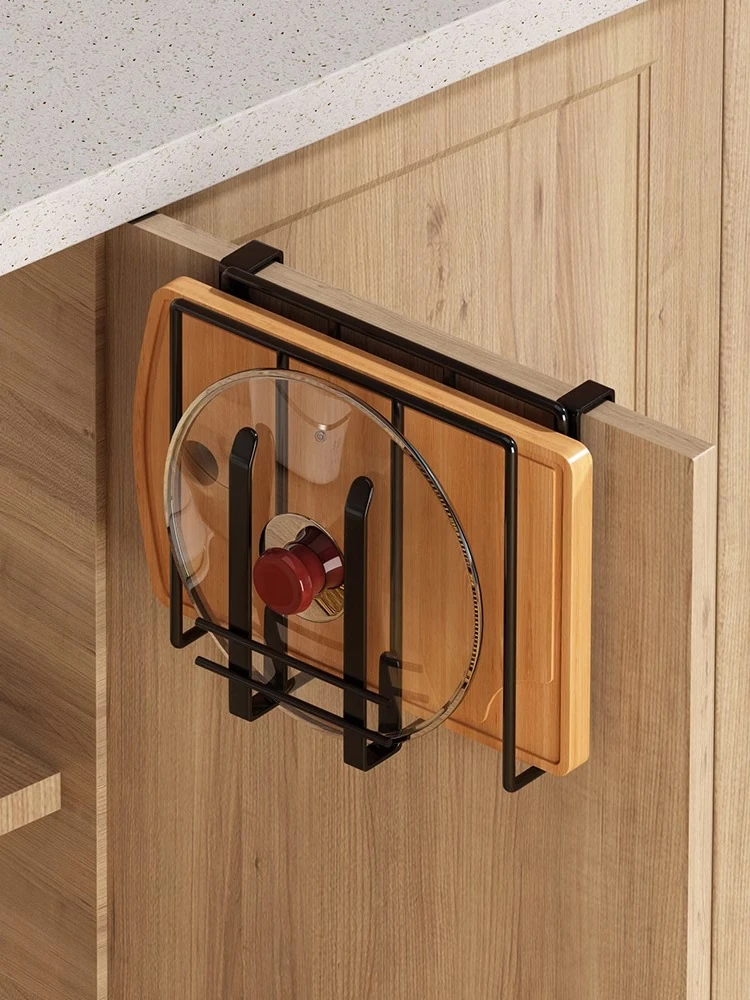 キッチン用鍋蓋スタンド - 穴を開けずに壁掛け収納!吊り下げ式のまな板ホルダーで、調理スペースをすっきり整理。多機能収納ラックで、菜板や調理器具をスマートに収納!