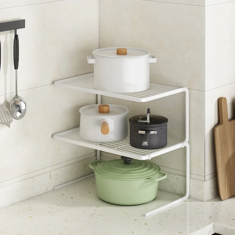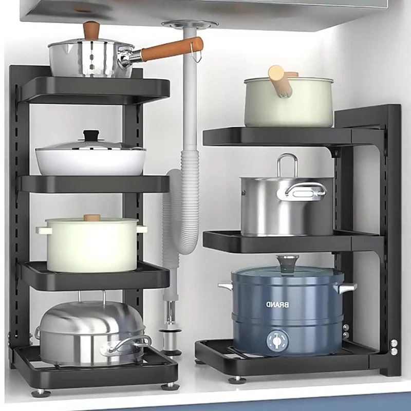 キッチン収納ラック 多段鍋スタンド 水槽下のキャビネット用 調理器具をスッキリ整理!使いやすい分別棚で、キッチンを広々と使える!調理器具の収納に最適なアイテムです。