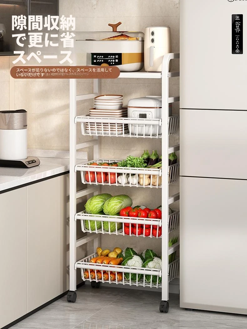 キッチン収納ラック 多層野菜スタンド 調味料や果物をスマートに整理できる多機能キャリーカート!スペースを有効活用し、料理の効率をアップ!おしゃれで実用的なアイテムです。