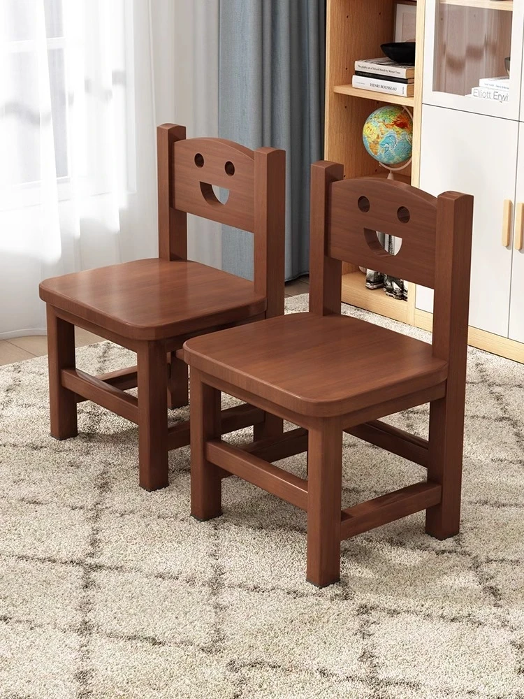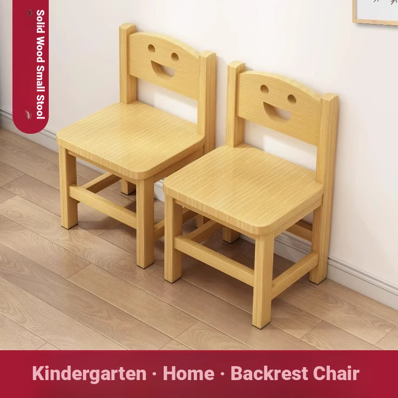 Wooden Children's Stool with Backrest - Smiley Face Design, Perfect for Home, Kindergarten, and Learning! Ideal for Kids' Dining and Study Sessions.