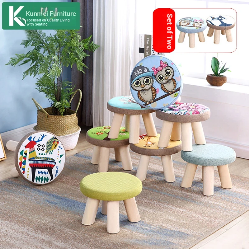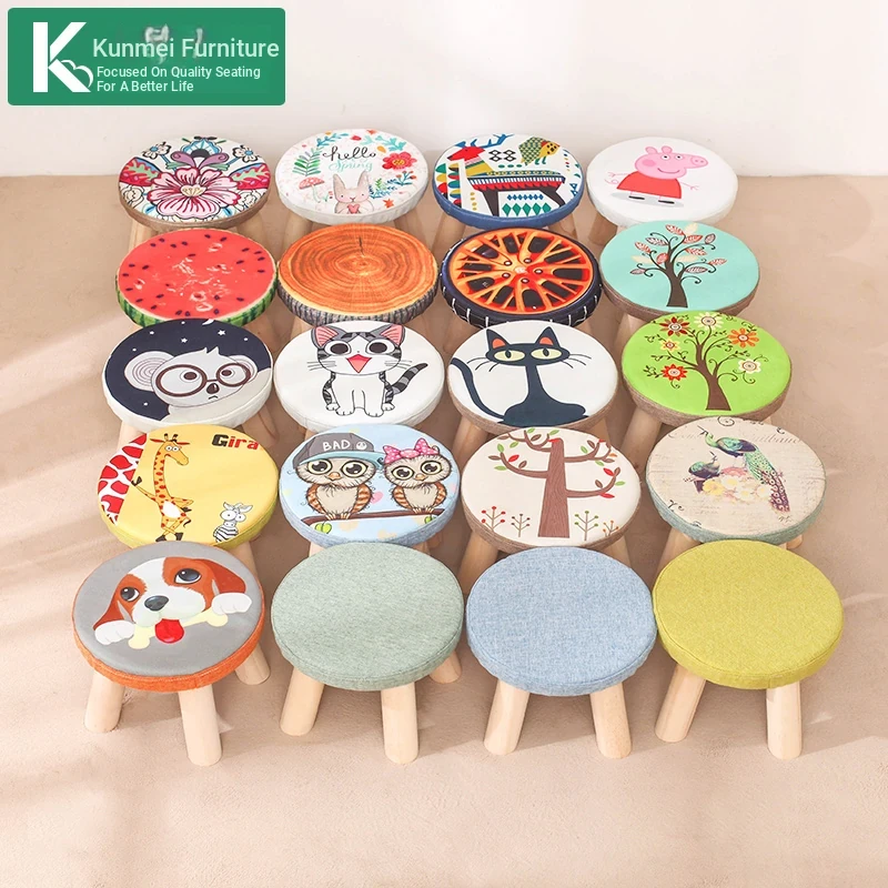 Stylish Solid Wood Stool for Home Use - Cute Round Stool for Kids, Creative Cartoon-Inspired Small Bench, Perfect for Children's Sofa and Play Areas