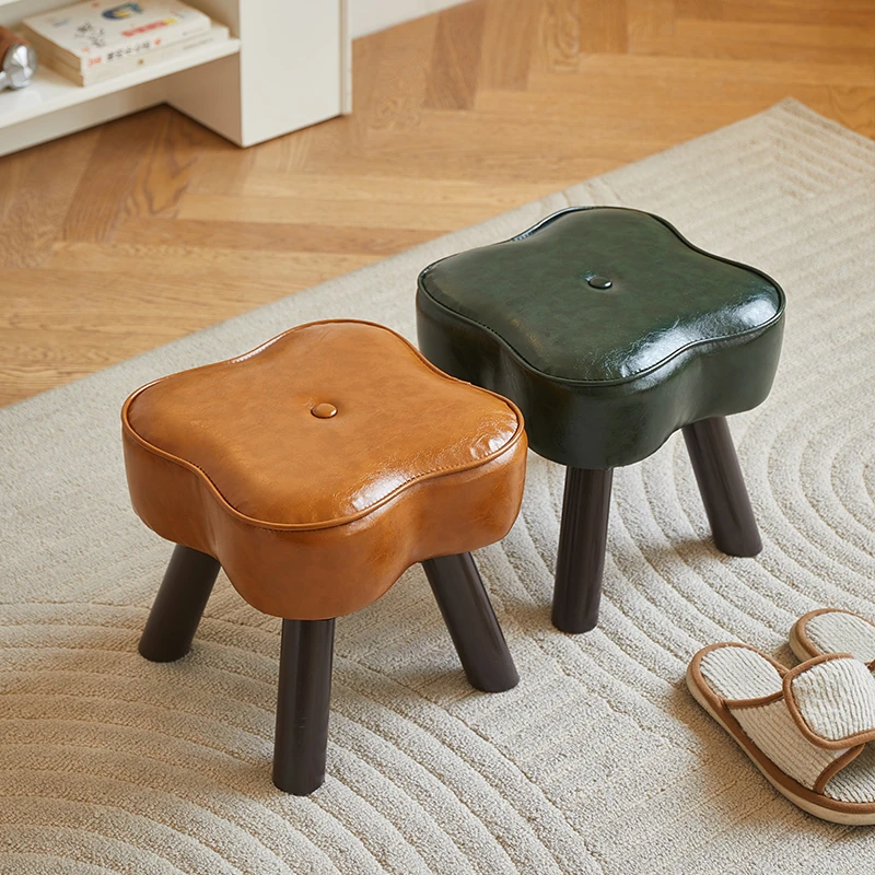 Vintage Style Small Stool for Home Entryway - Creative Upholstered Shoe Bench, Solid Wood Low Sofa Stool, Perfect for Living Room Comfort and Versatility