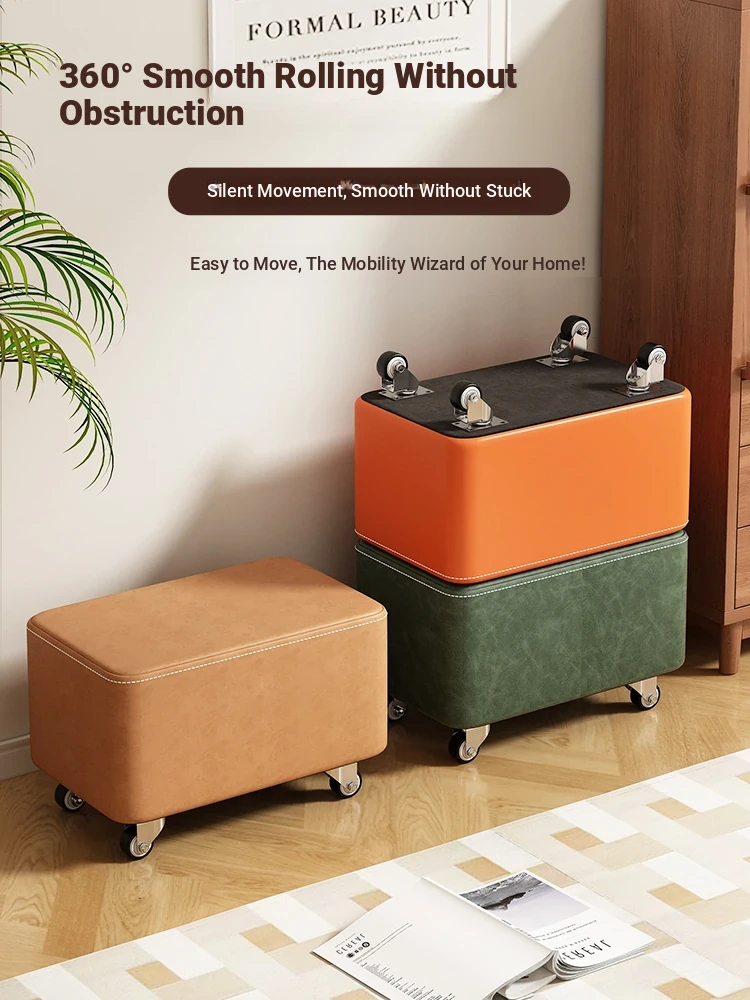 Home Use Stool - Comfortable Low Bench for Living Room, Sofa Footrest, Entryway Shoe Changing Stool, Square Soft-Padded Rolling Stool for Kids and Adults