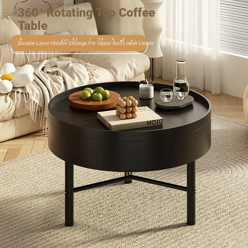 Modern Round Coffee Table with Rotating Storage - Stylish Minimalist Design for Small Spaces, Featuring a Double-Layer Shelf for Home Use. Perfect for Your Living Room!