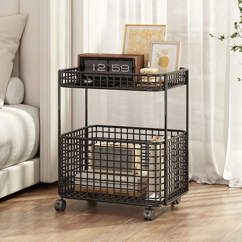 Stylish Movable Small Coffee Table & Sofa Side Table - Versatile Bedroom Nightstand Organizer with Iron Frame for Efficient Storage and Chic Décor