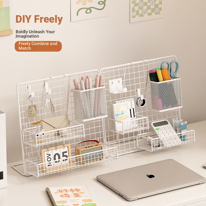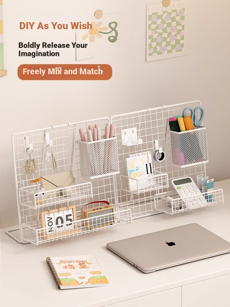 Desktop Display Rack for Kindergarten Art Projects - Grid Photo Hanging Organizer and Storage Shelf with Iron Mesh Design