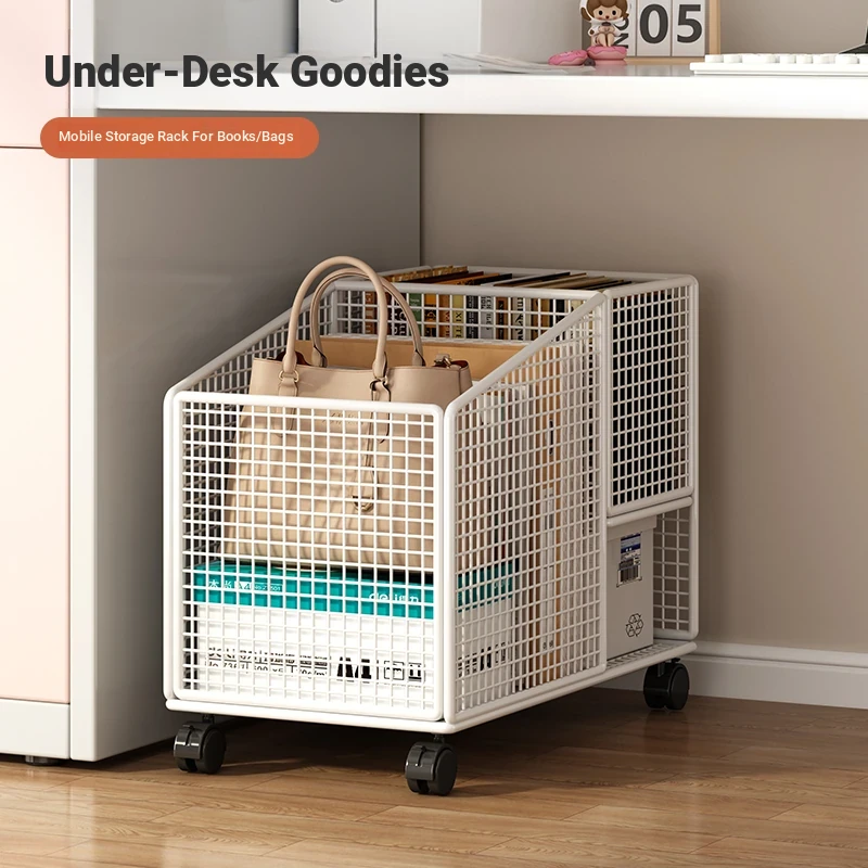 Compact Under-Desk Bookshelf - Movable Storage Rack for Students, Perfect for Organizing Backpacks and Books Next to Your Desk, Ideal for Home Use