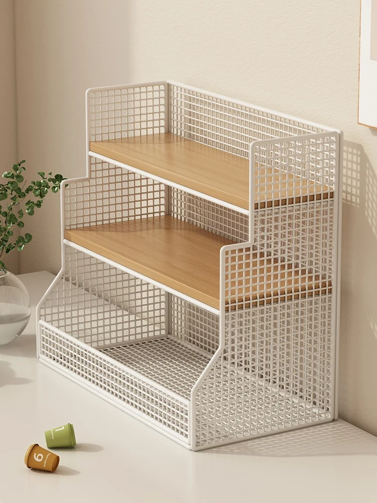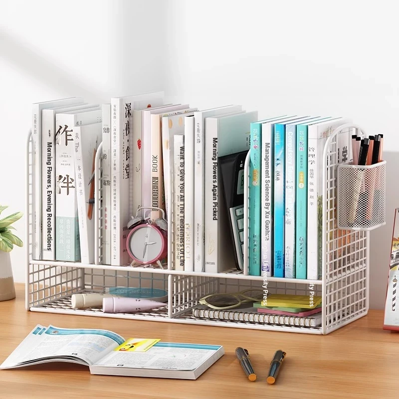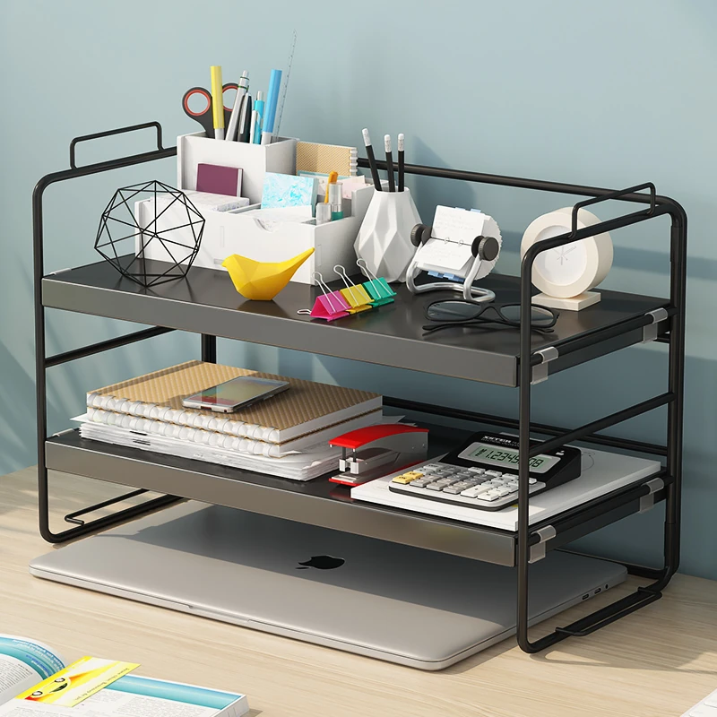 Elegant Iron Bookshelf Organizer - Multi-Layer Desktop Storage Rack for Office, Perfect for Books and Supplies, Space-Saving Desk Divider and Storage Solution