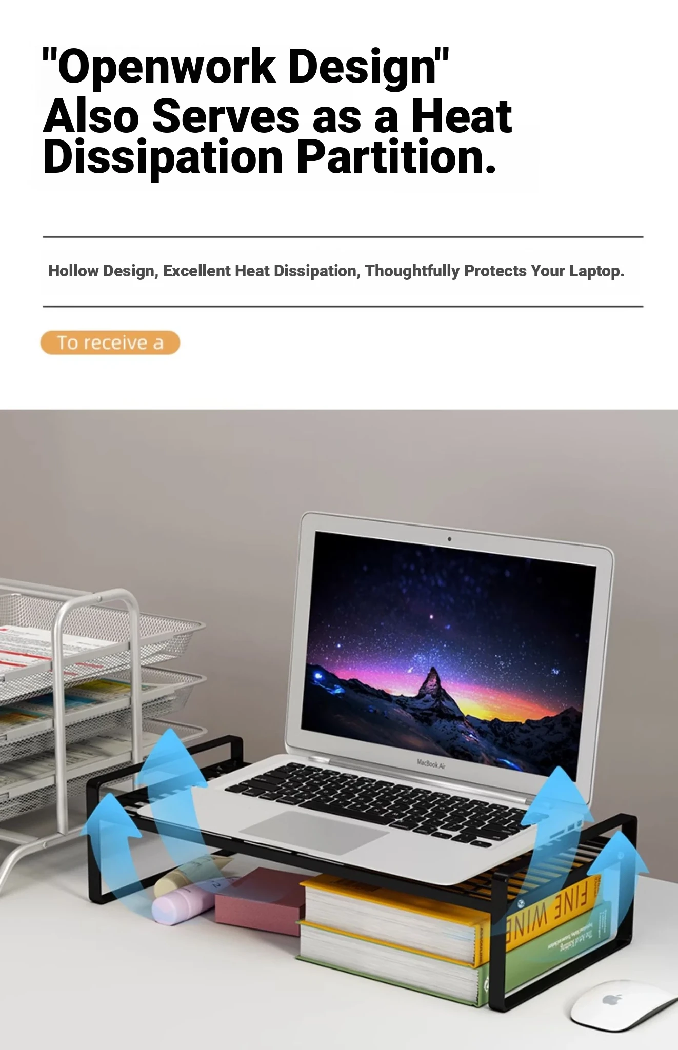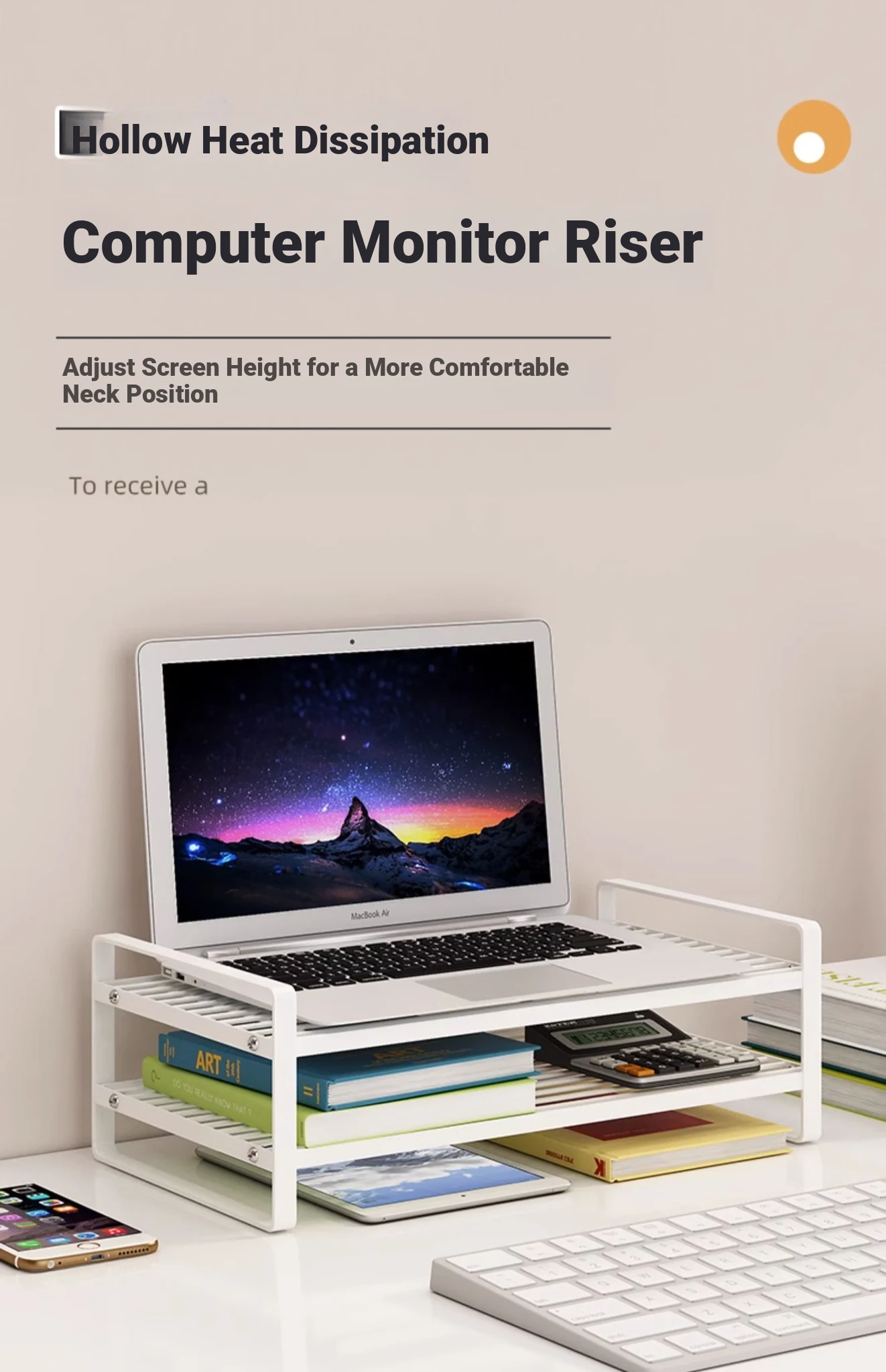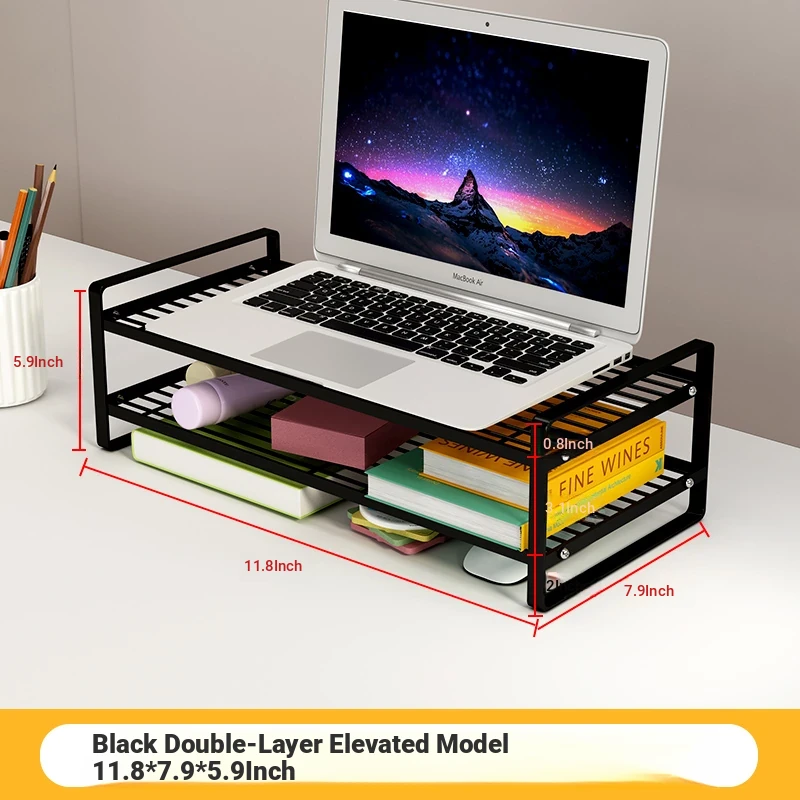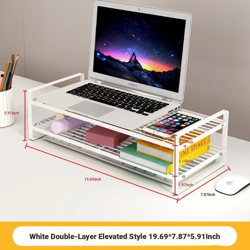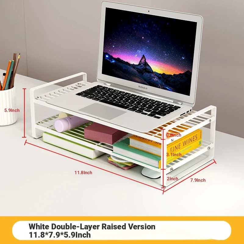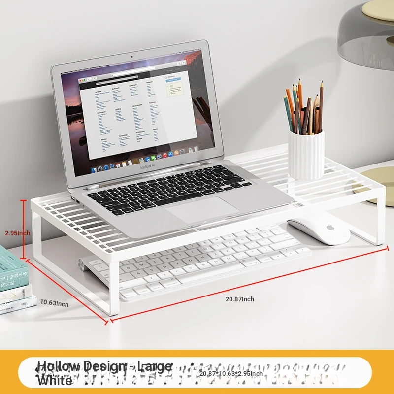 Adjustable Laptop Riser Stand - Multi-functional Cooling Holder and Desktop Organizer with Hollow Design for Enhanced Airflow and Efficient Storage Solutions
