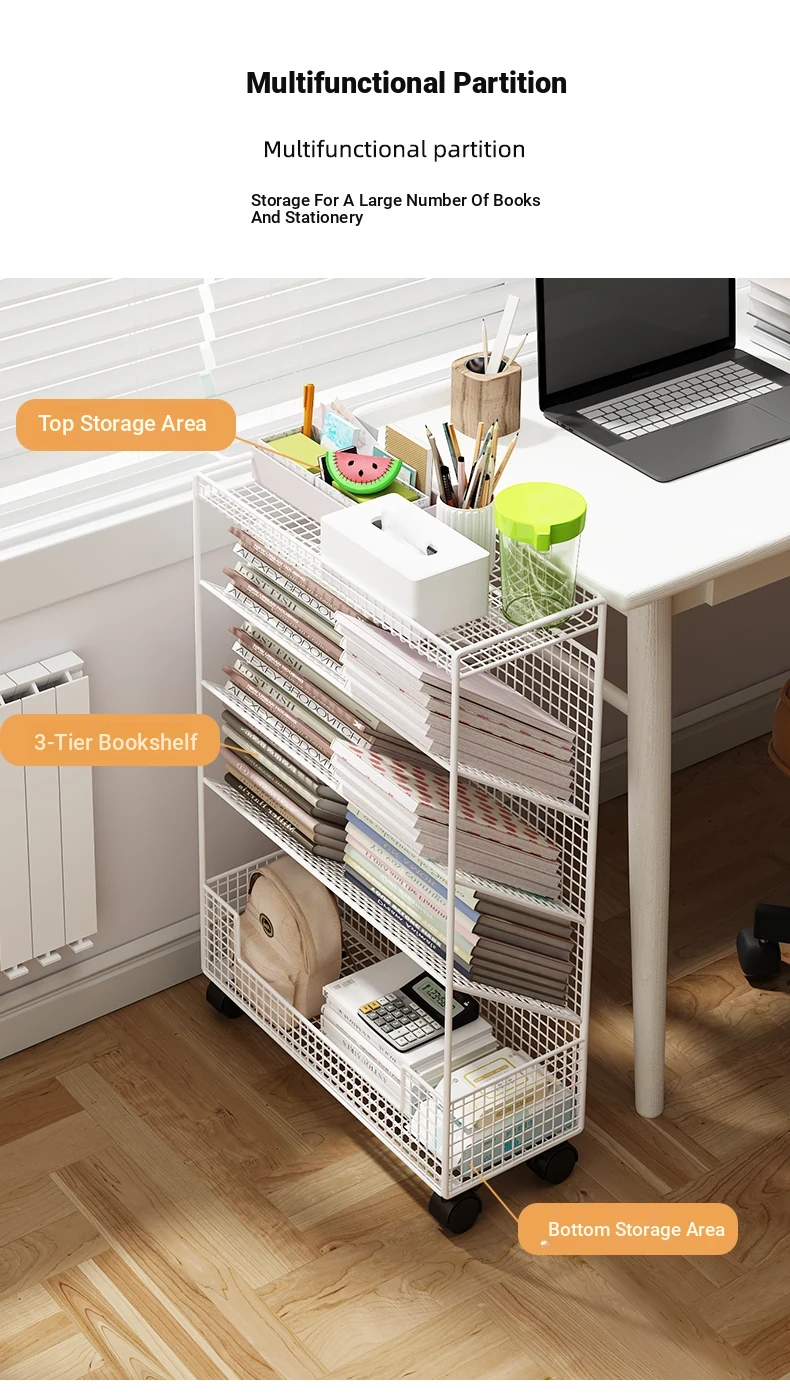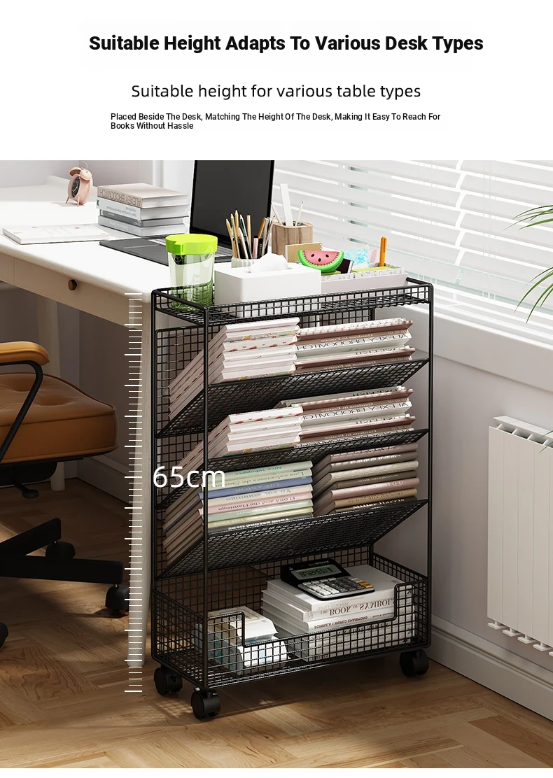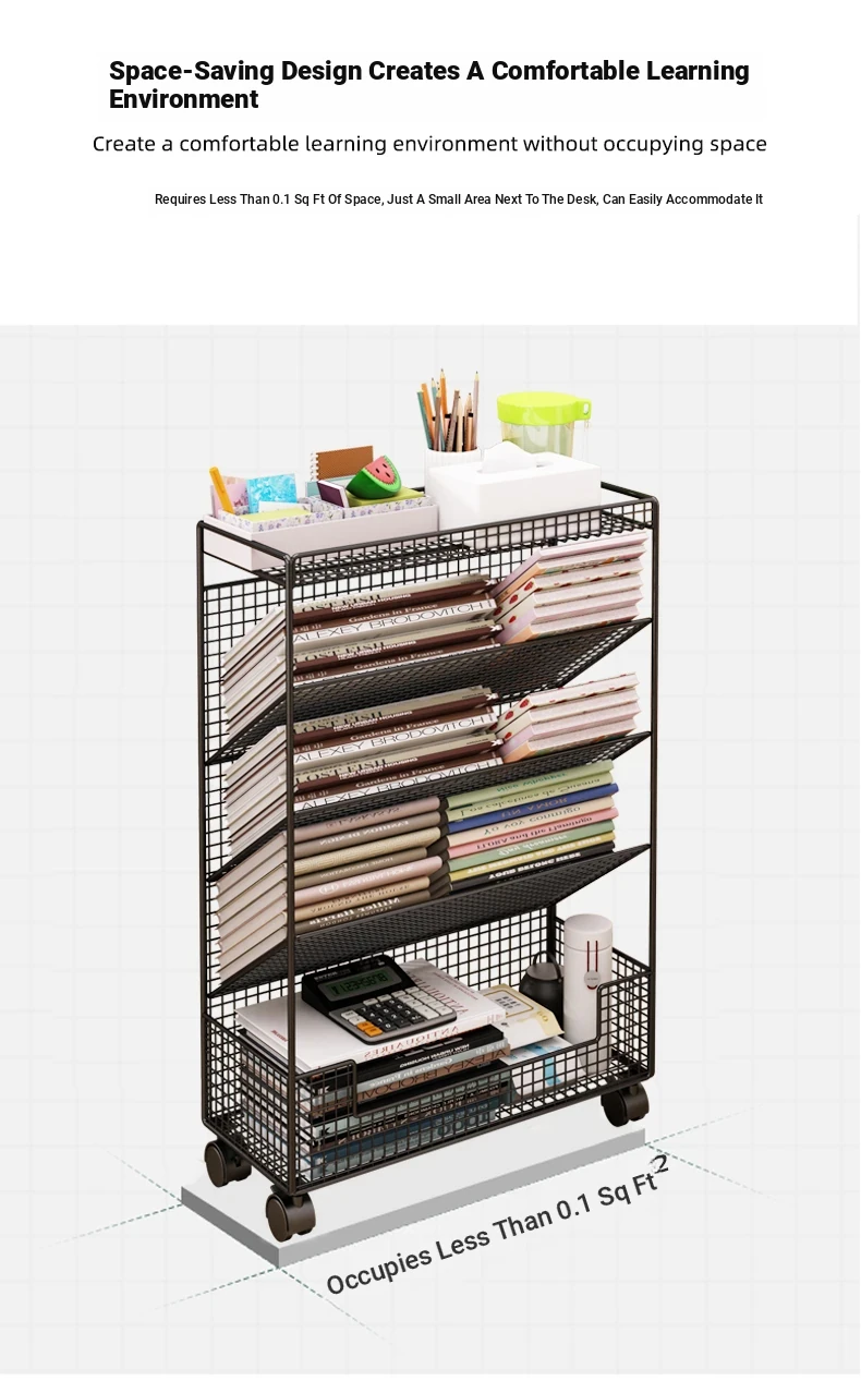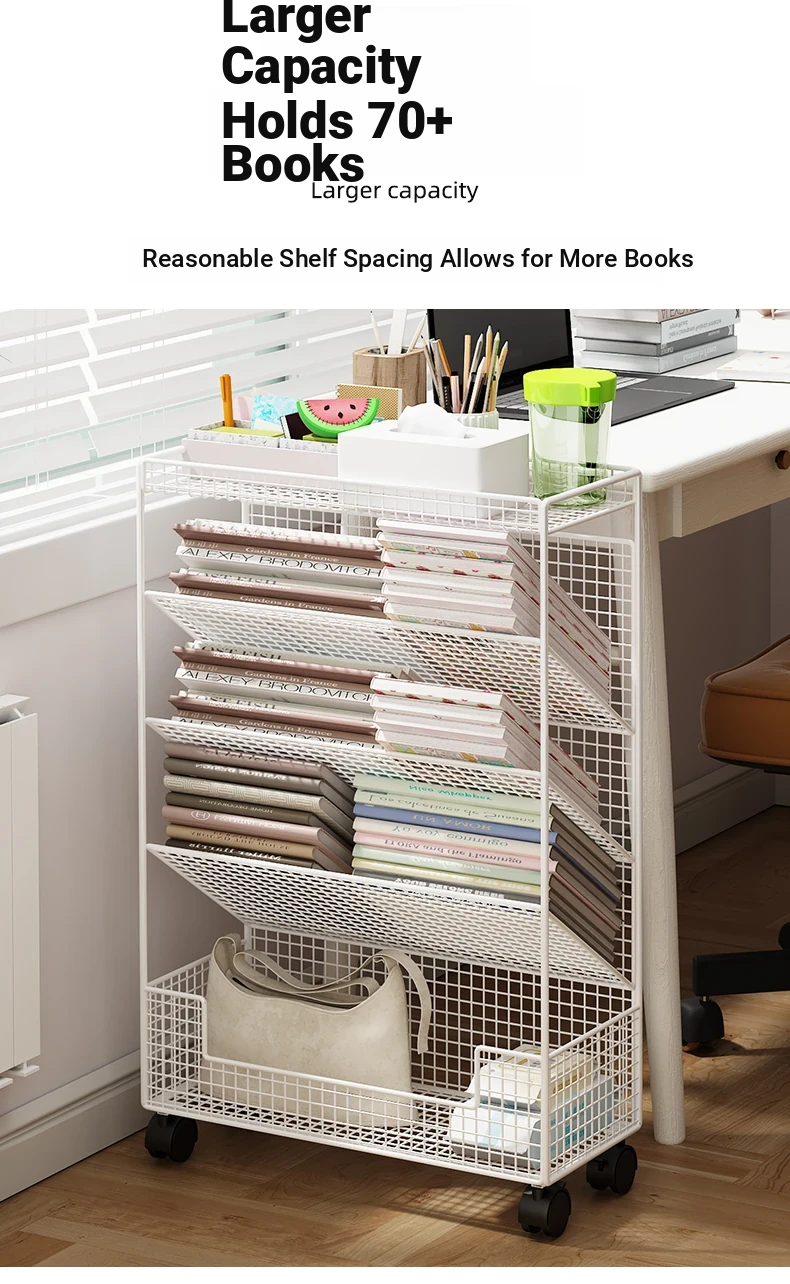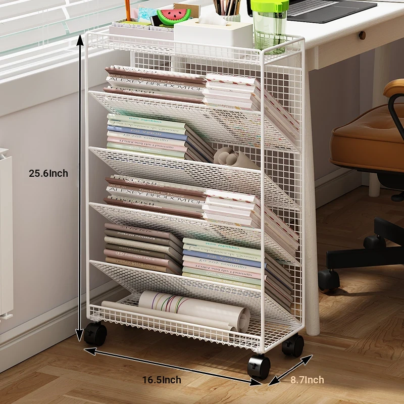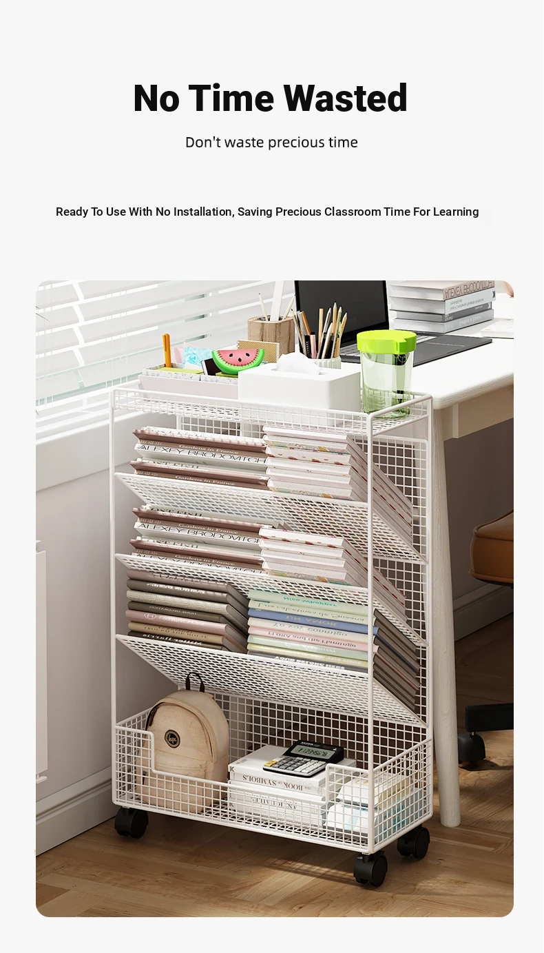 Children's Rolling Book Rack - Compact Storage Shelf for Desk Side, Easy to Move, Ideal for Organizing Books and Supplies in Any Classroom or Study Area.