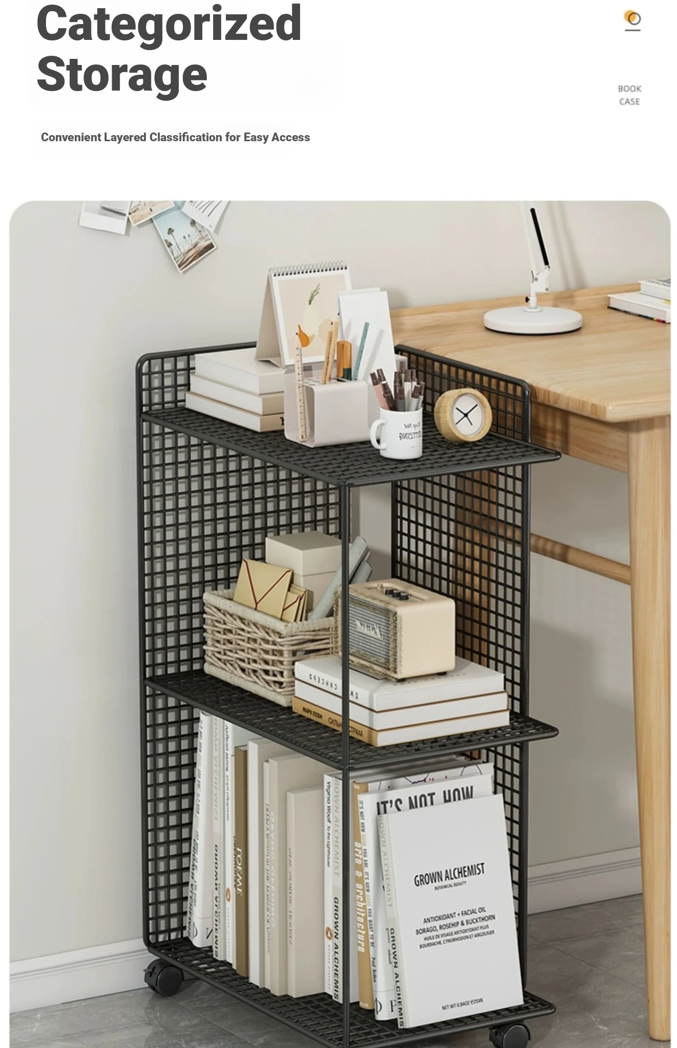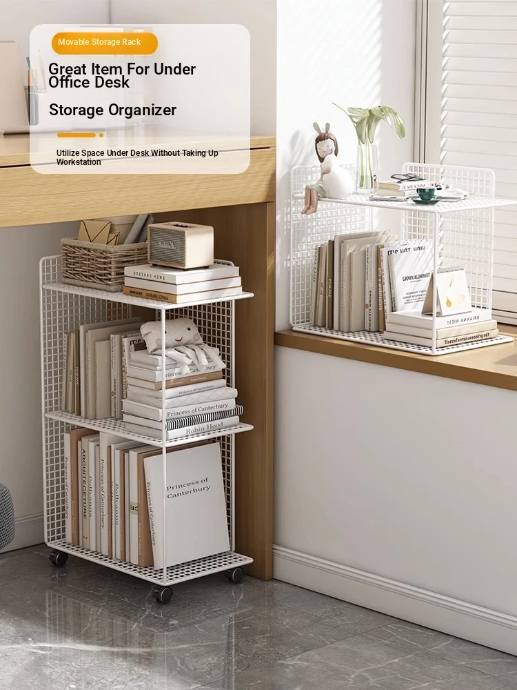 Compact & Mobile Bookshelf - Versatile Floor Storage Cart for Desktop Use, Ideal for Organizing Books and Essentials, Perfect for Small Spaces!