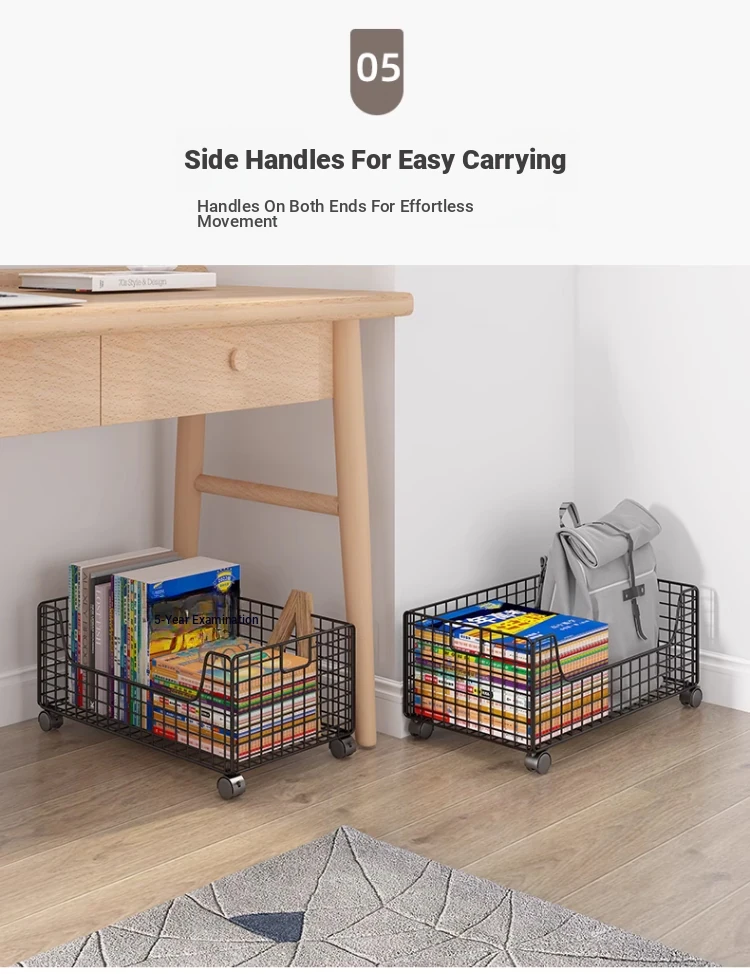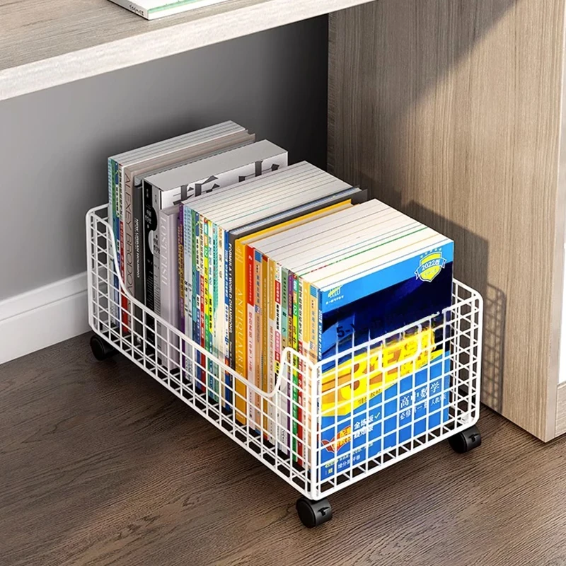 Compact Mobile Bookshelf on Wheels - Easy-to-Move Floor Storage Rack for Books and Essentials, Perfect for Under-Desk Organization.
