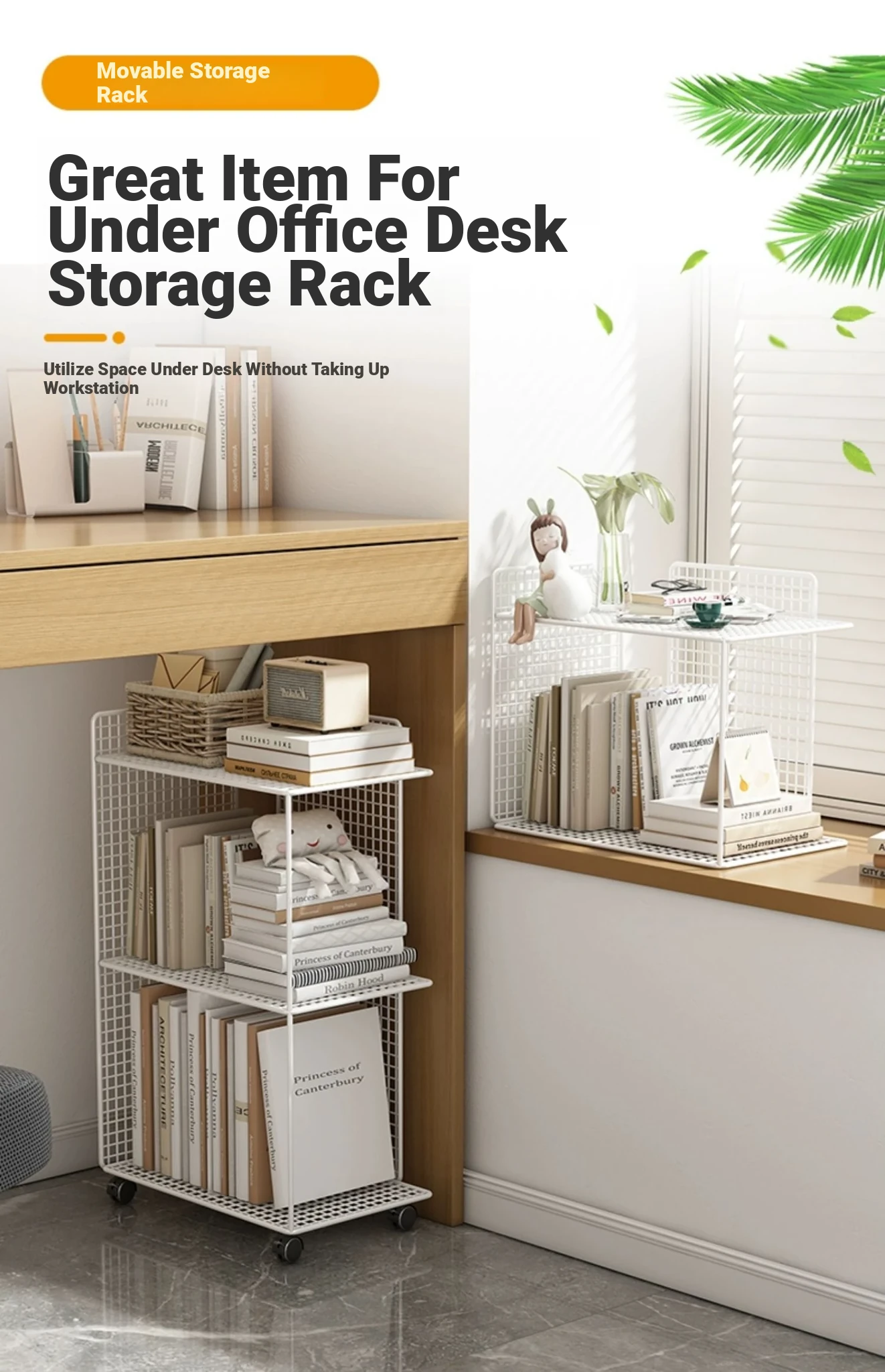 Compact Under-Desk Bookshelf - Movable Storage Rack for Students, Perfect for Organizing Backpacks and Books Next to Your Desk, Ideal for Home Use