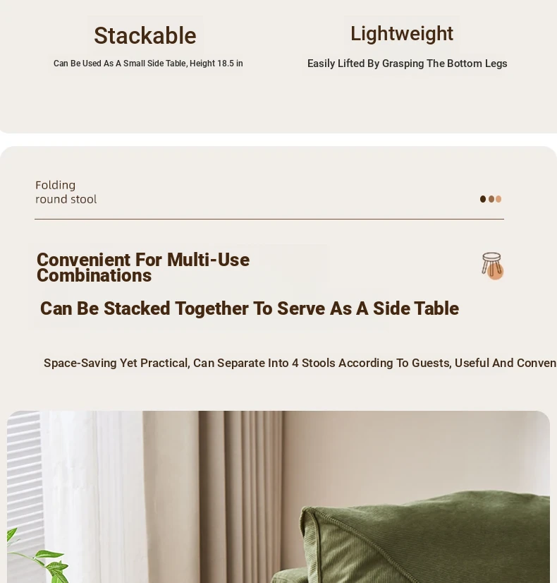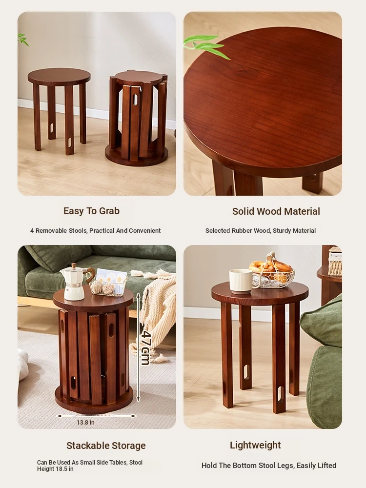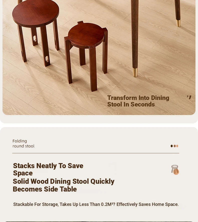 Compact Wooden Folding Stool Set - Versatile and Stackable High Chairs for Dining Tables and Coffee Tables - Perfect for Home Use, Space-Saving Design, Durable and Stylish