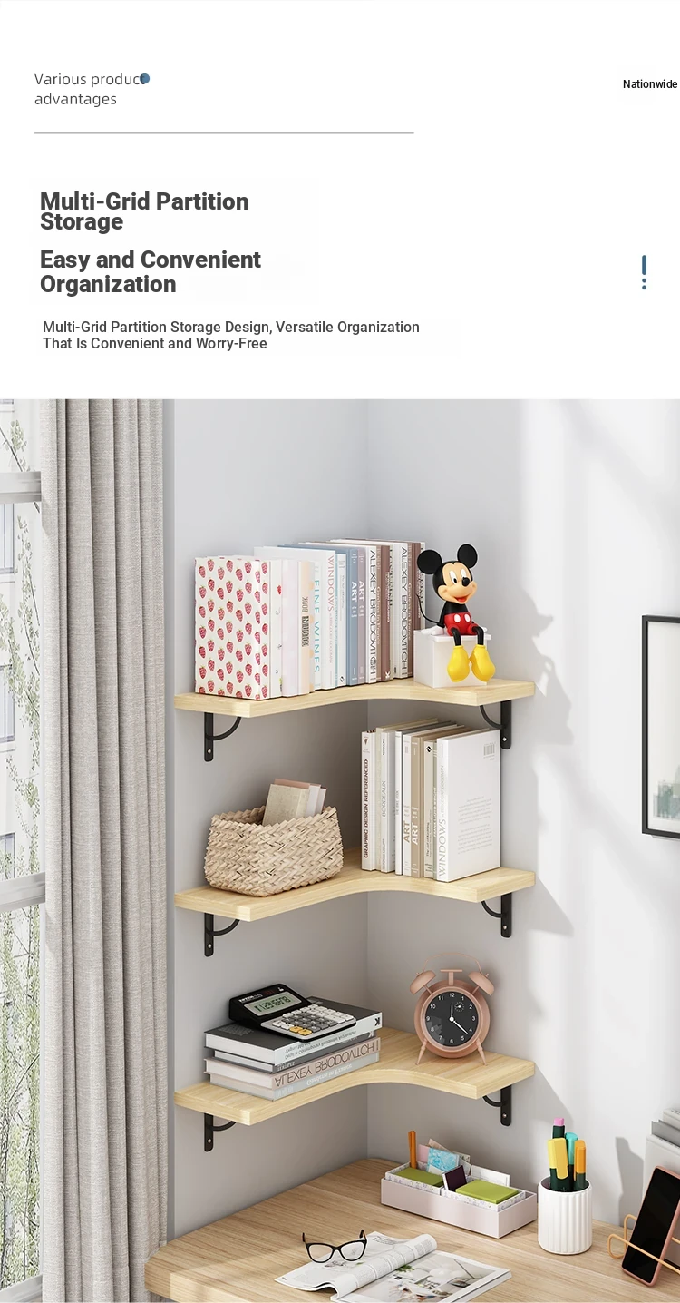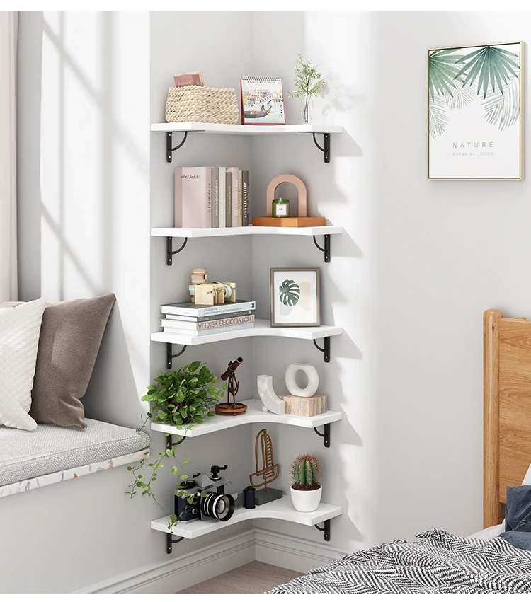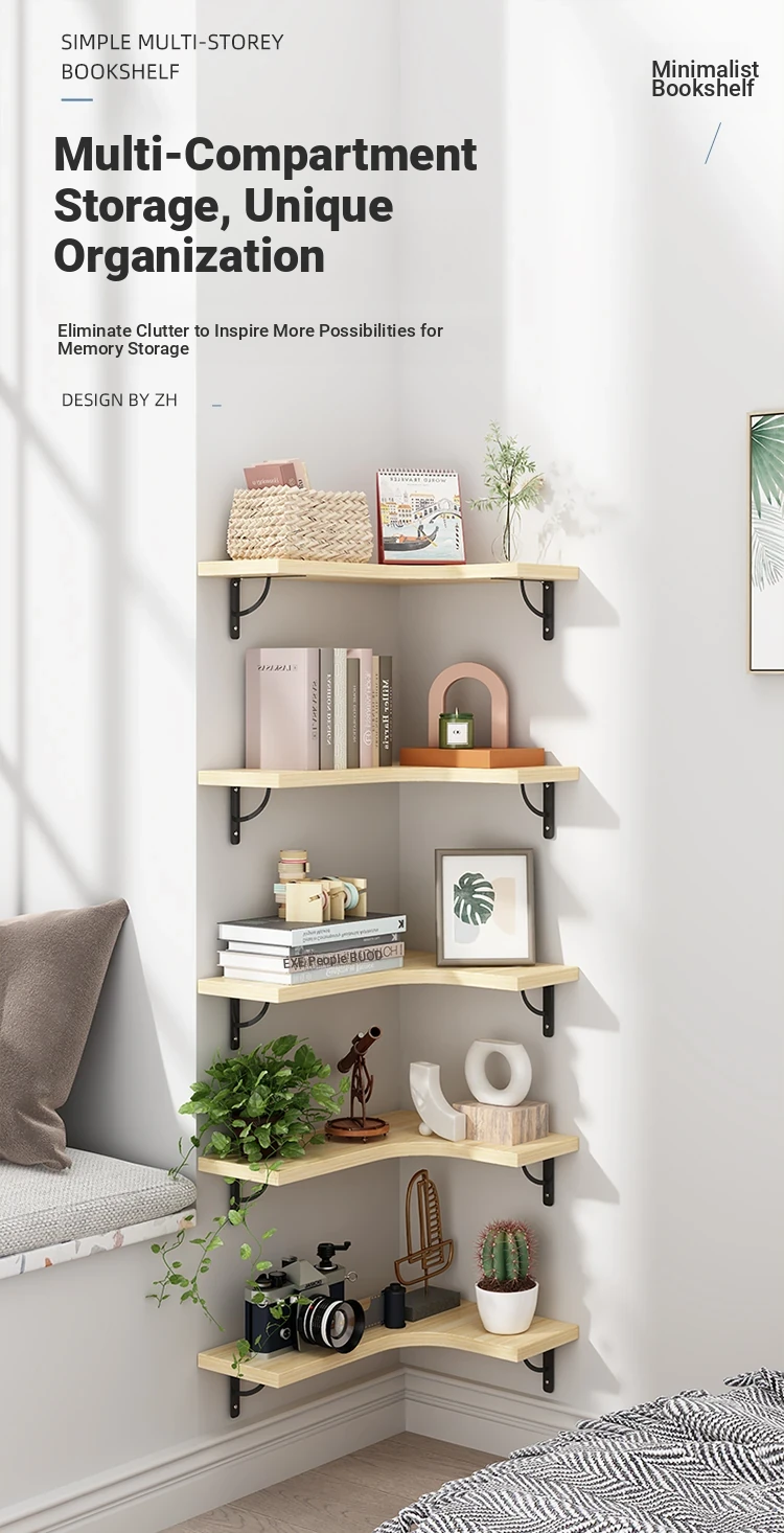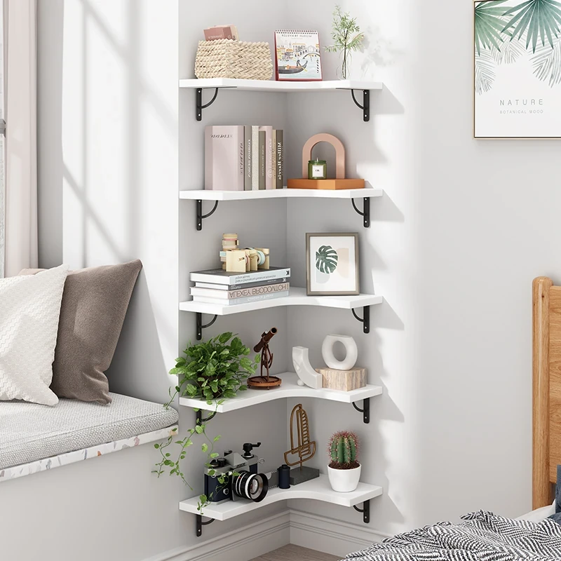 Corner Wall-Mounted Bookshelf - Multi-Layer Storage Rack for Easy Organization - Stylish Triangular Wall Shelf for Efficient Space Utilization