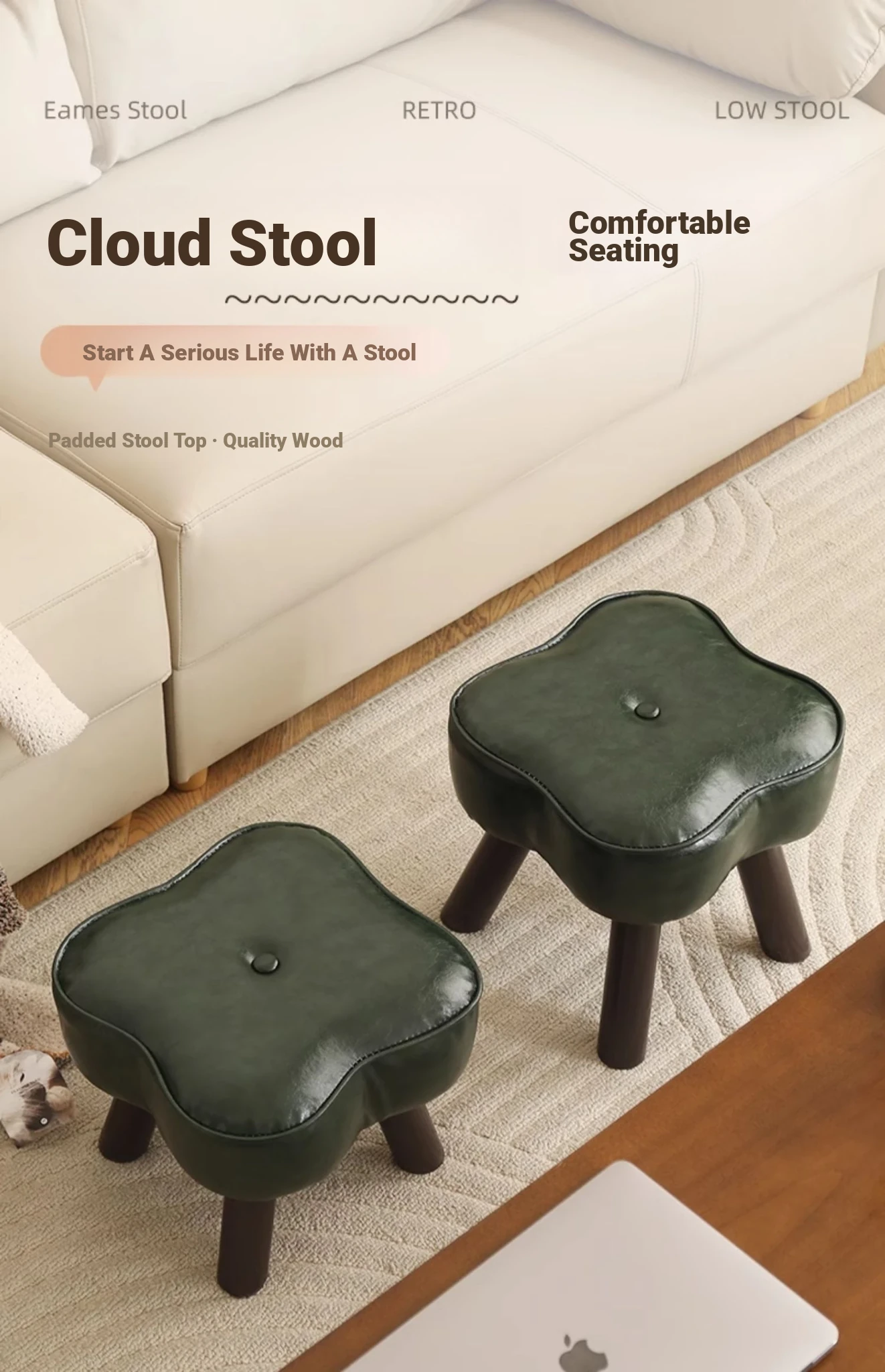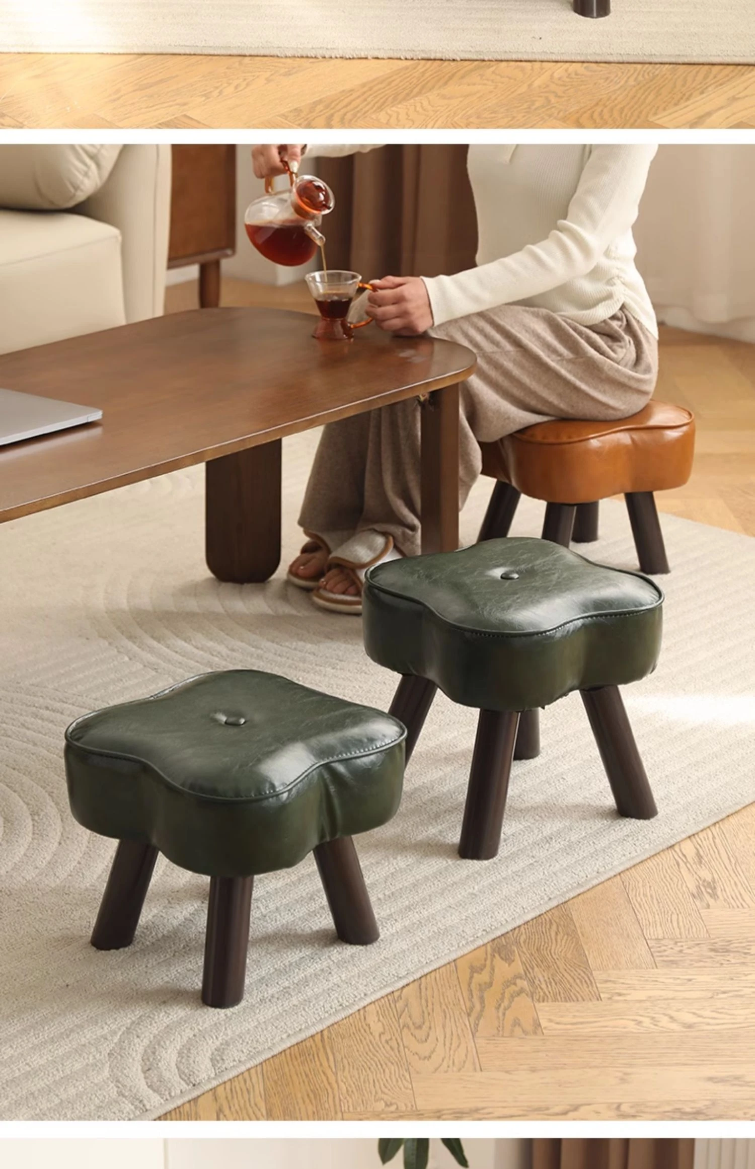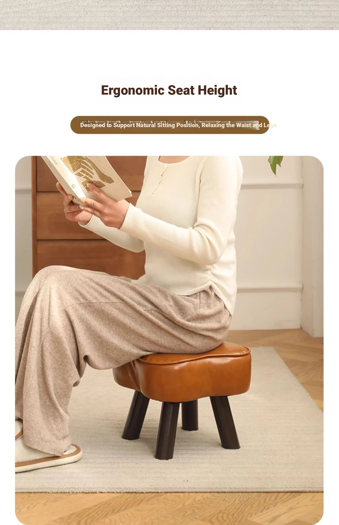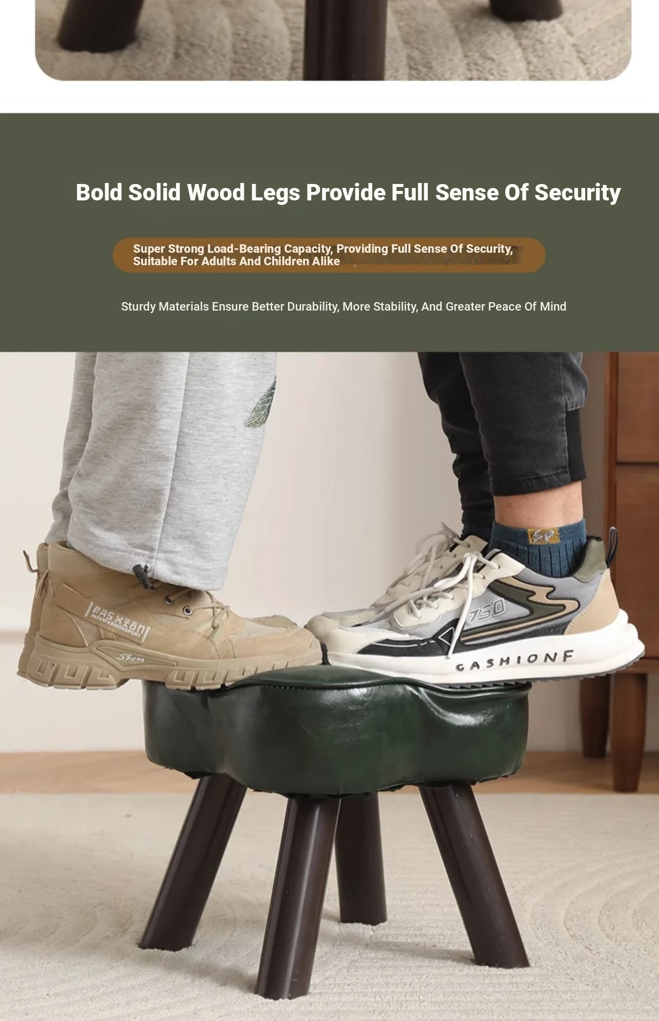 Cozy Home Stool - Versatile Low Bench for Living Room, Entryway Shoe Changing, Soft Padded Leather Seat, Durable Solid Wood Design - Perfect for Small Spaces and Modern Decor
