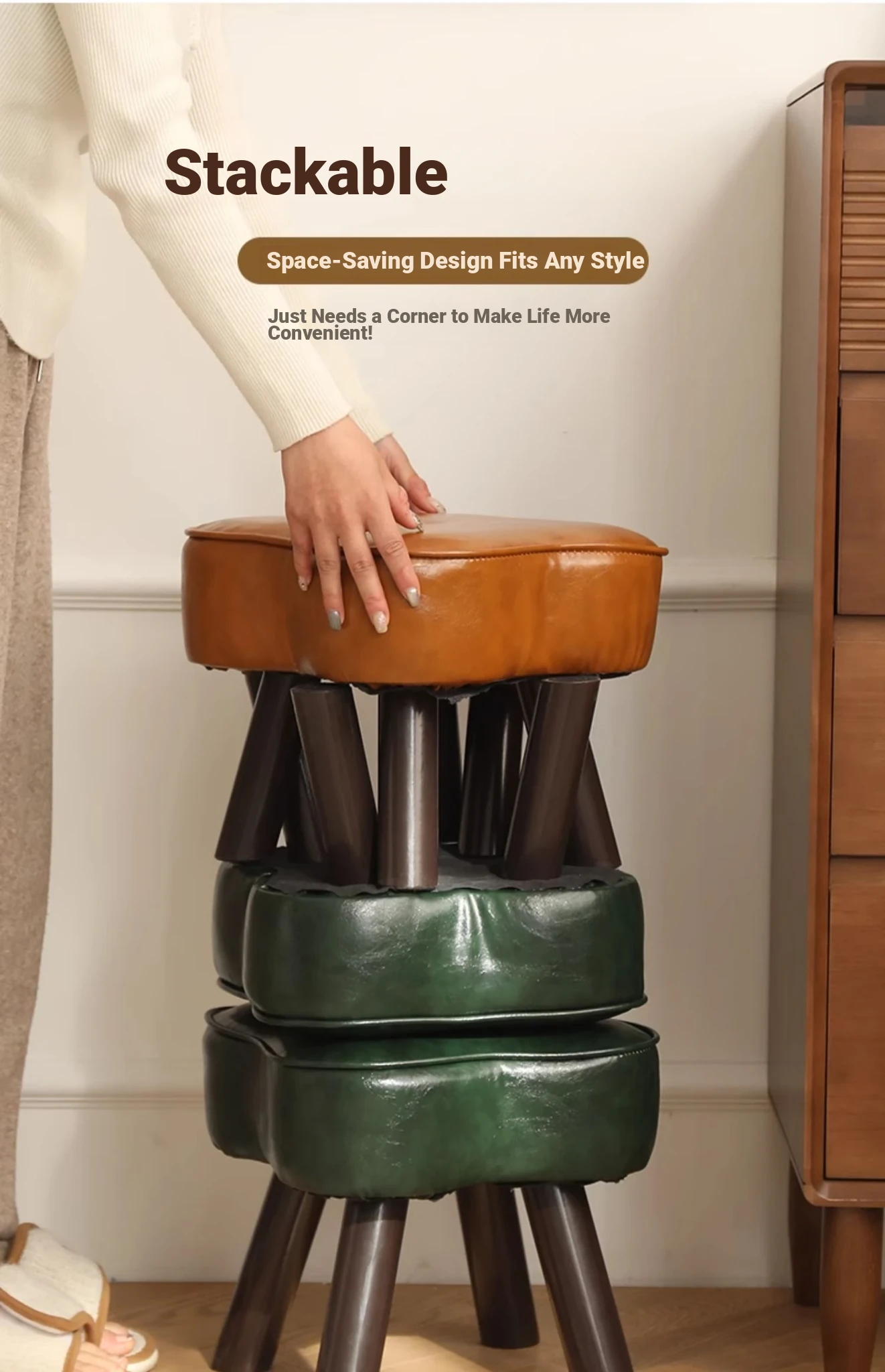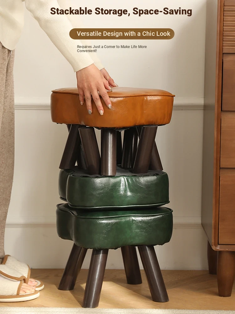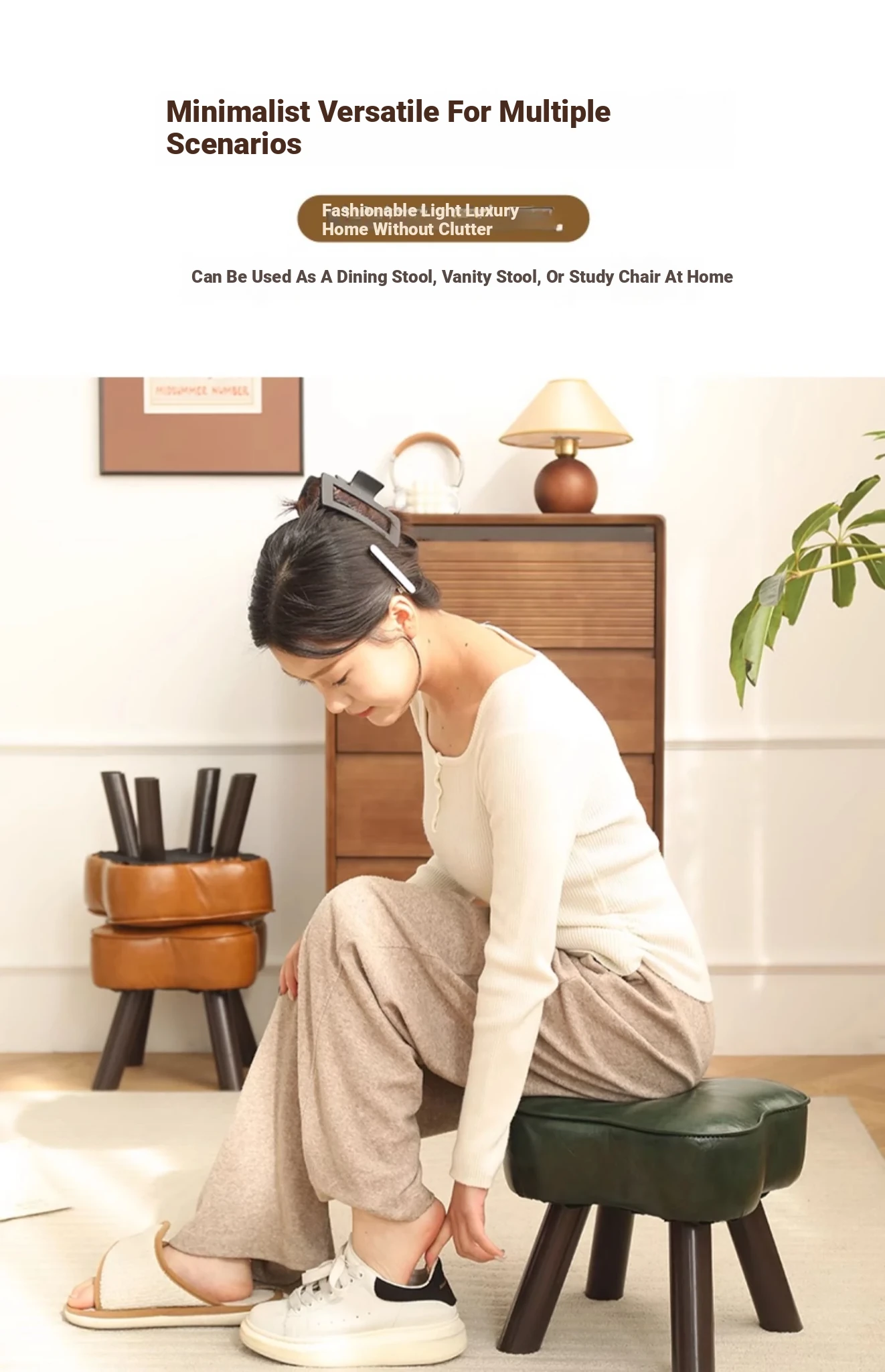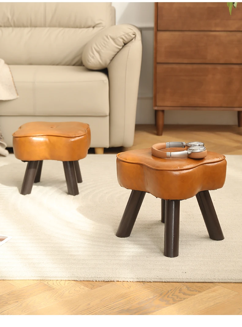 Cozy Home Stool - Versatile Low Bench for Living Room, Entryway Shoe Changing, Soft Padded Leather Seat, Durable Solid Wood Design - Perfect for Small Spaces and Modern Decor