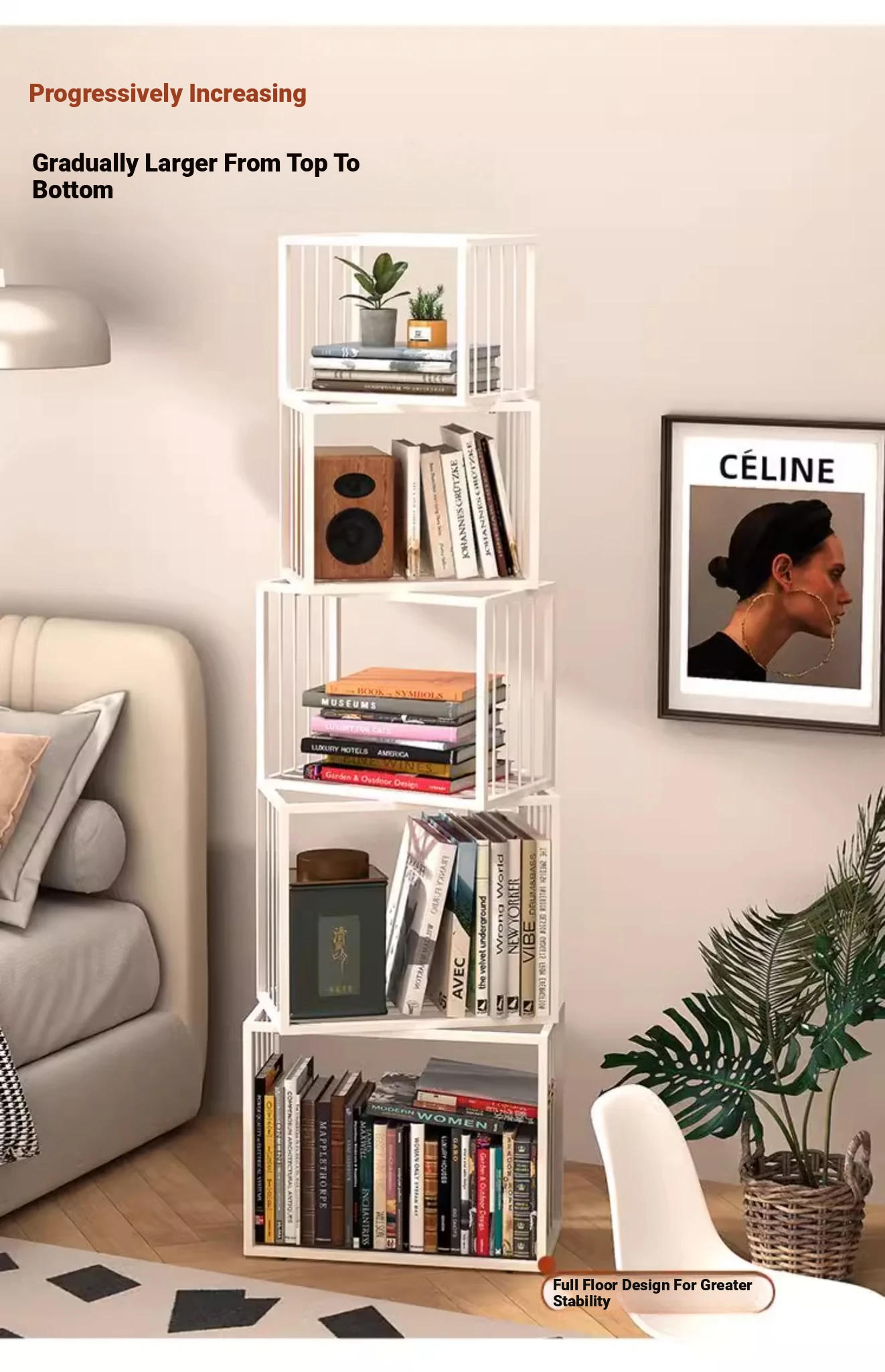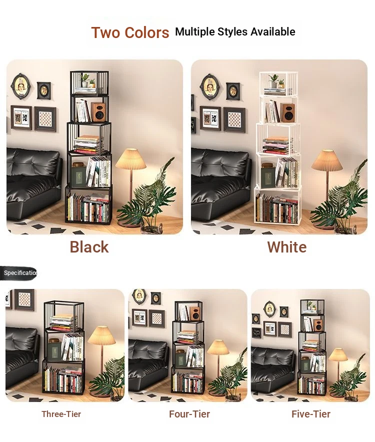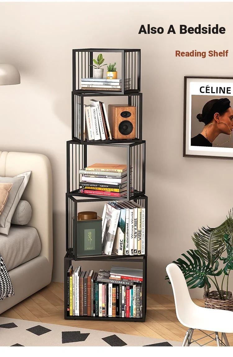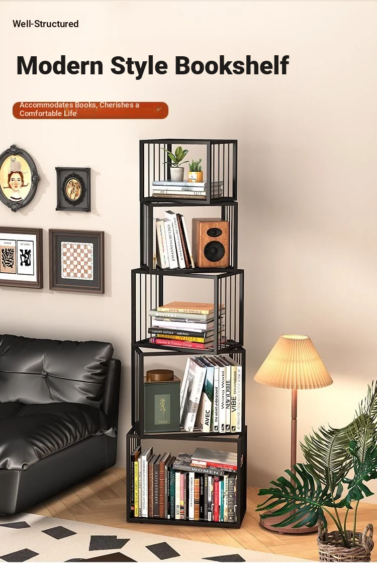 Creative Corner Bookshelf - Multi-Layer Floor Storage Rack for Children's Books, Stylish Iron Bookcase for Living Room, All-in-One Design