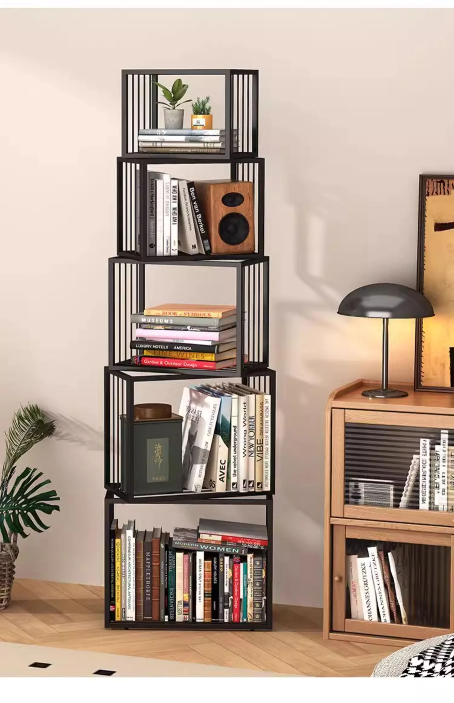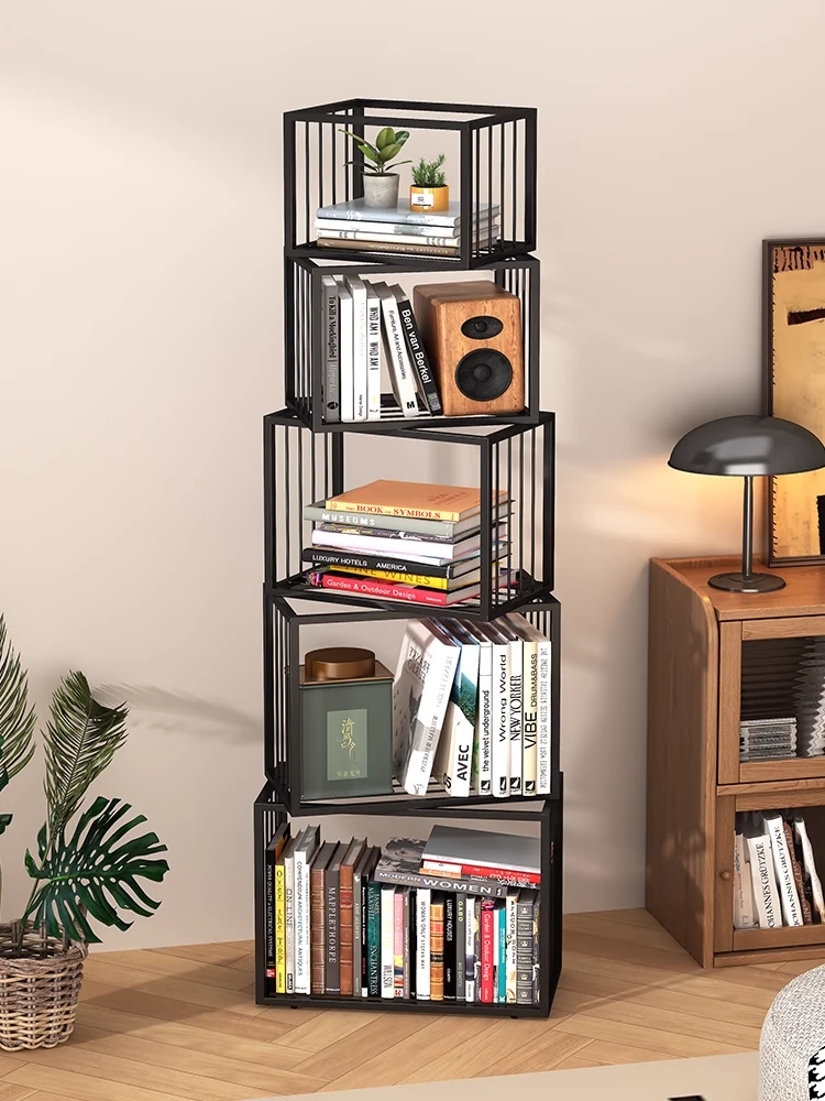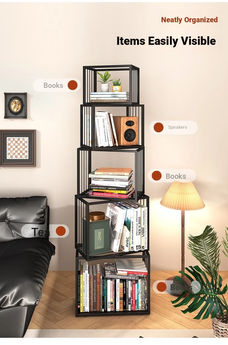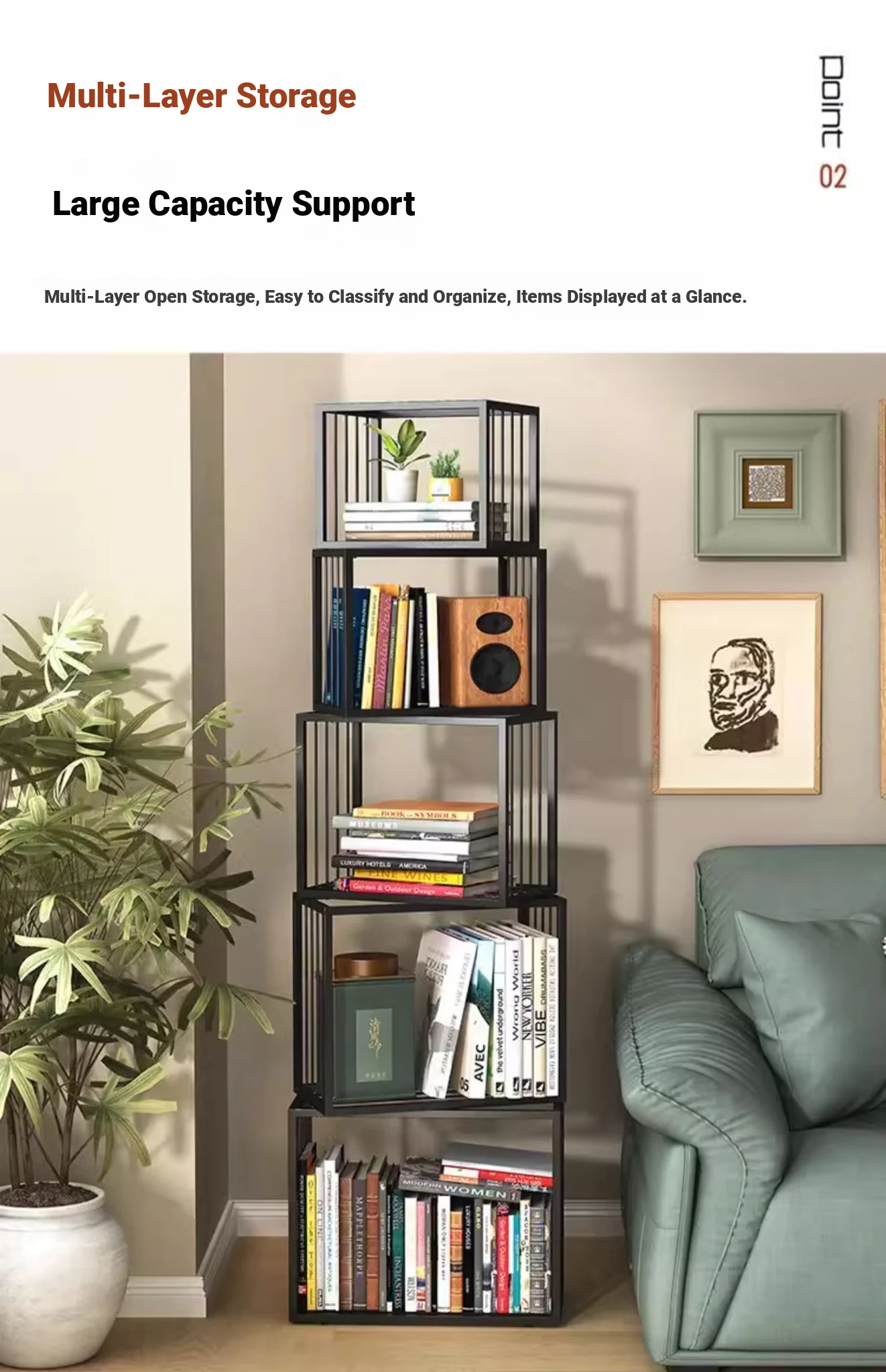 Creative Corner Bookshelf - Multi-Layer Floor Storage Rack for Children's Books, Stylish Iron Bookcase for Living Room, All-in-One Design