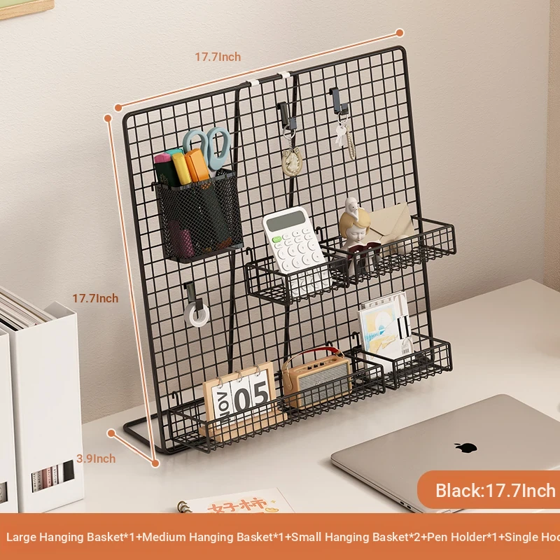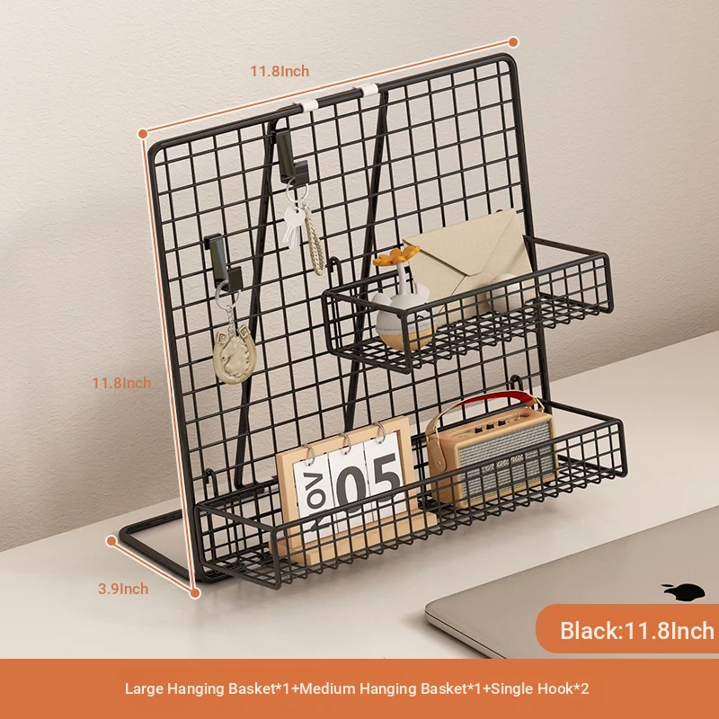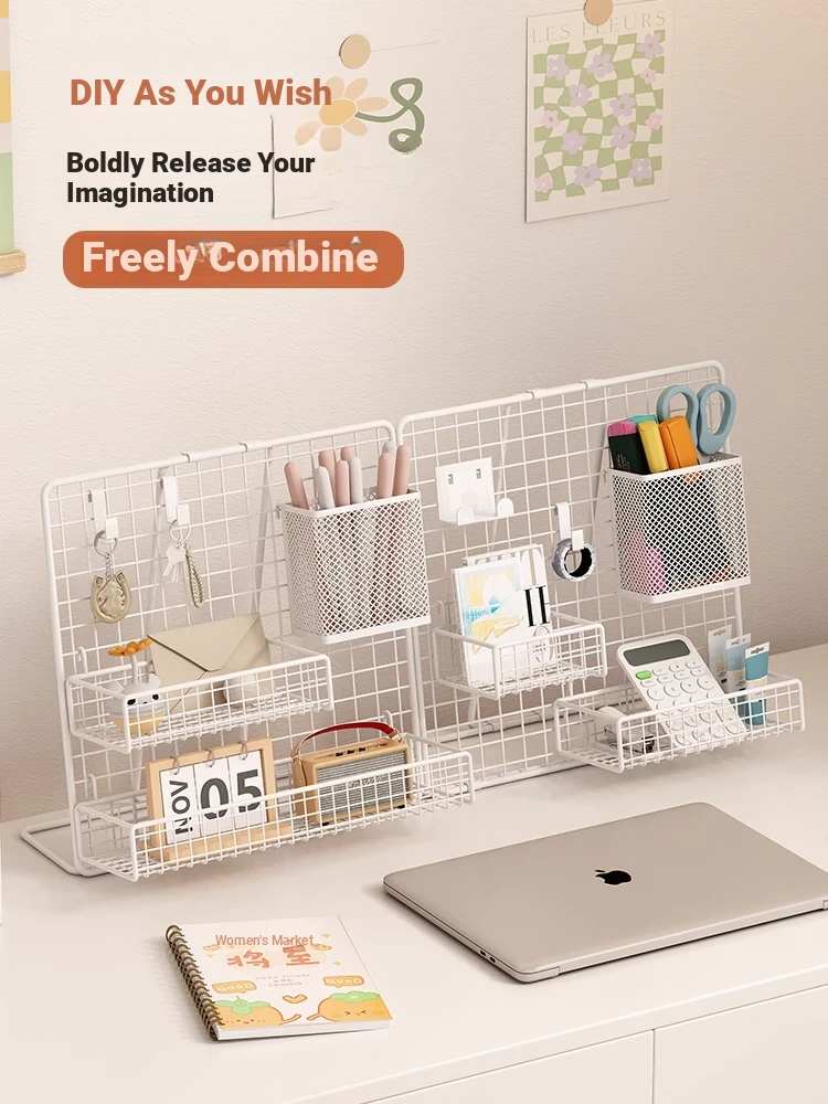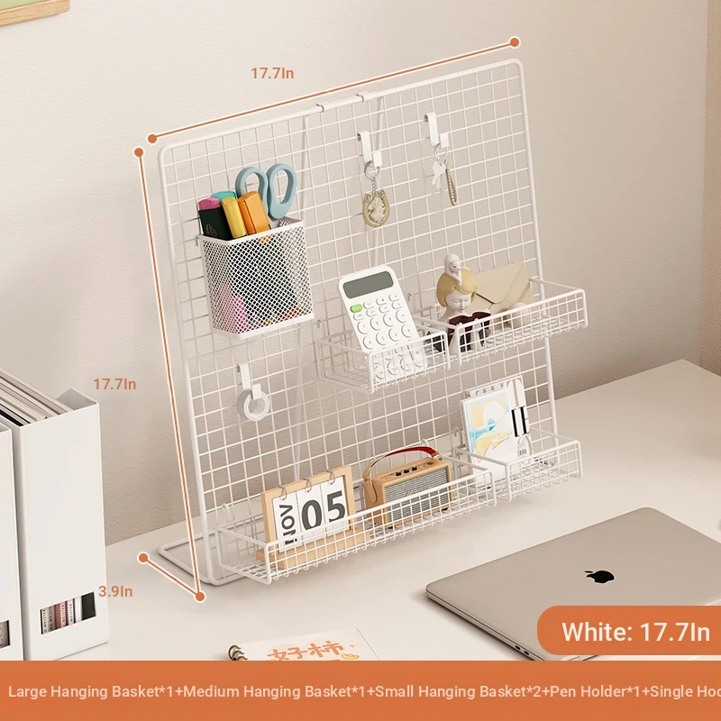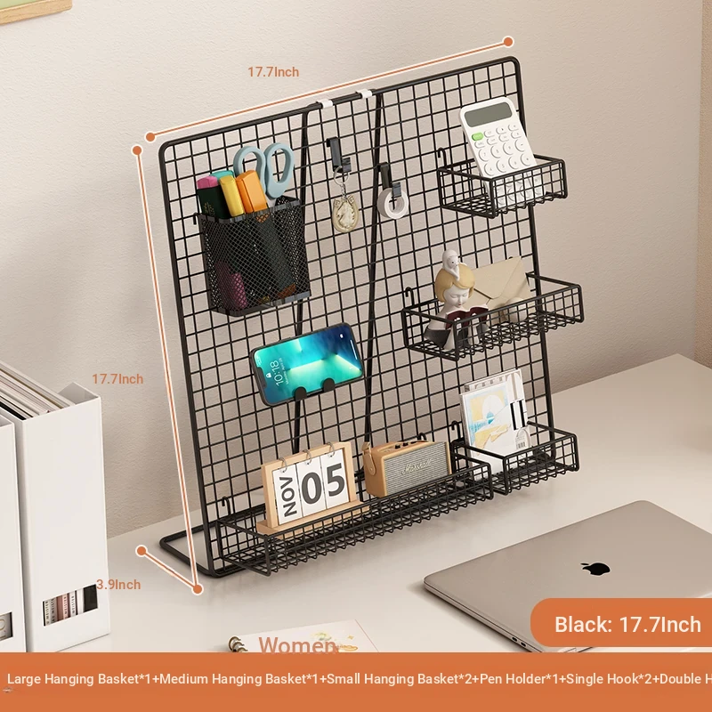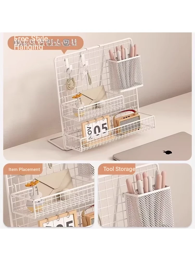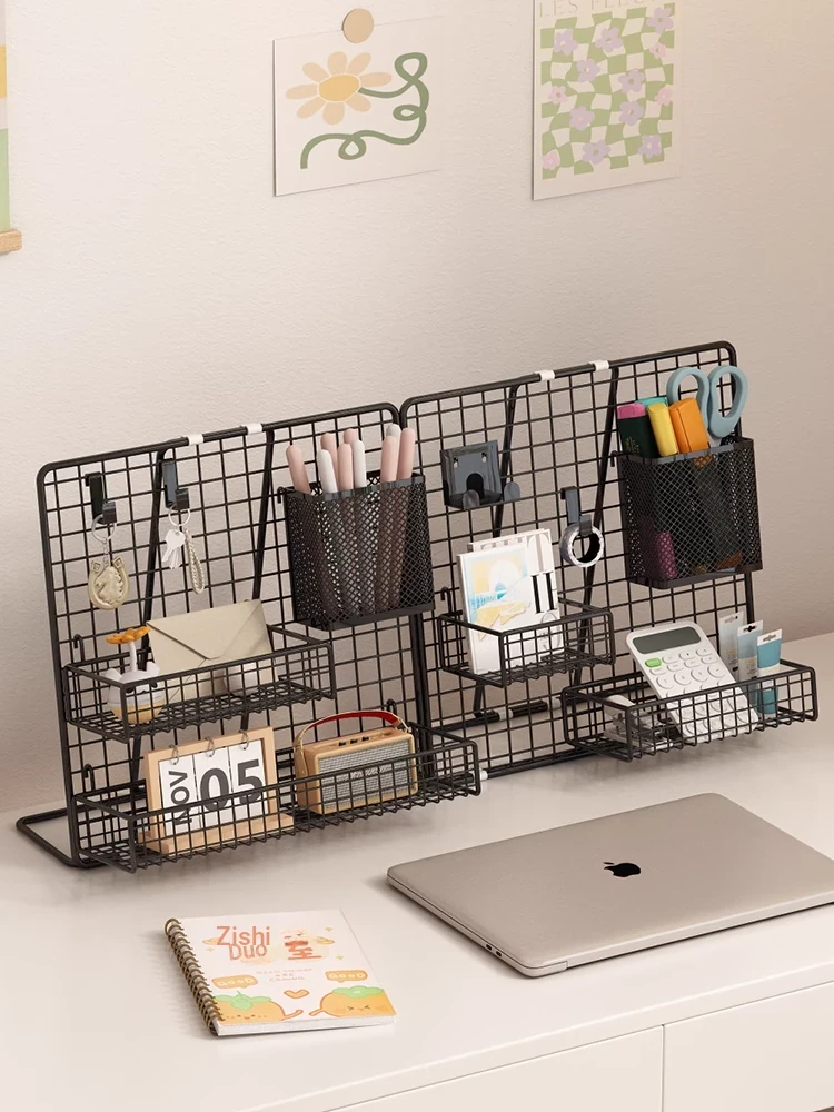 Desktop Display Rack for Kindergarten Art Projects - Grid Photo Hanging Organizer and Storage Shelf with Iron Mesh Design