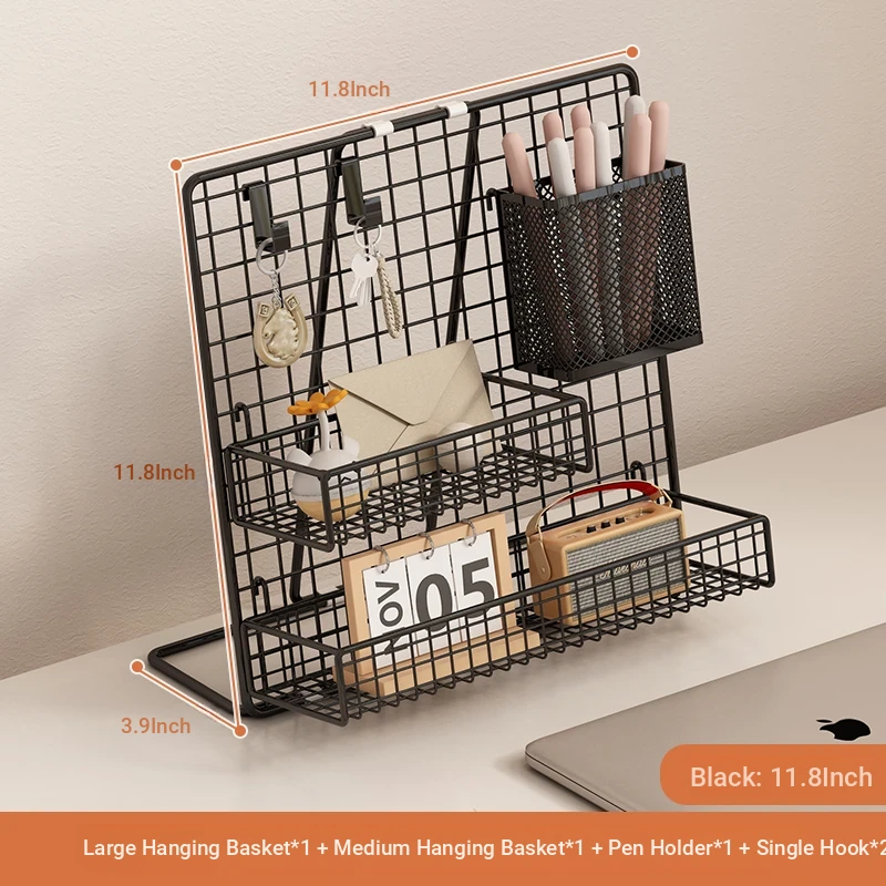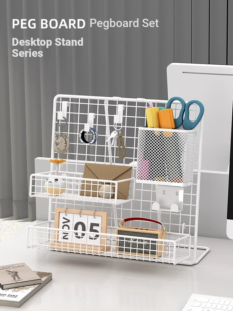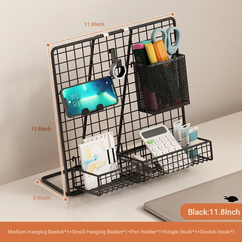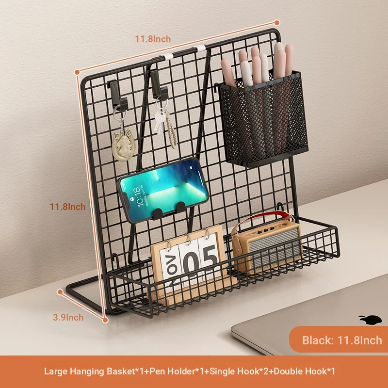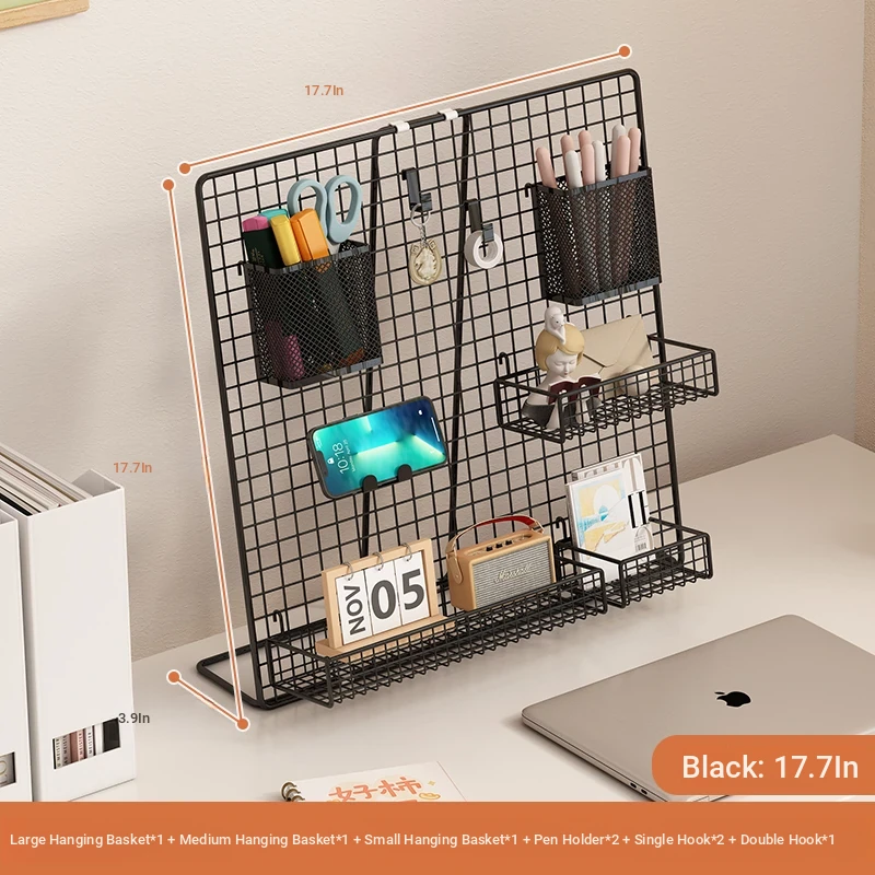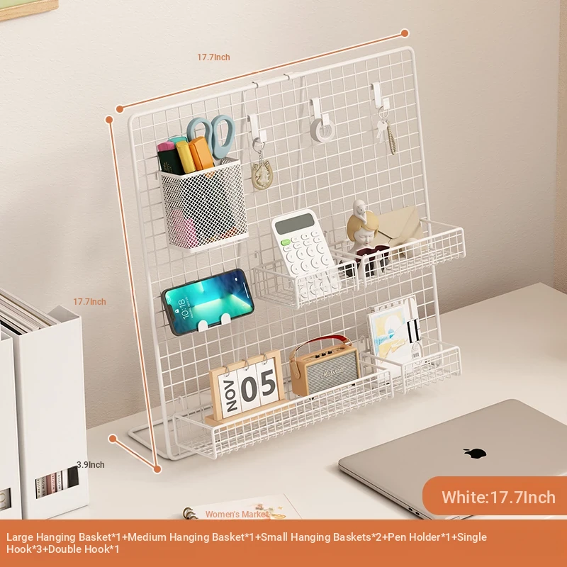 Desktop Display Rack for Kindergarten Art Projects - Grid Photo Hanging Organizer and Storage Shelf with Iron Mesh Design