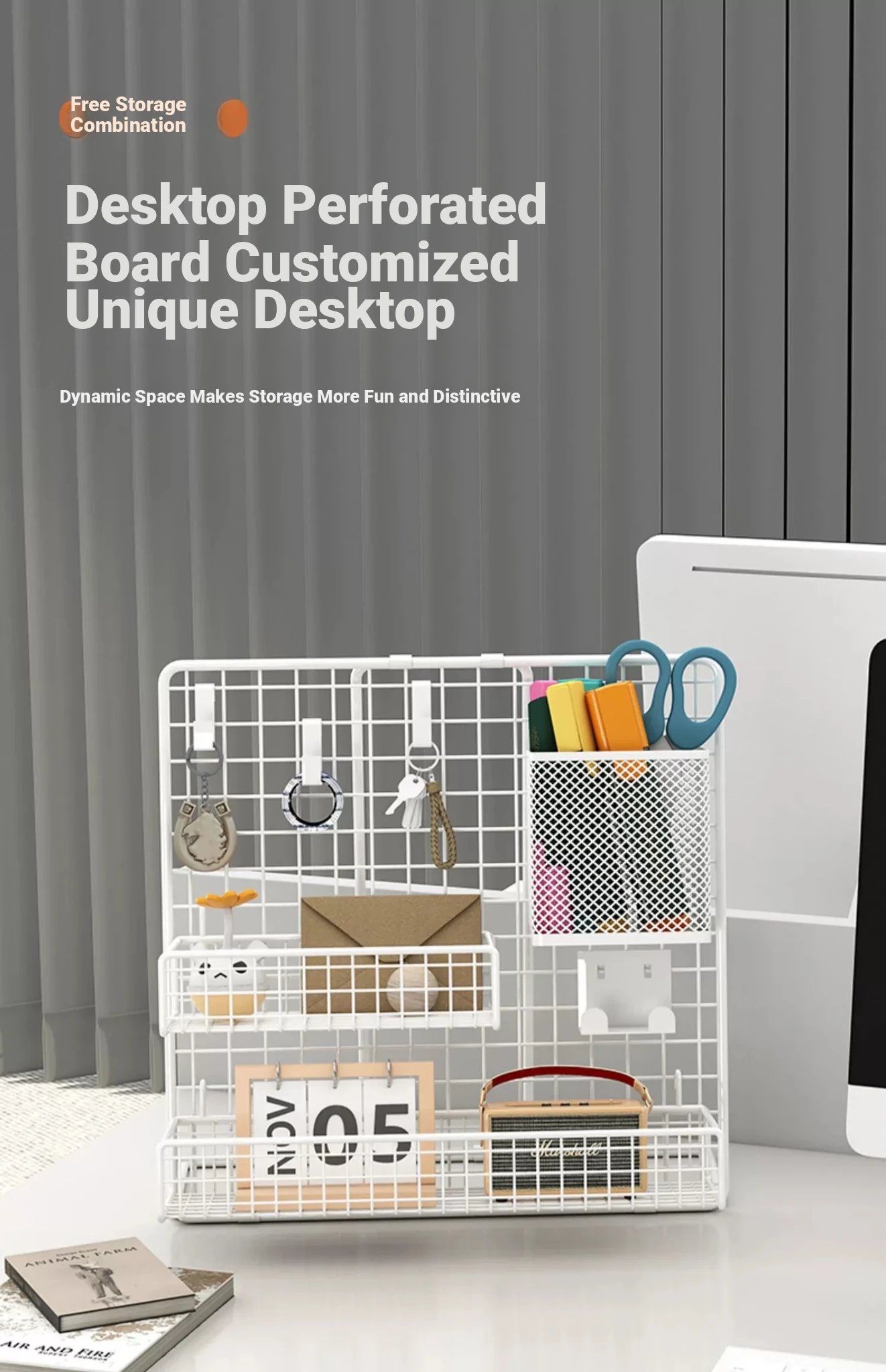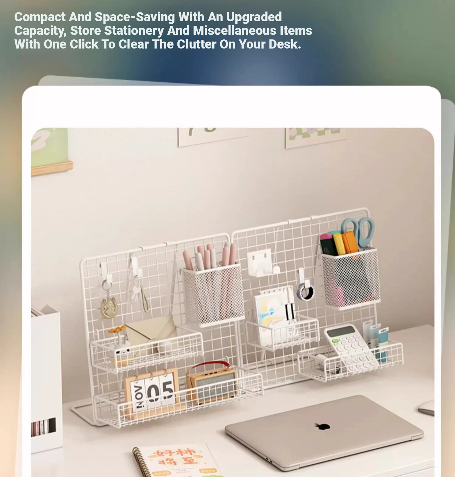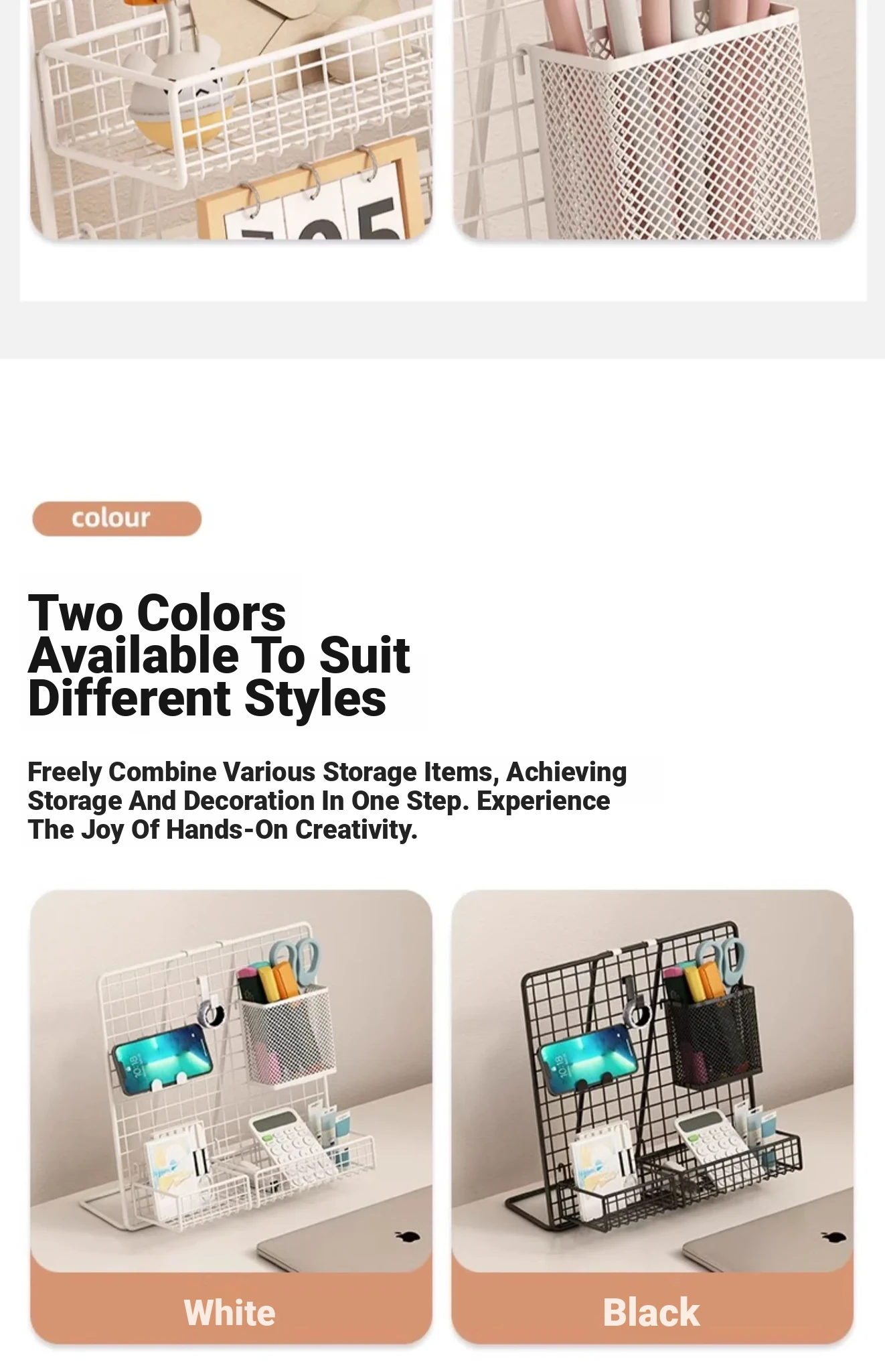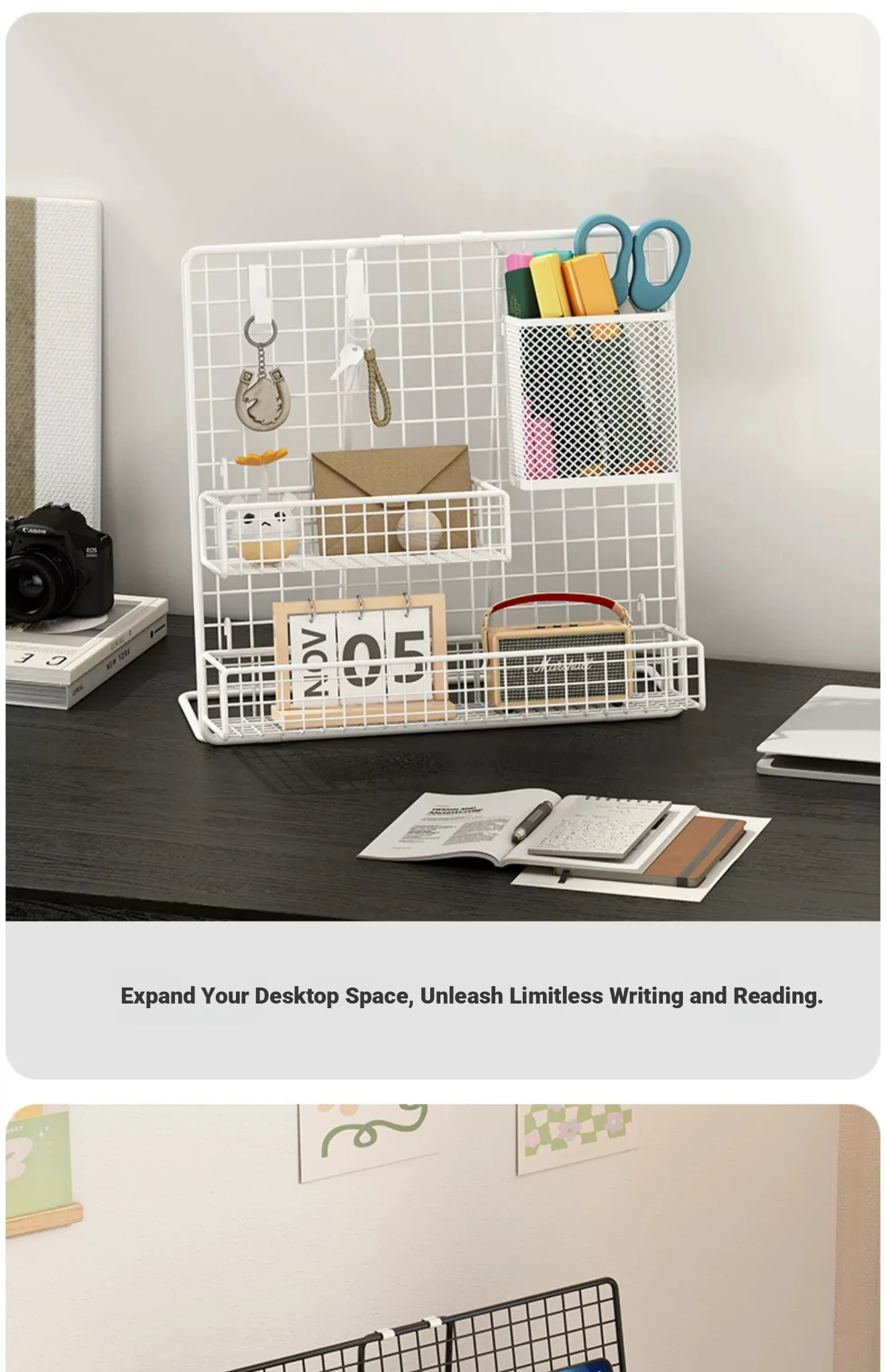 Desktop Display Rack for Kindergarten Art Projects - Grid Photo Hanging Organizer and Storage Shelf with Iron Mesh Design