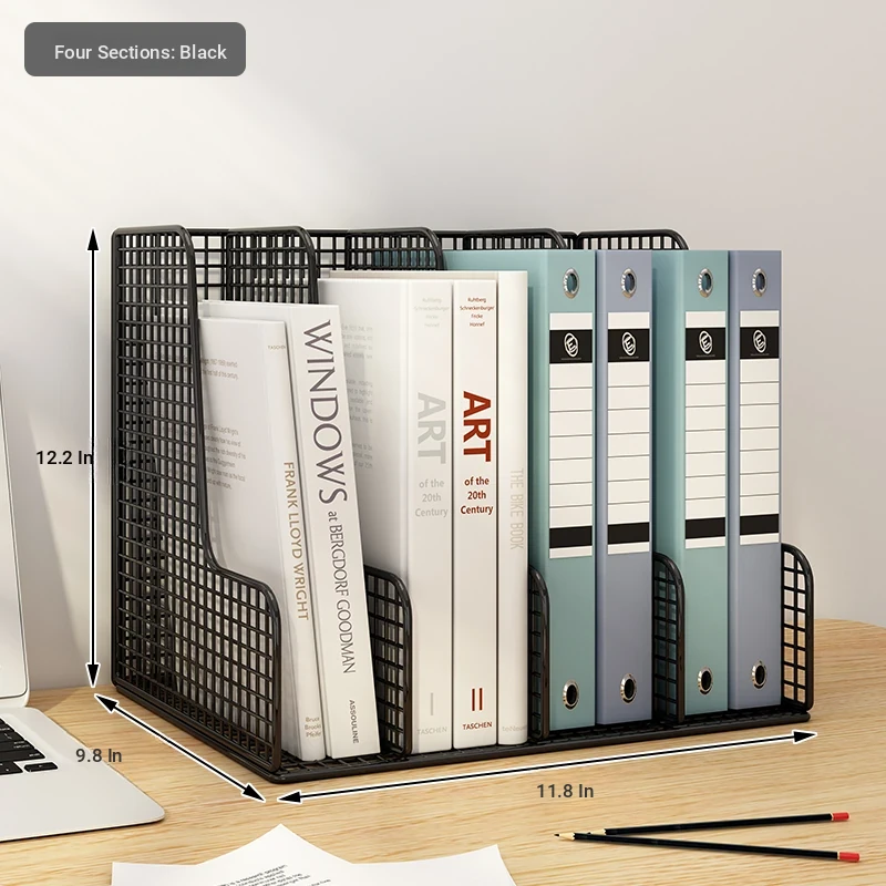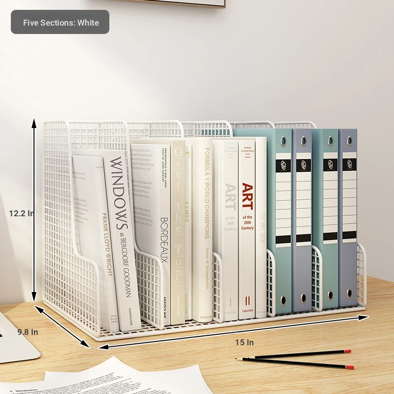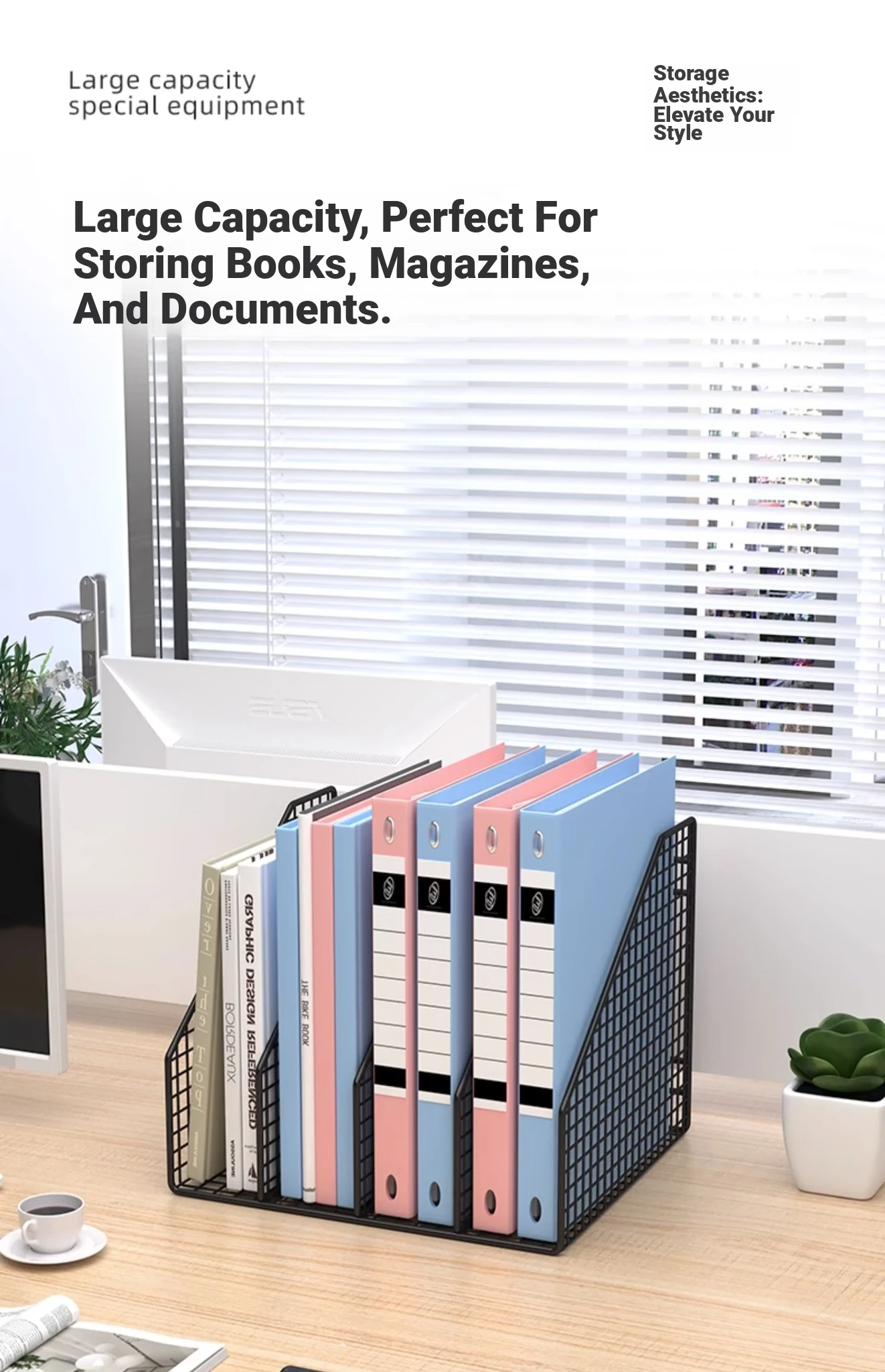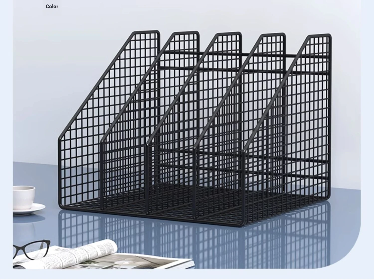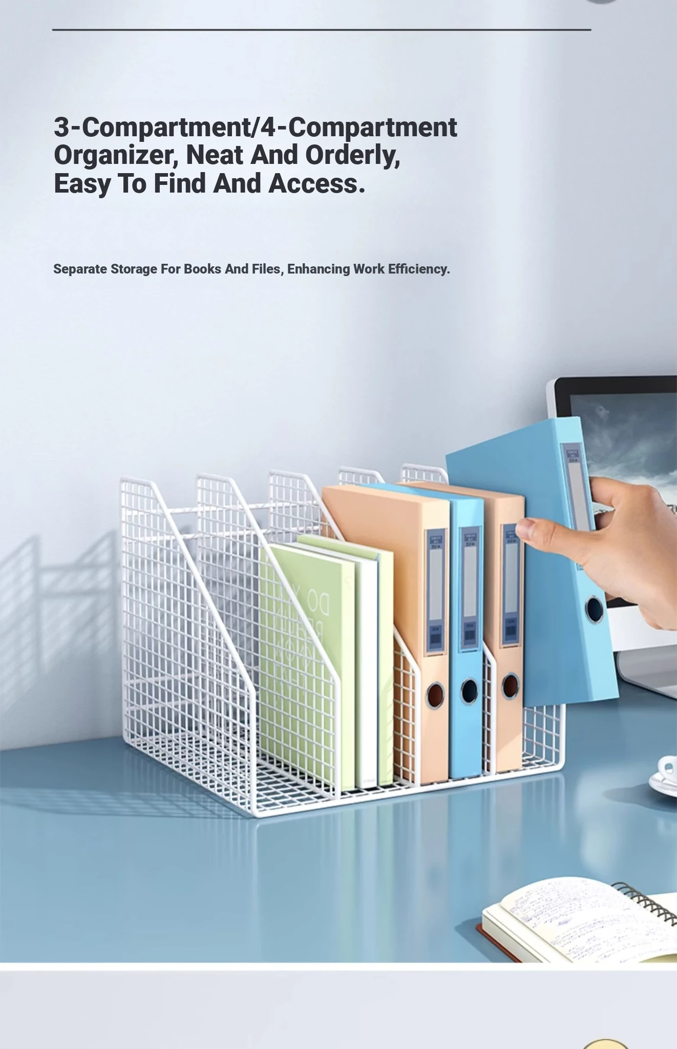 Desktop File Organizer and Document Holder - Sleek Metal Storage Rack for Office Supplies, Compact Bookshelf for Desktop Use, Ideal for Keeping Your Workspace Tidy and Efficient!