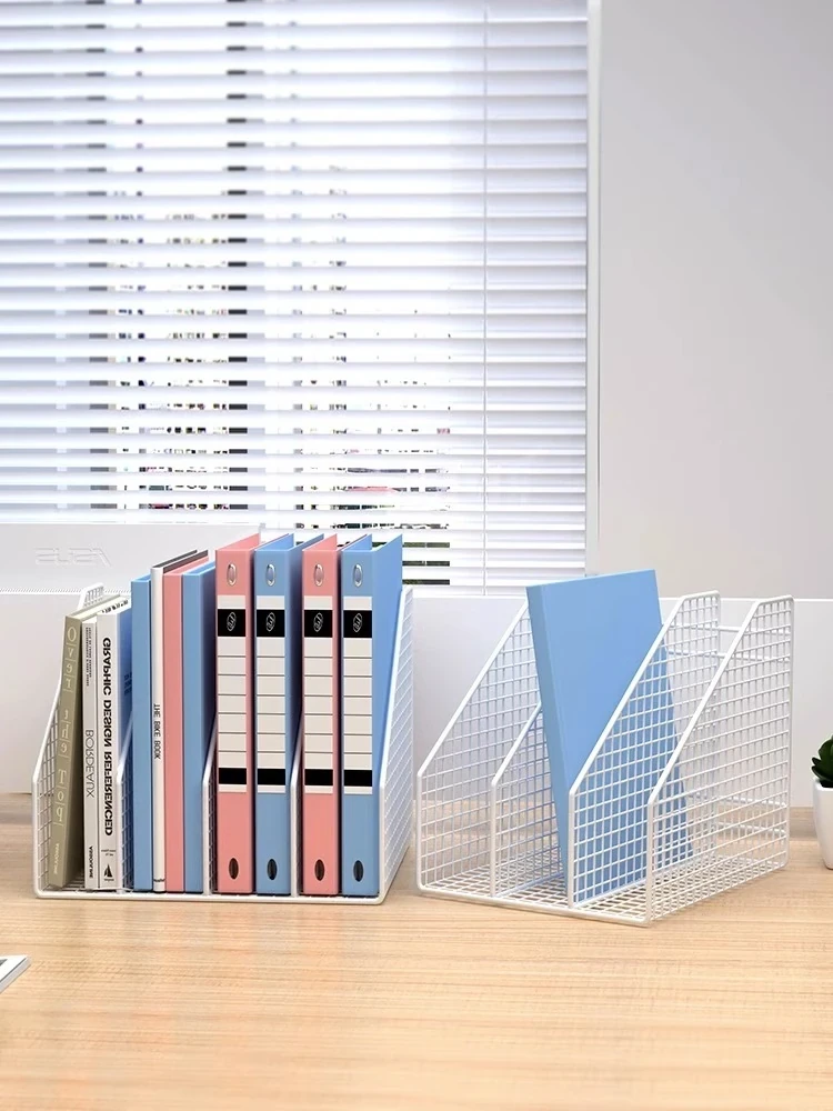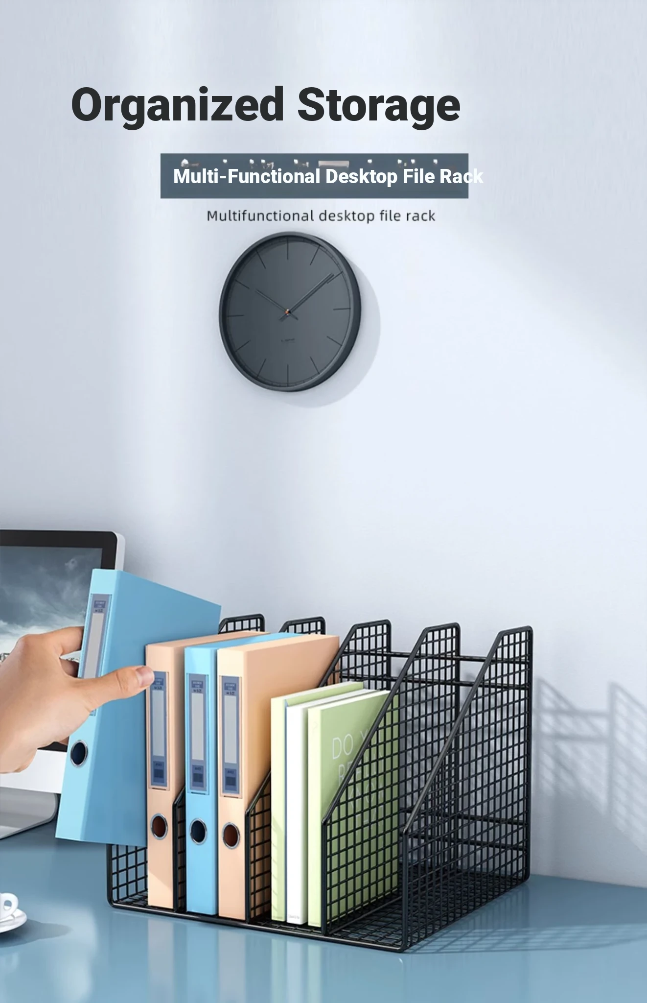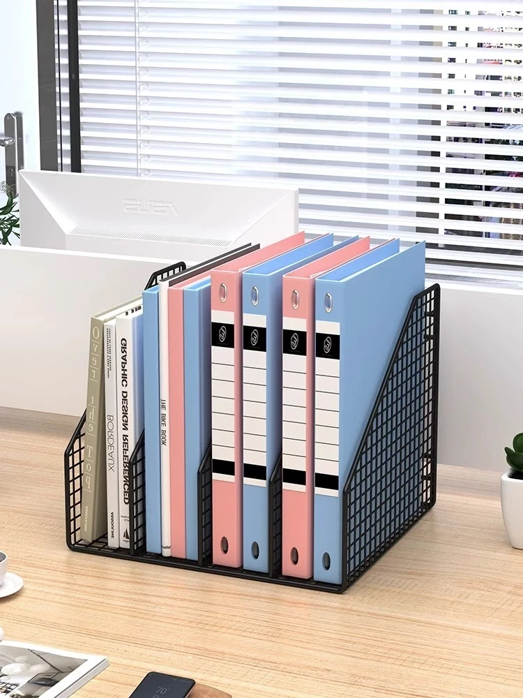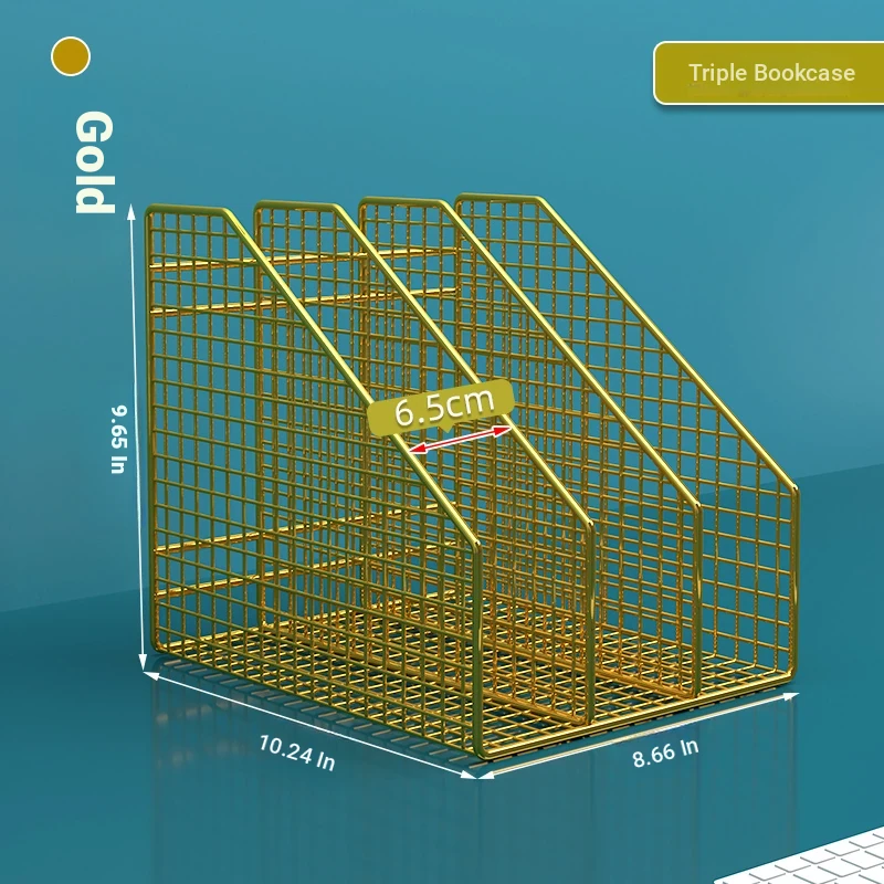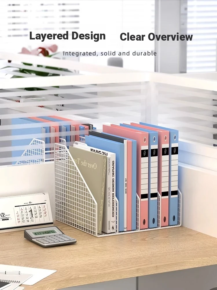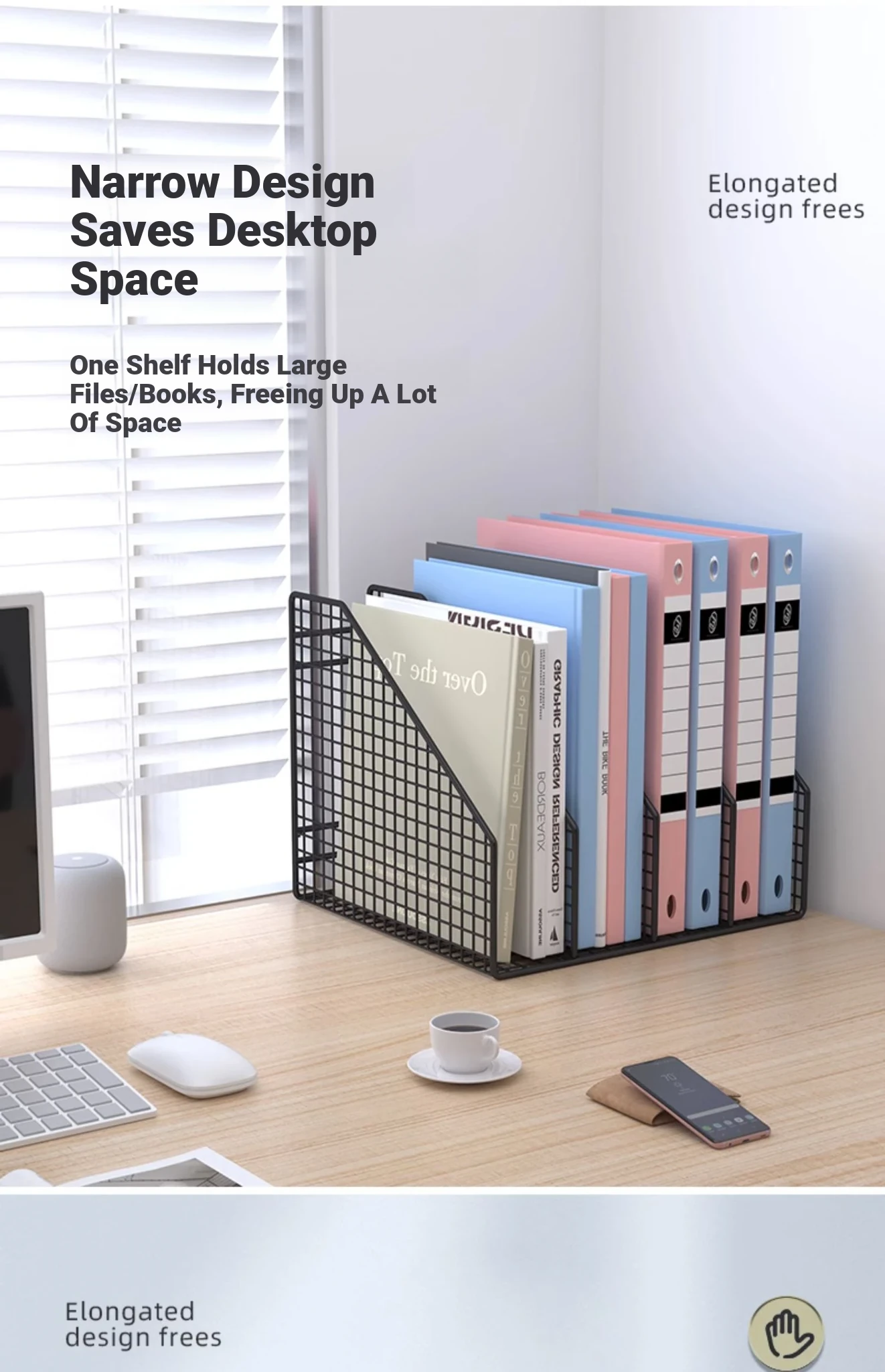 Desktop File Organizer and Document Holder - Sleek Metal Storage Rack for Office Supplies, Compact Bookshelf for Desktop Use, Ideal for Keeping Your Workspace Tidy and Efficient!