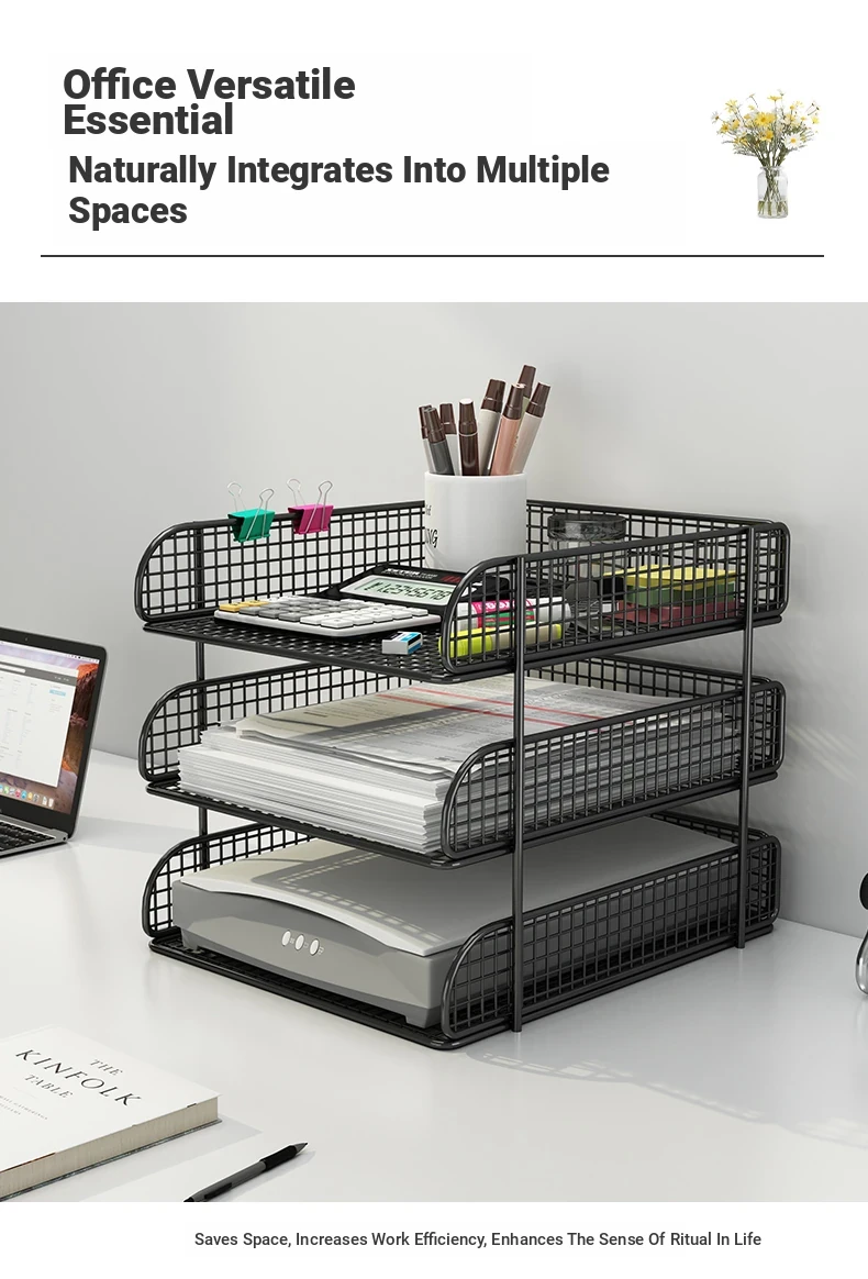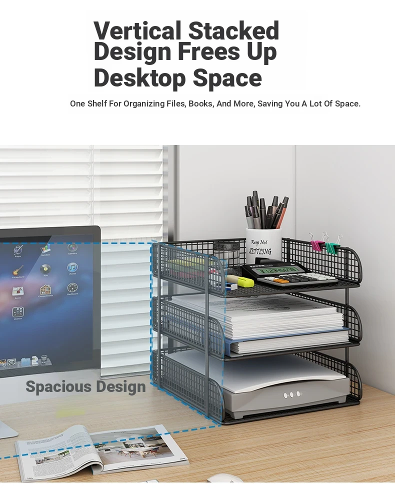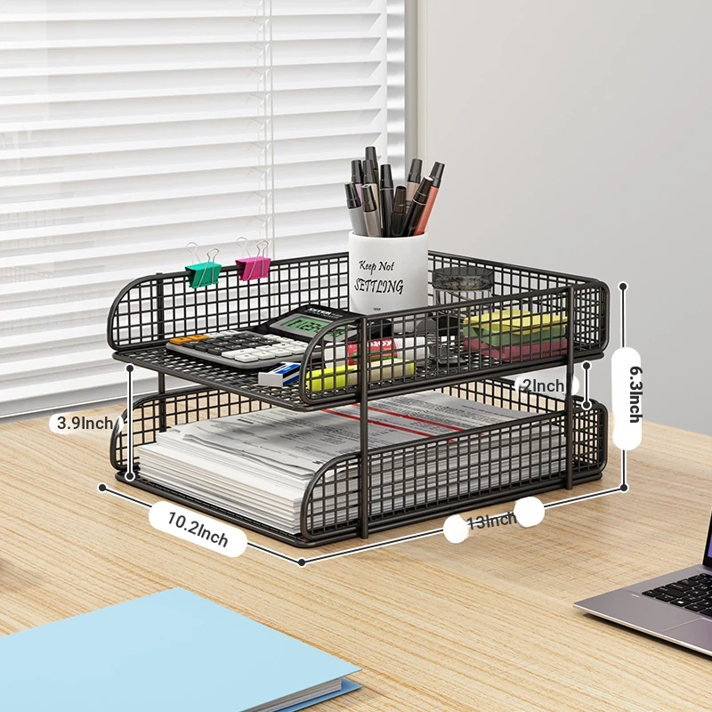 Dual-Layer Desktop File Organizer - Versatile Vertical and Horizontal Document Rack for Office Use, Perfect for Organizing Files, Documents, and Office Supplies. Keep Your Workspace Tidy and Efficient!