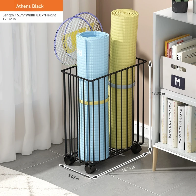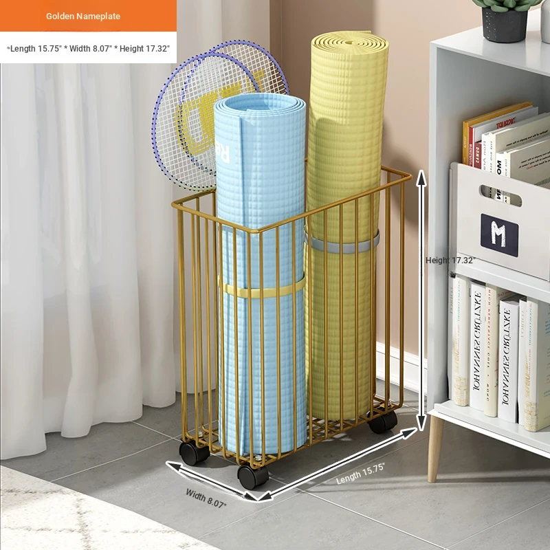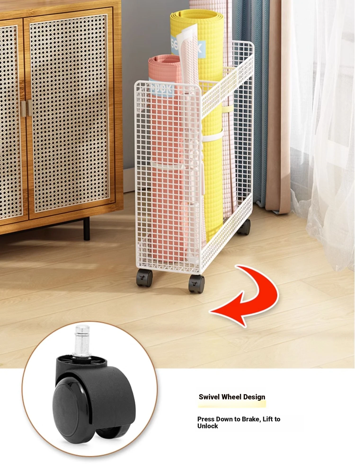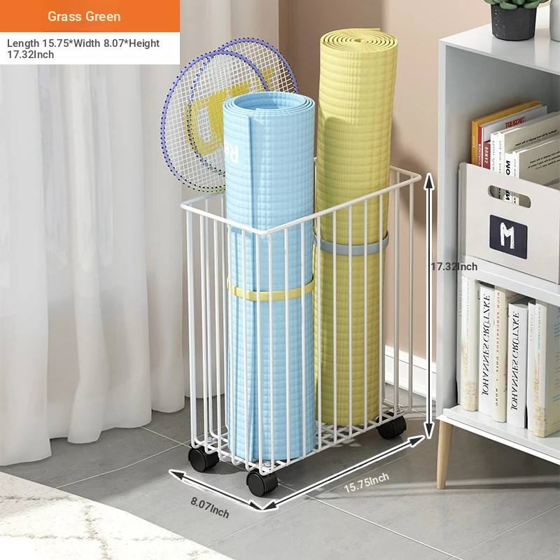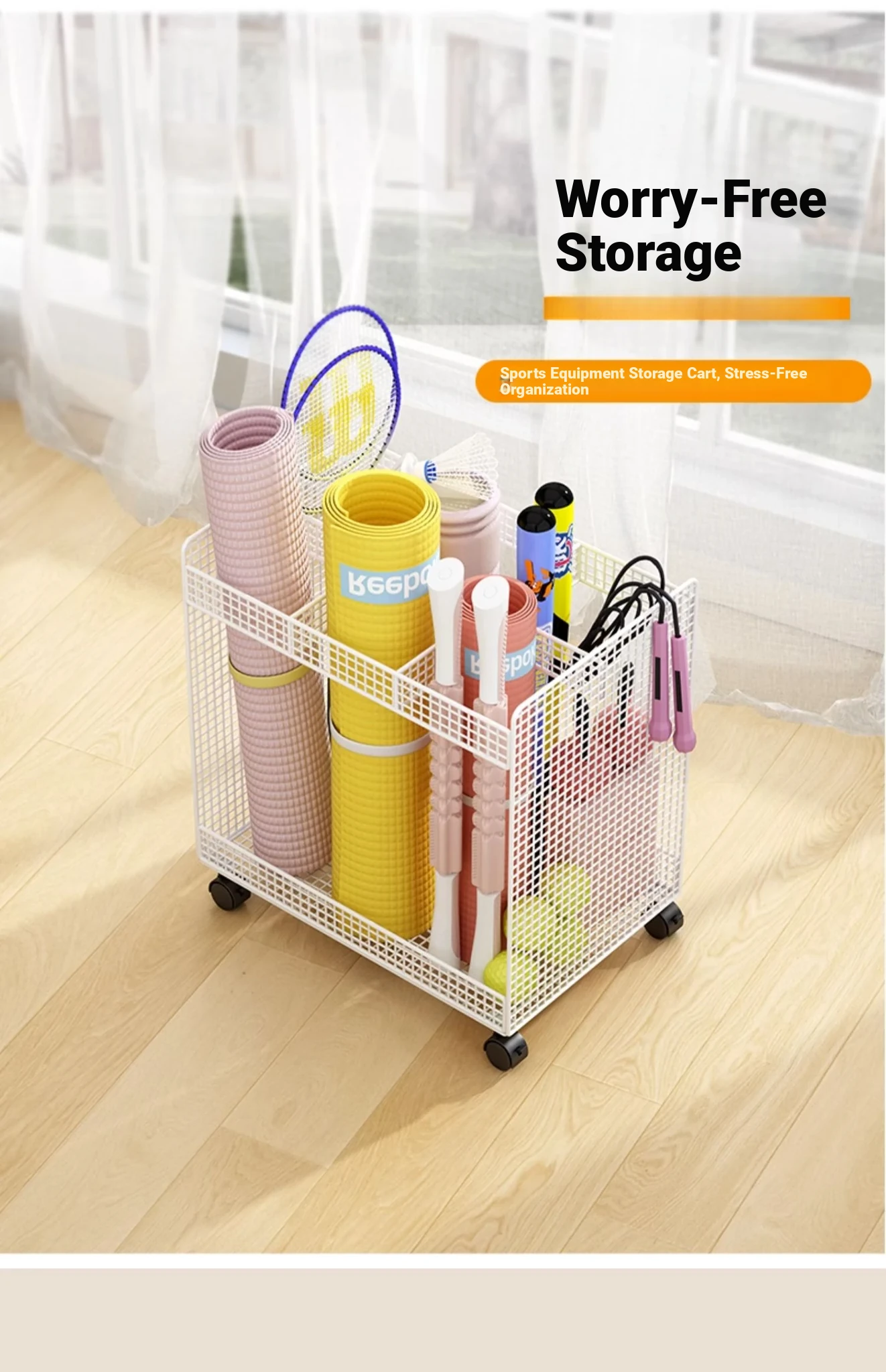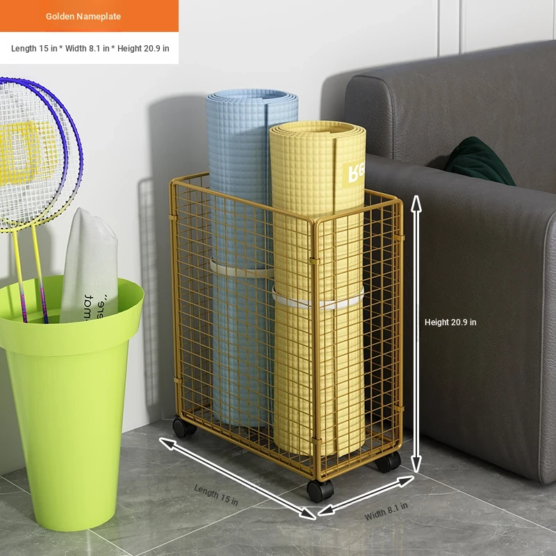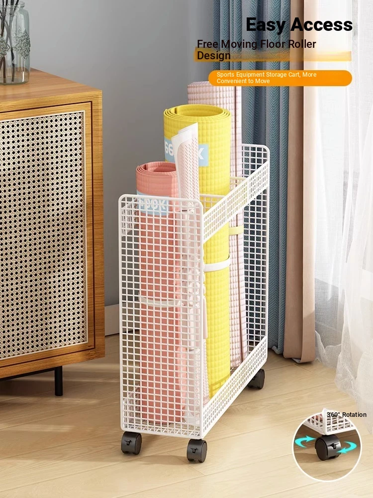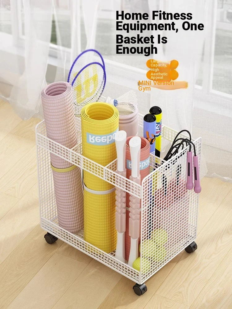 Foldable Yoga Storage Basket with Wheels - Home Fitness Equipment Organizer, Foam Roller Tool Bin, Space-Saving Storage Rack for Easy Access