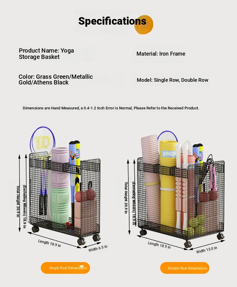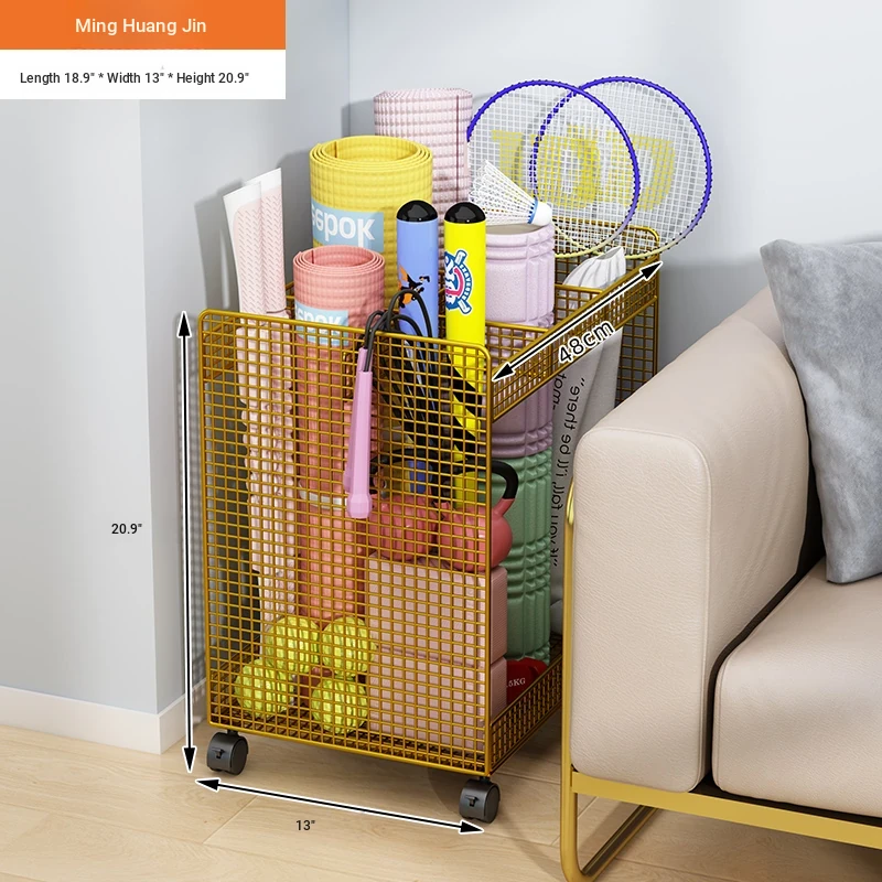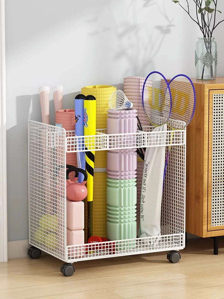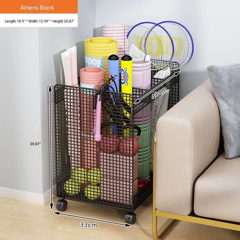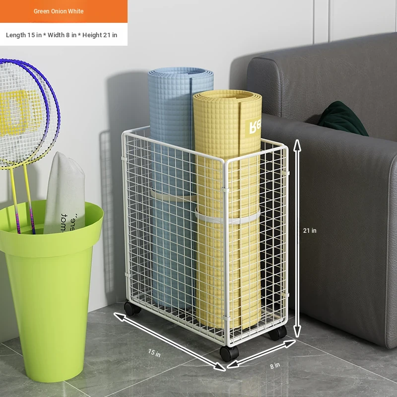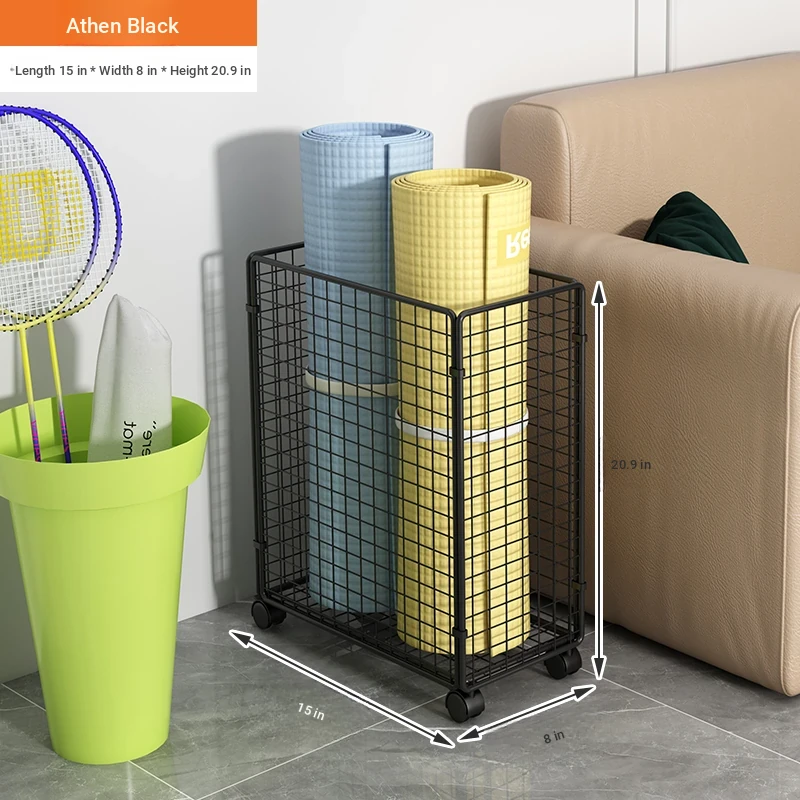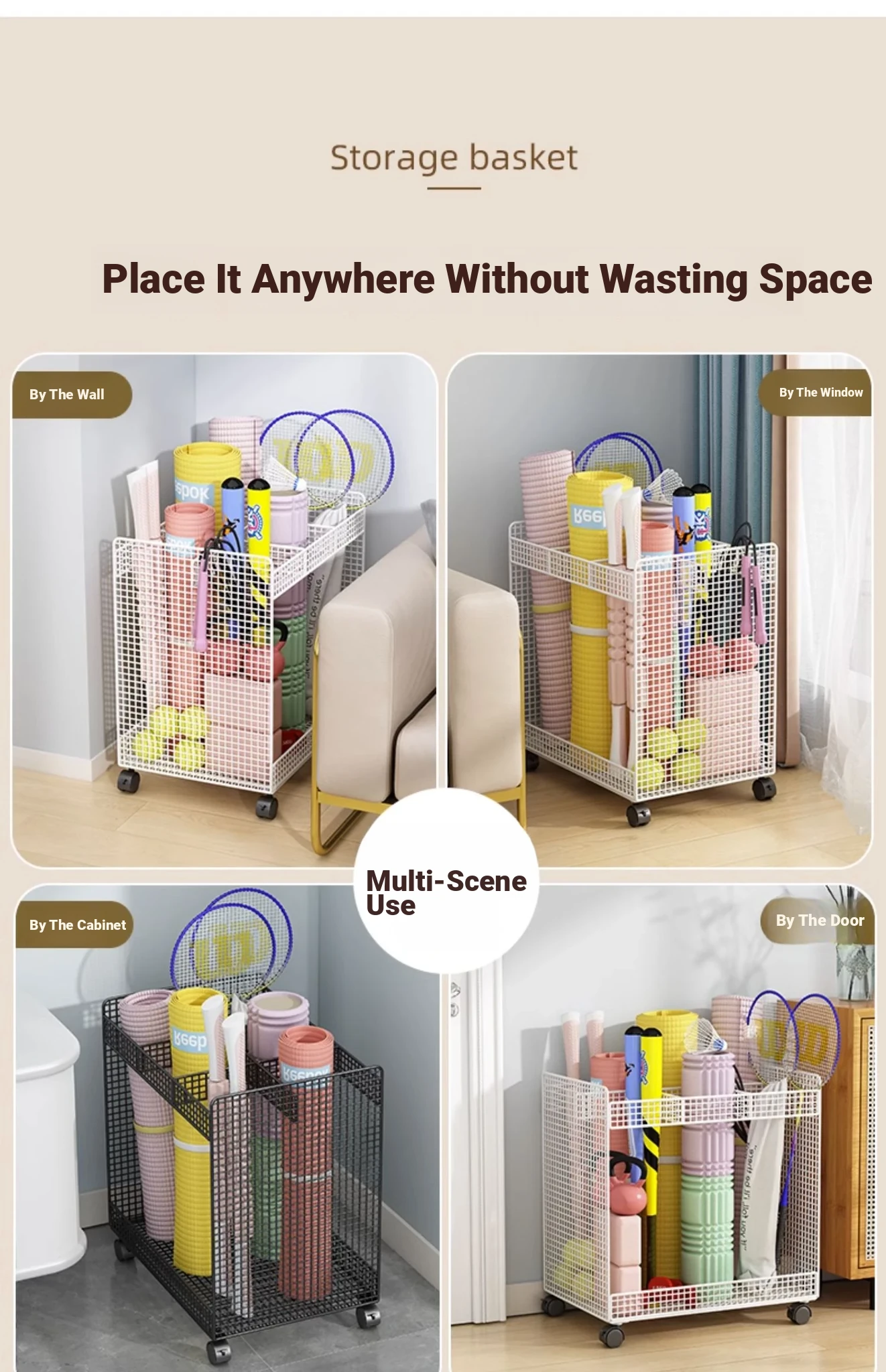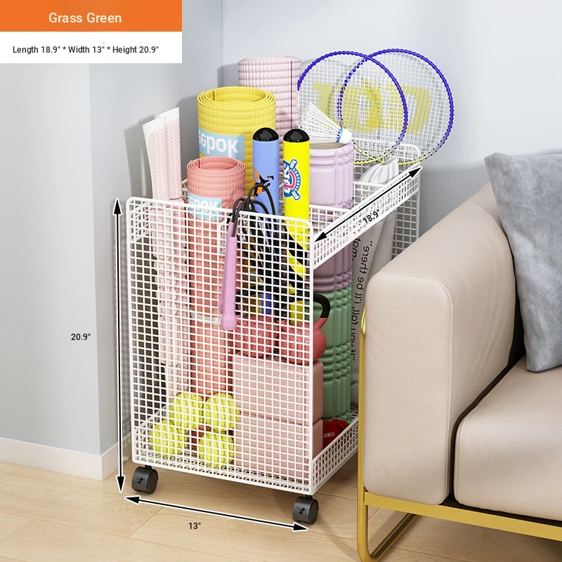 Foldable Yoga Storage Basket with Wheels - Home Fitness Equipment Organizer, Foam Roller Tool Bin, Space-Saving Storage Rack for Easy Access