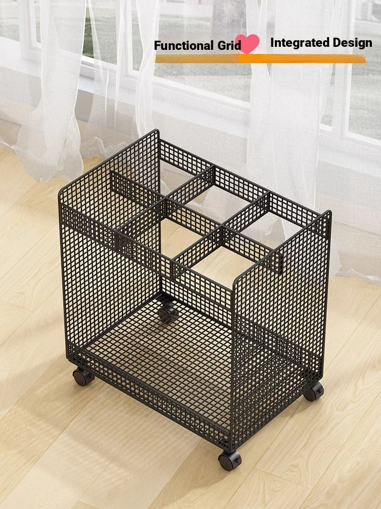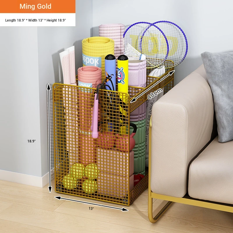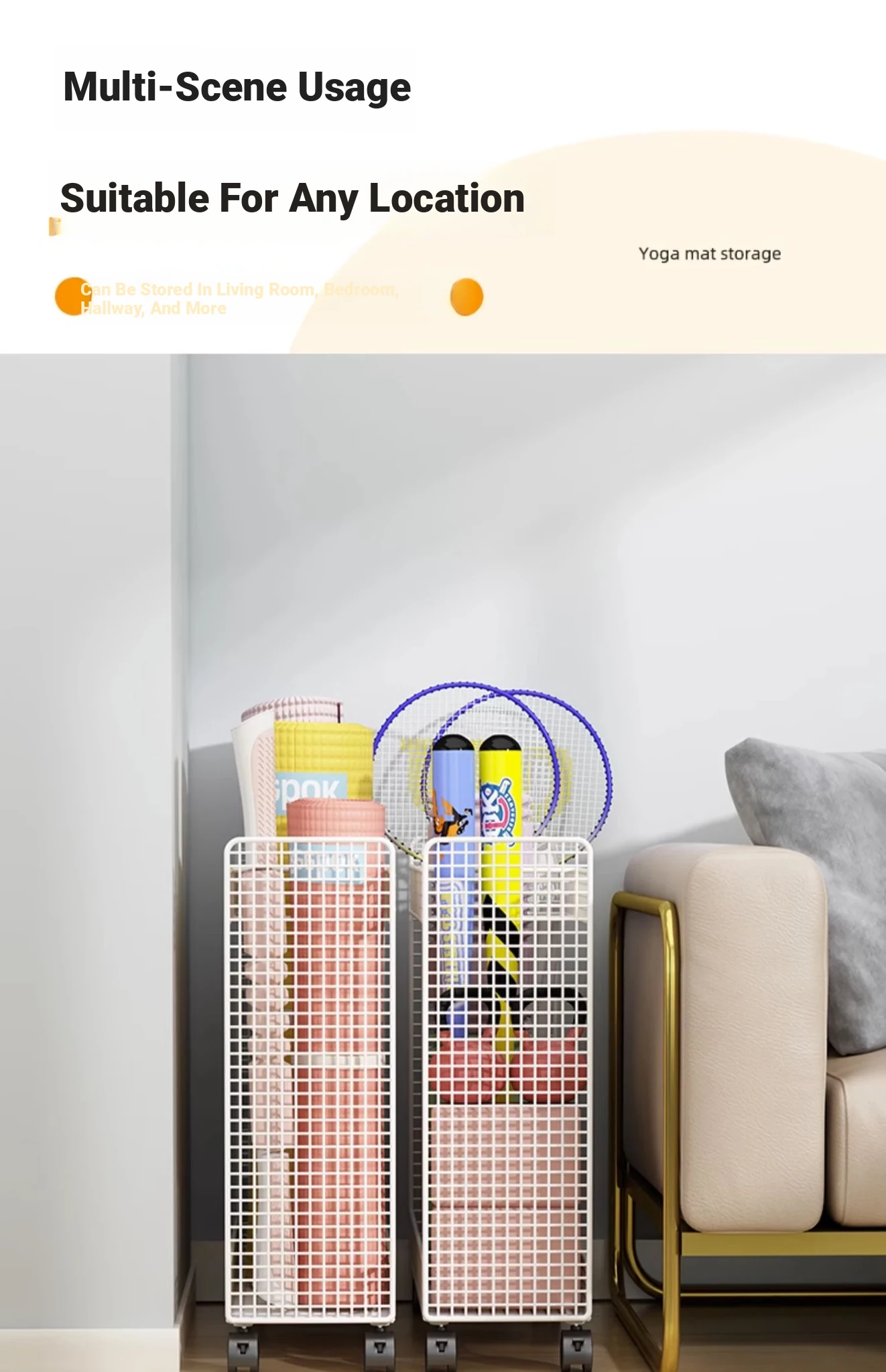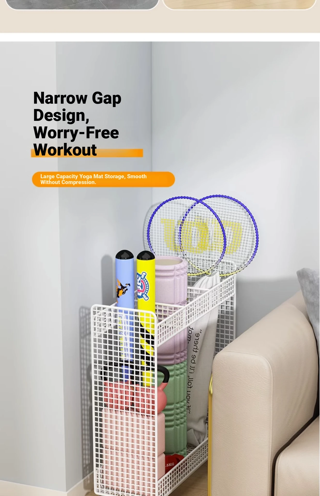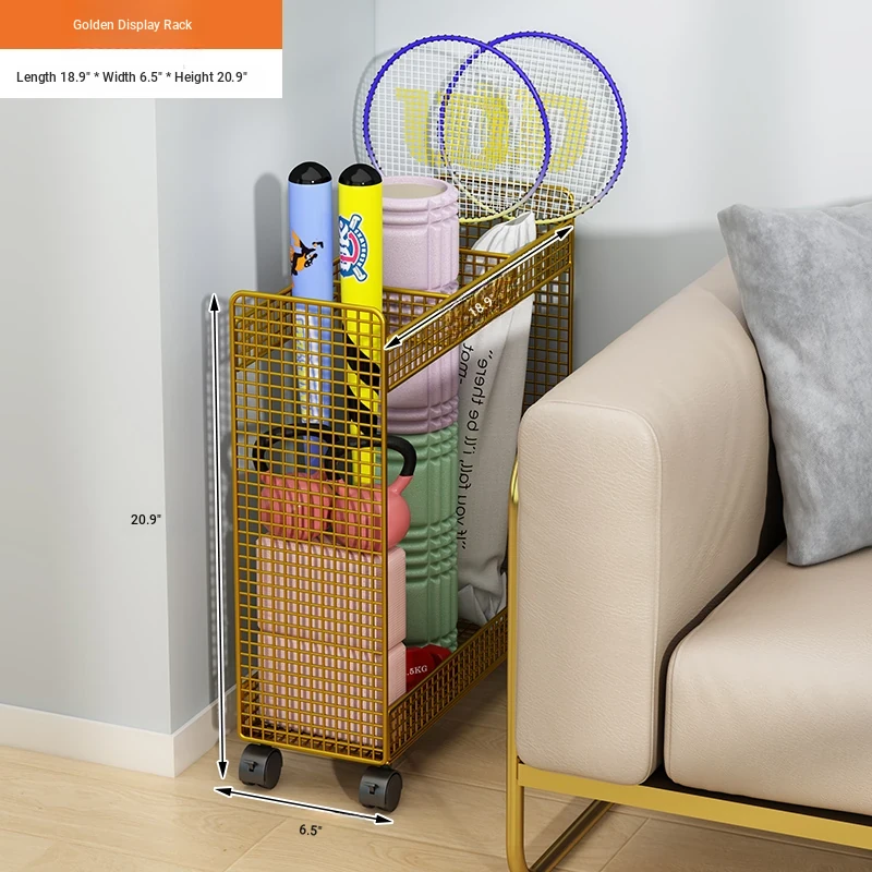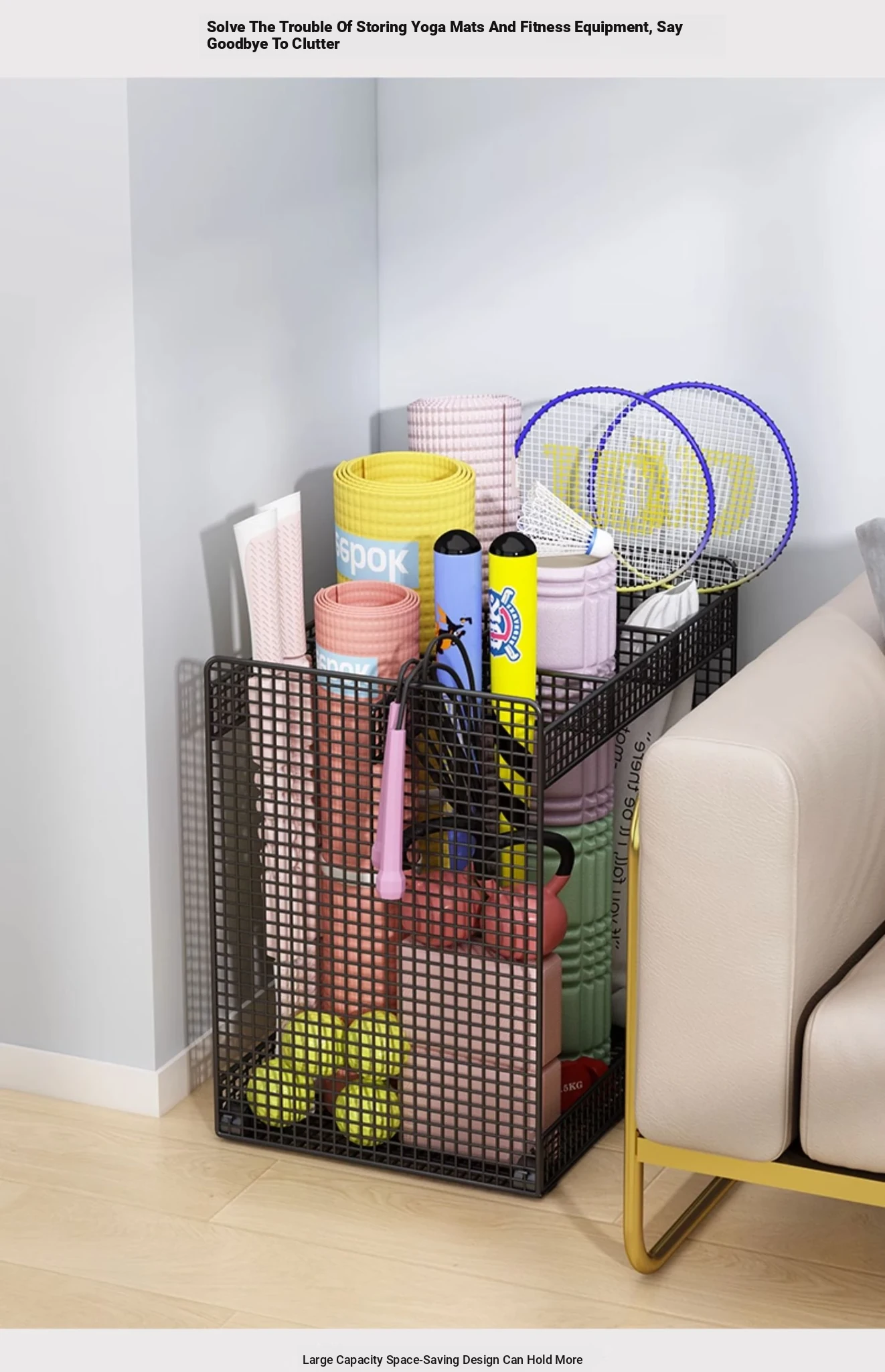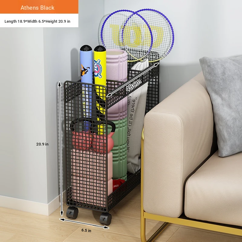 Foldable Yoga Storage Basket with Wheels - Home Fitness Equipment Organizer, Foam Roller Tool Bin, Space-Saving Storage Rack for Easy Access