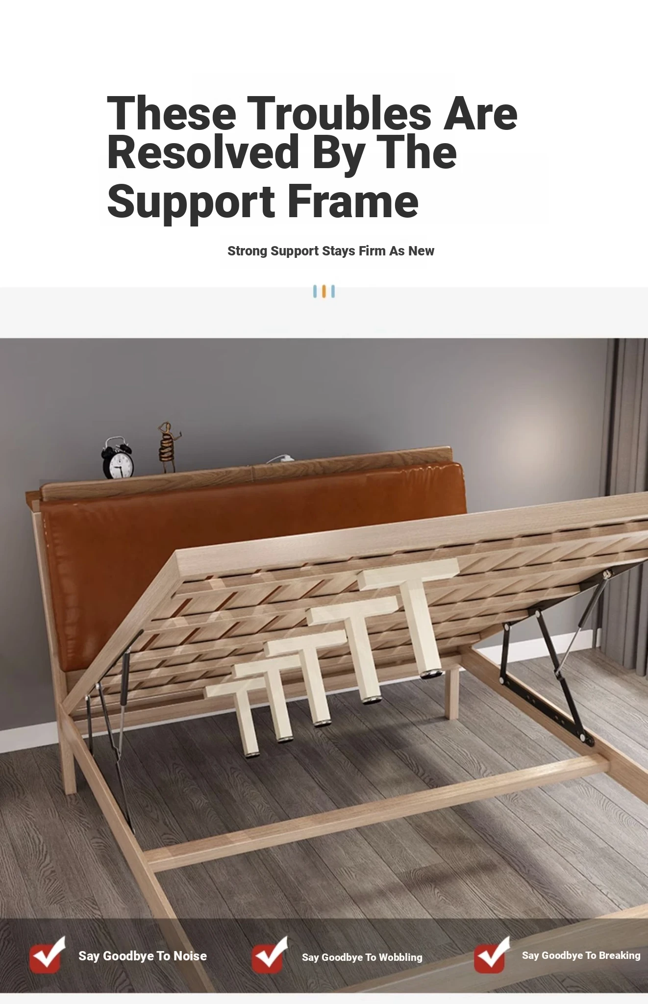 Heavy-Duty Solid Wood Bed Slat Support Frame - Reinforced Bed Base with Sturdy Cross Beams and Legs for Maximum Stability and Durability. Perfect for Strengthening Your Bed Frame!