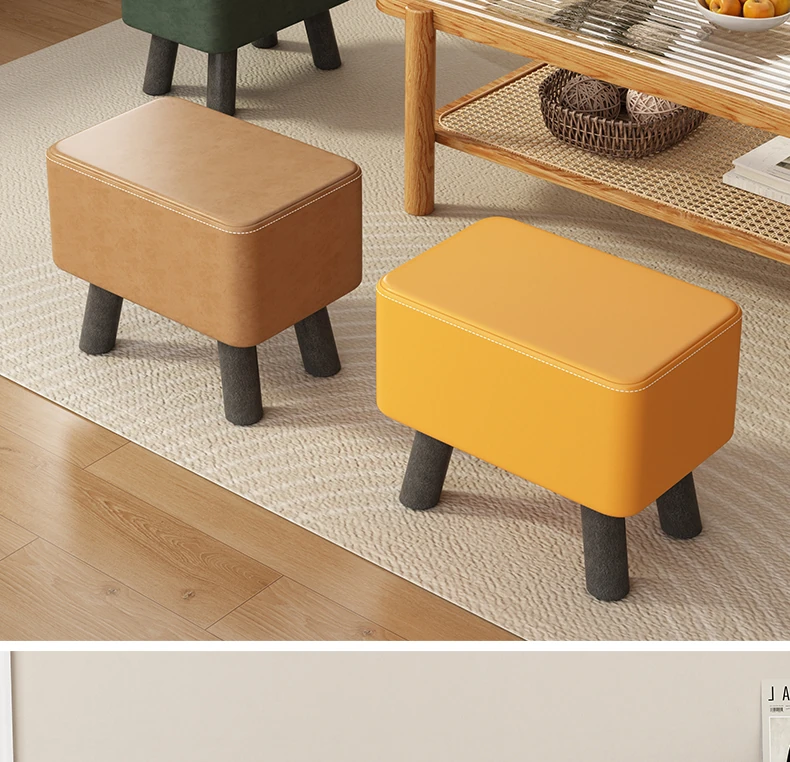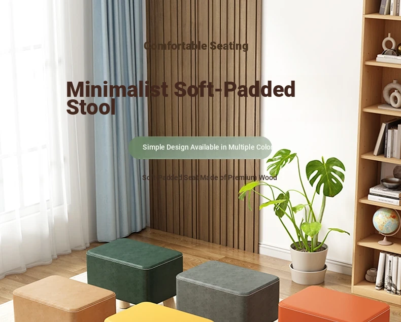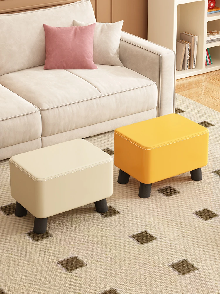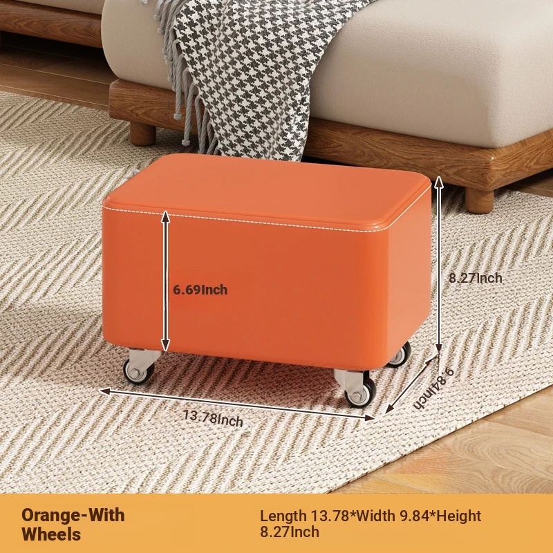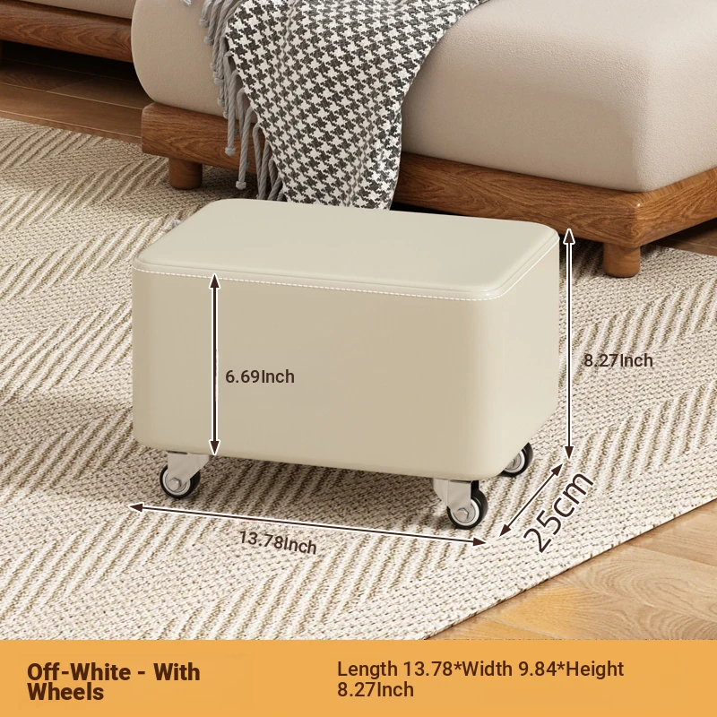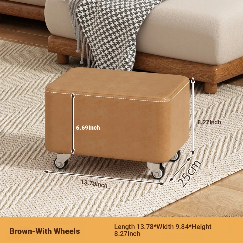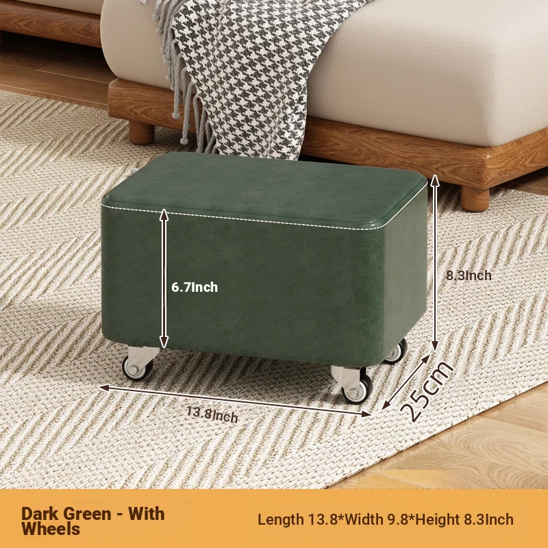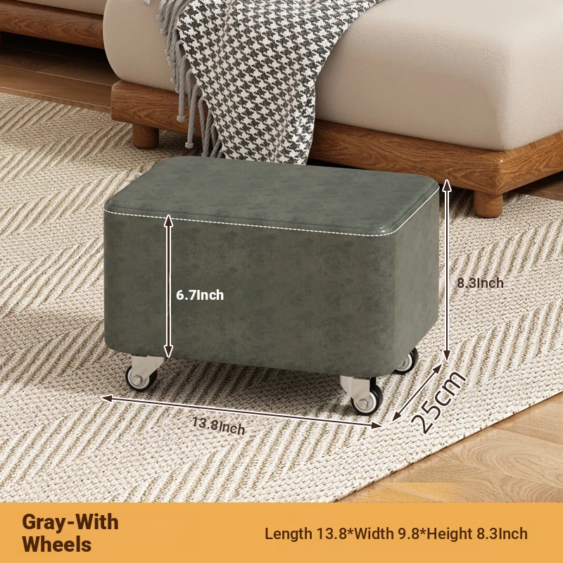 Home Use Stool - Comfortable Low Bench for Living Room, Sofa Footrest, Entryway Shoe Changing Stool, Square Soft-Padded Rolling Stool for Kids and Adults