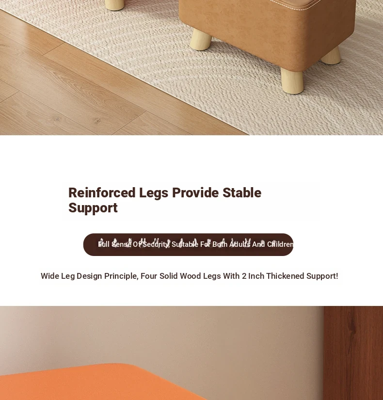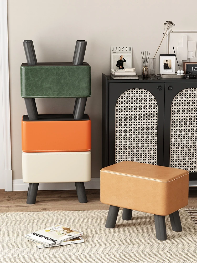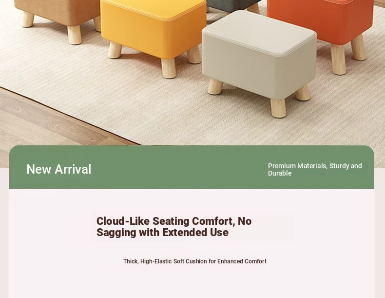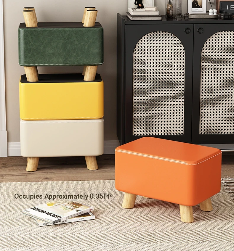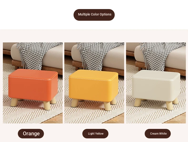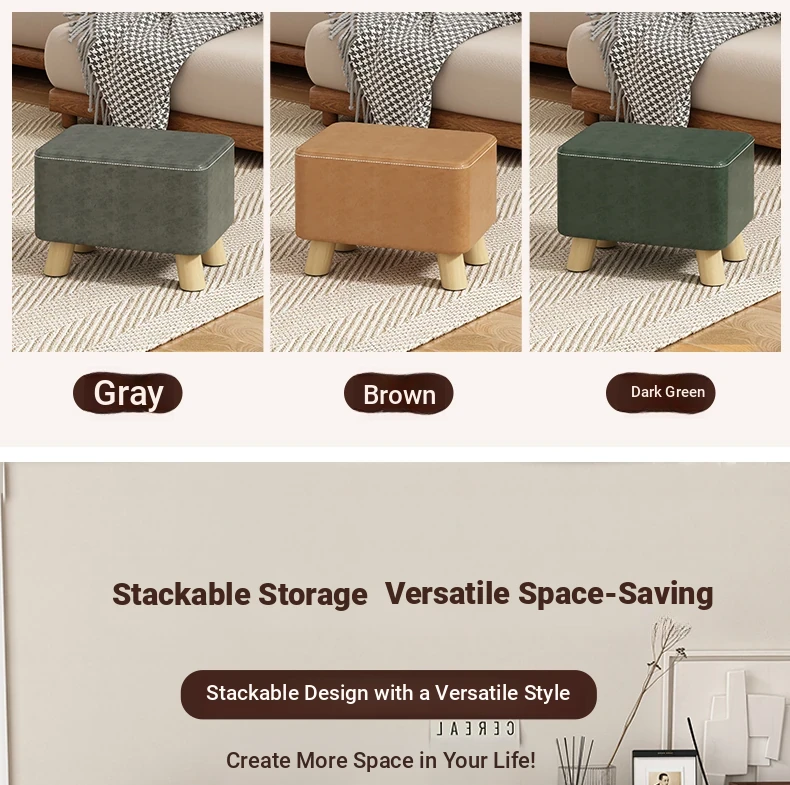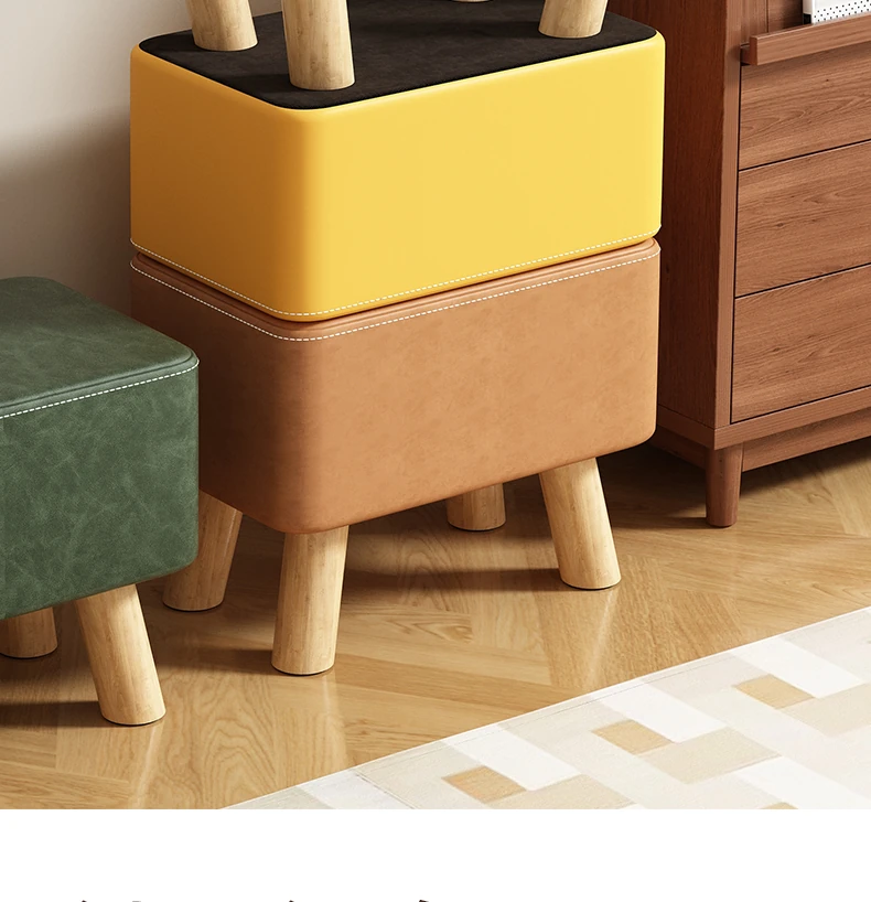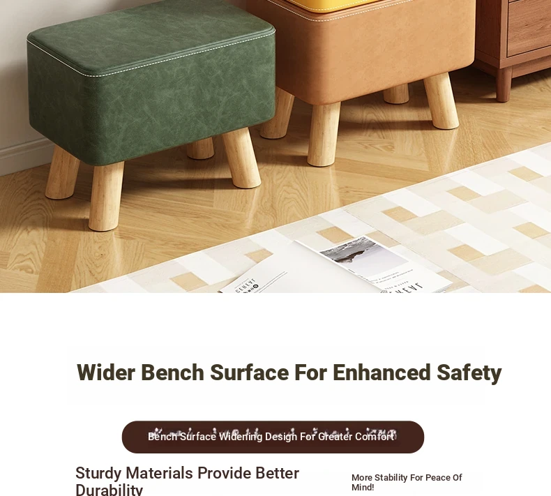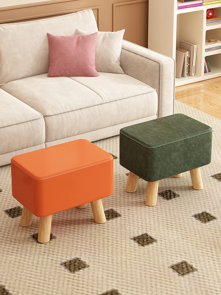 Home Use Stool - Comfortable Low Bench for Living Room, Sofa Footrest, Entryway Shoe Changing Stool, Square Soft-Padded Rolling Stool for Kids and Adults