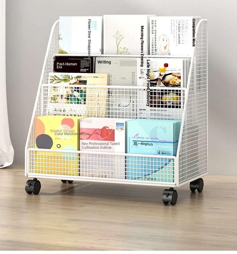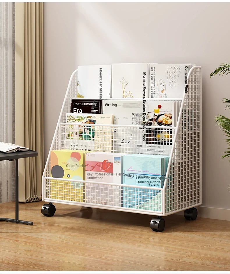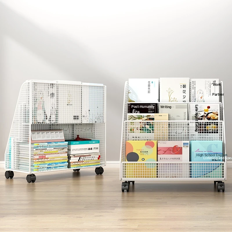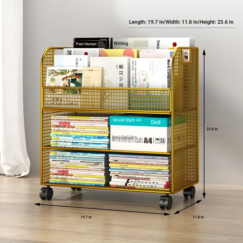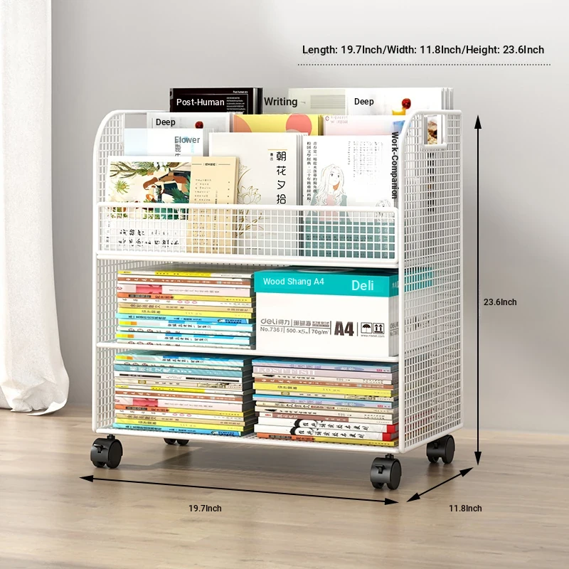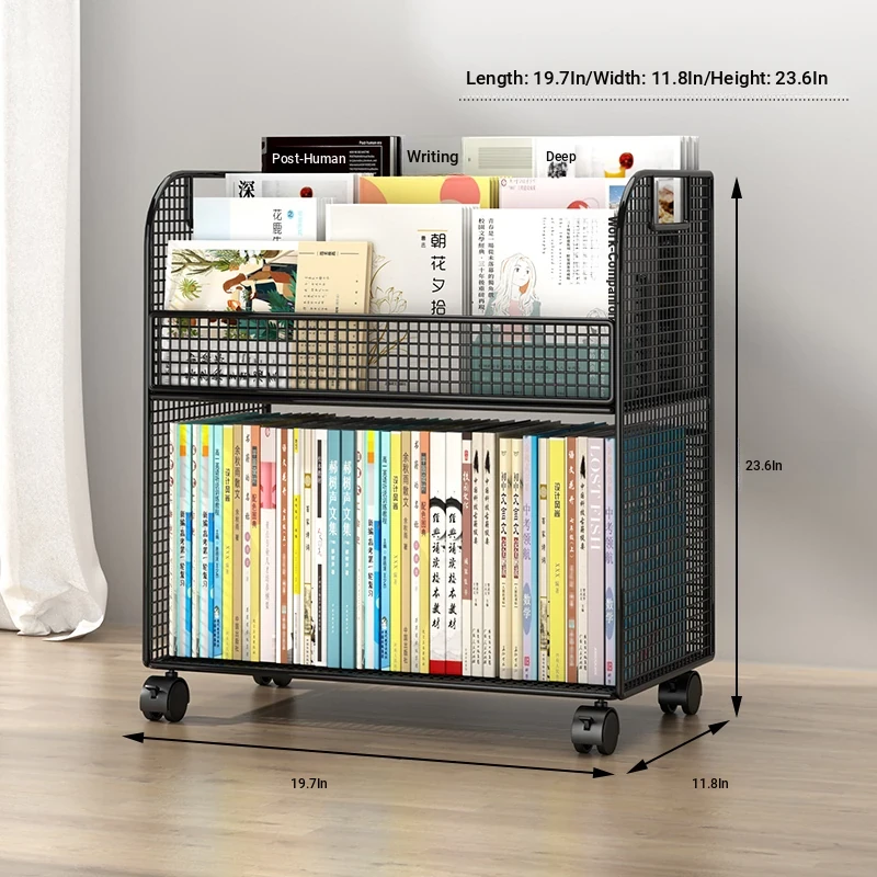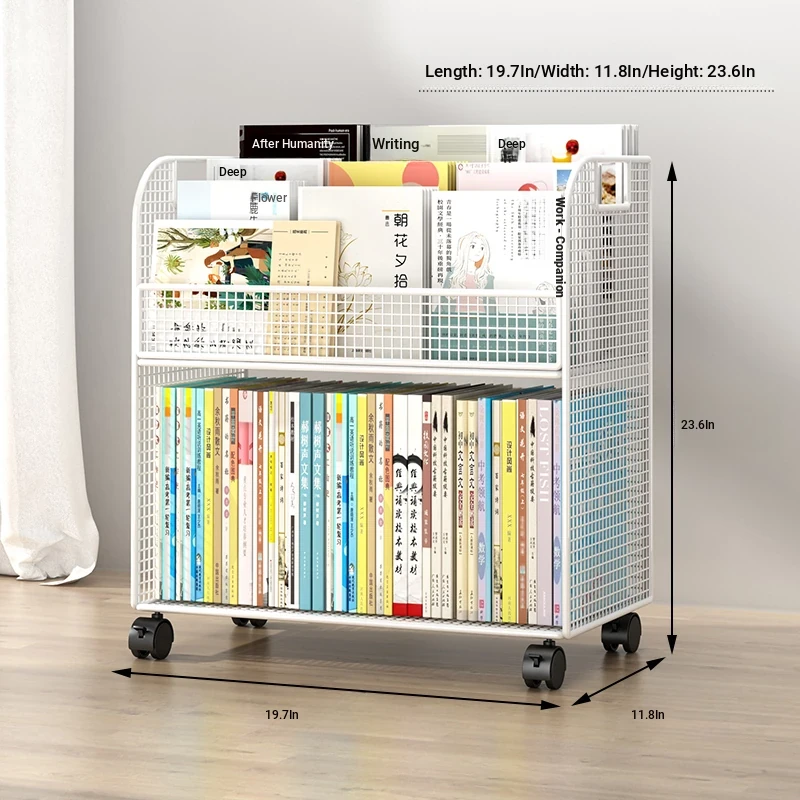 Kids' Floor Bookshelf with Wheels - Portable Storage Rack for Students, Ideal for Organizing Books and Reading Materials Under Desks, Perfect for Small Spaces and Easy to Move