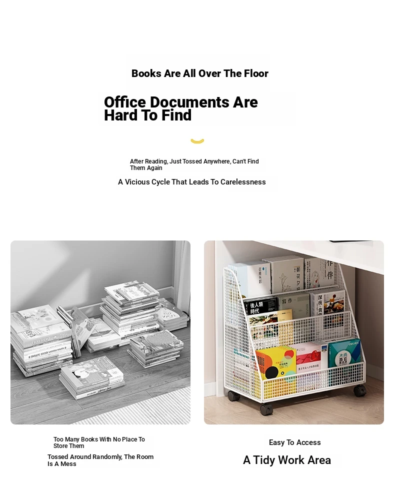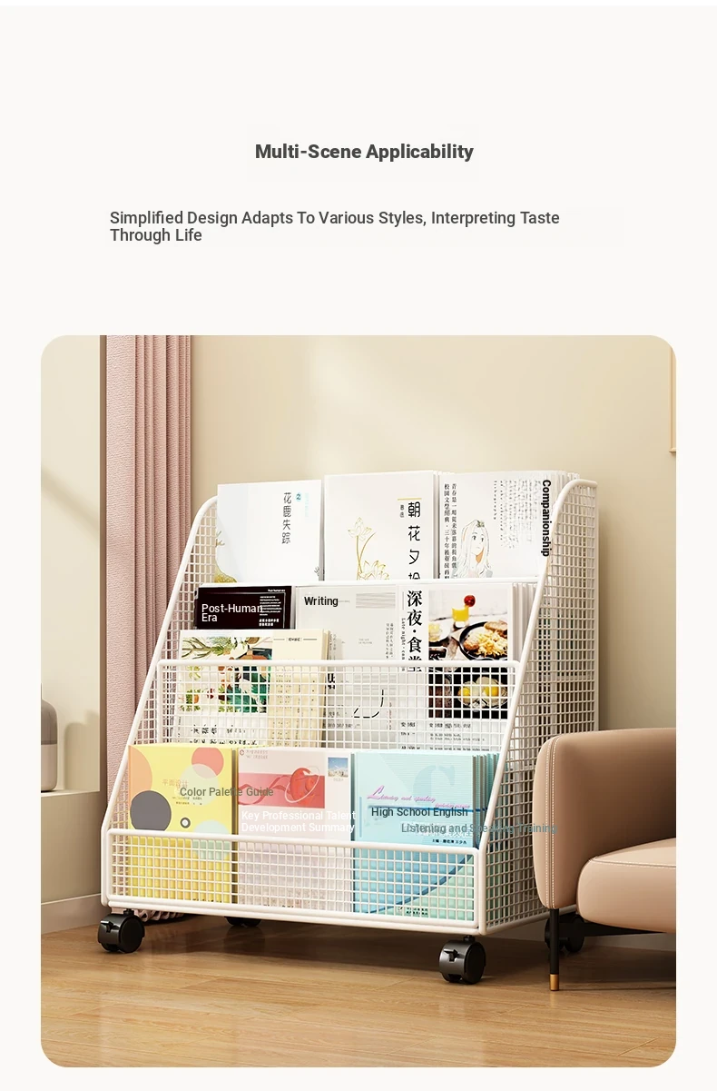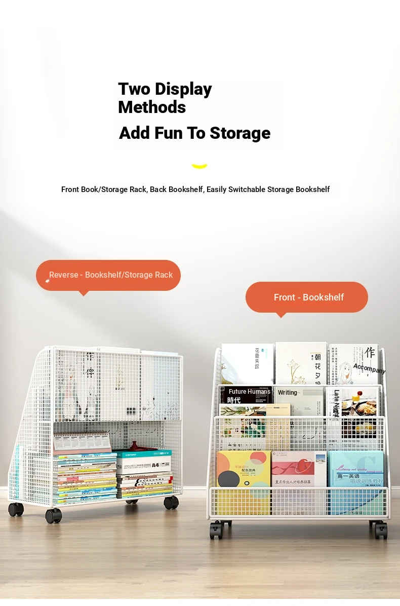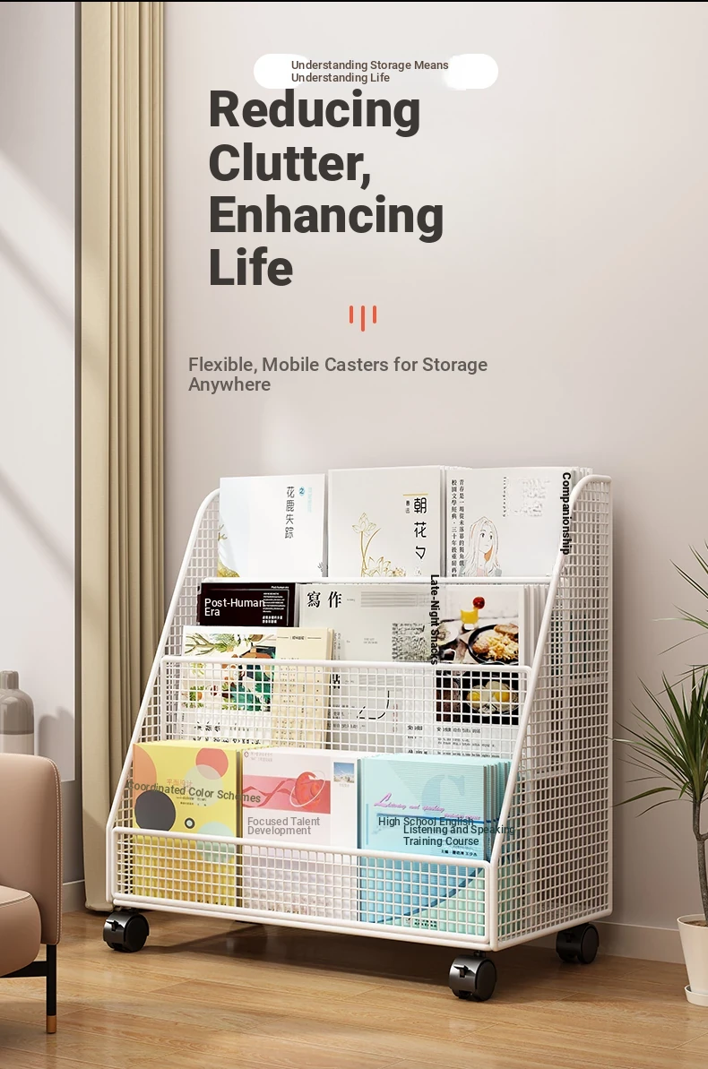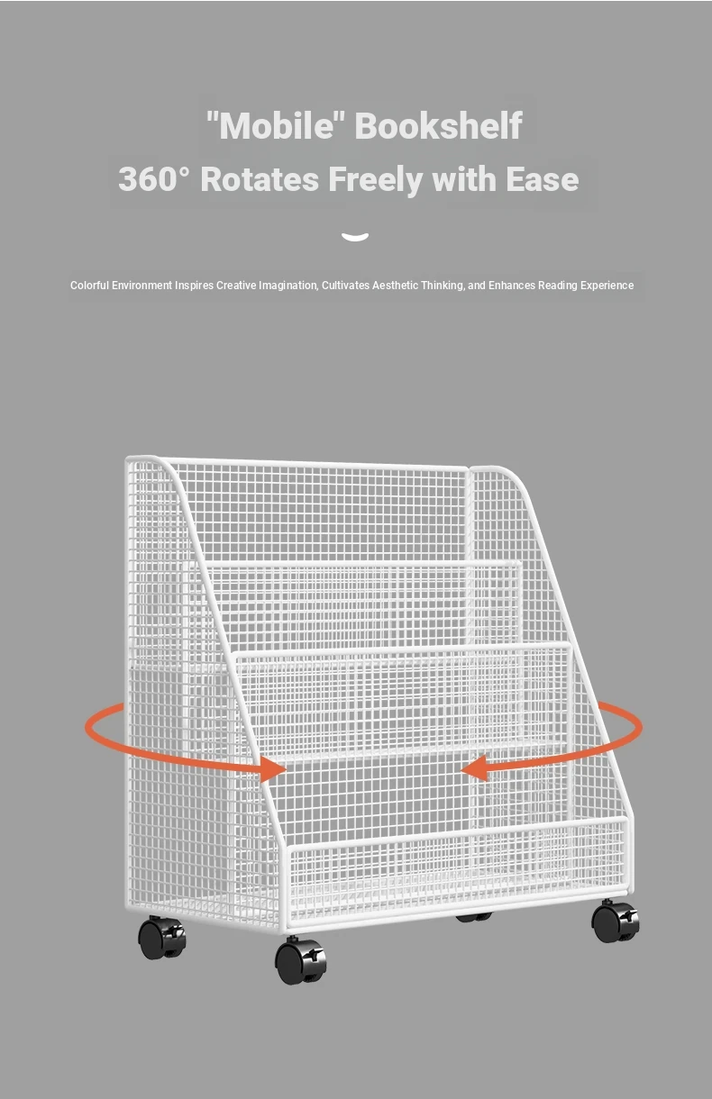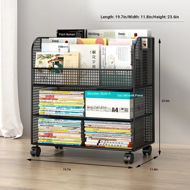 Kids' Floor Bookshelf with Wheels - Portable Storage Rack for Students, Ideal for Organizing Books and Reading Materials Under Desks, Perfect for Small Spaces and Easy to Move