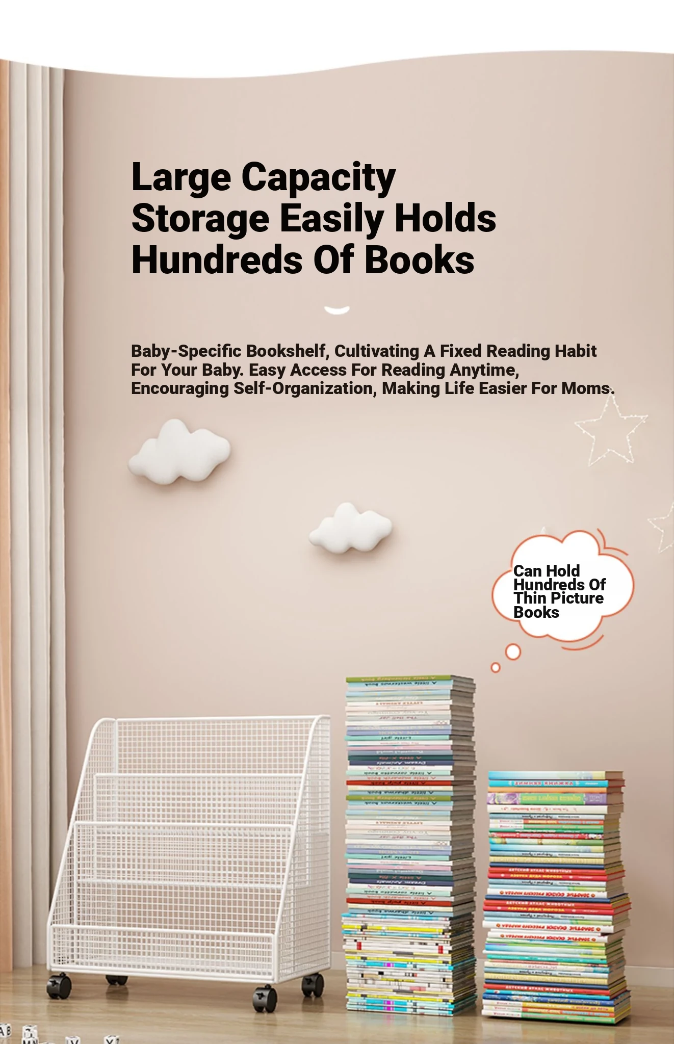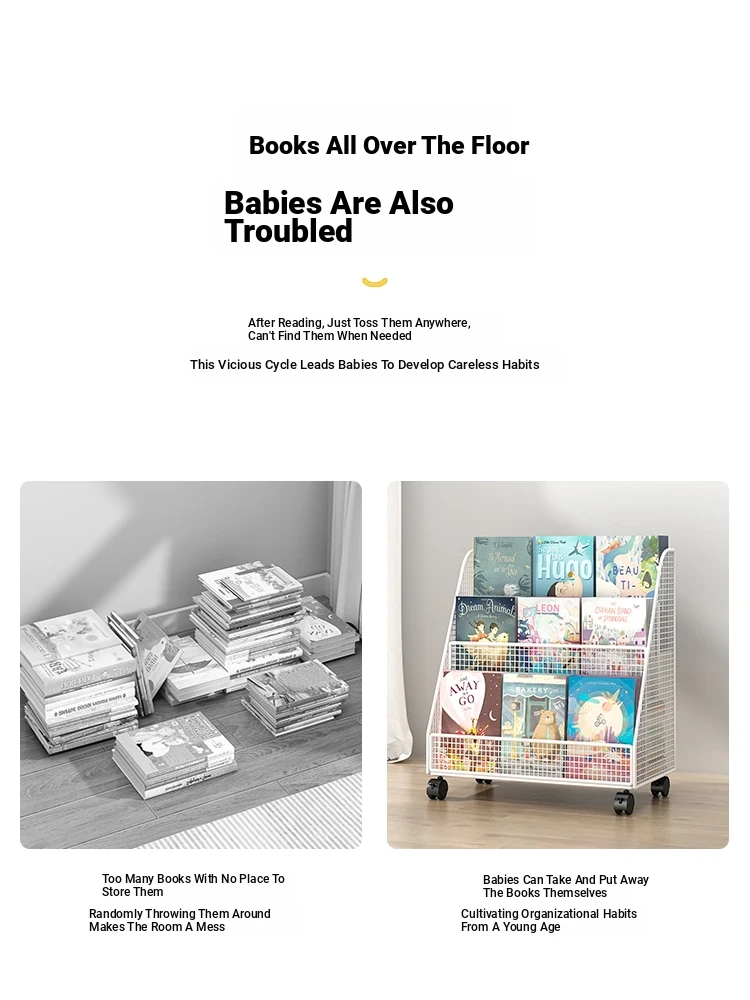 Kids' Reading Stand - Portable Floor Bookshelf with Wheels for Home Use, Ideal for Organizing Children's Toys and Picture Books, Perfect for Little Readers!