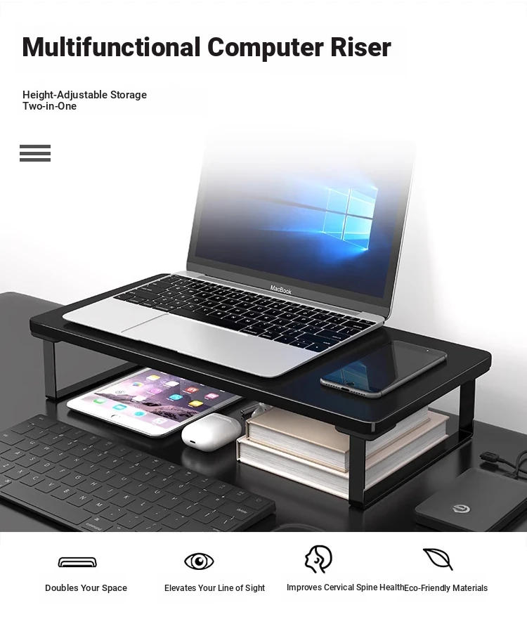 Laptop Riser Stand for Office - Elevate Your Monitor Screen with a Stylish Desktop Storage Solution for Enhanced Organization and Comfort