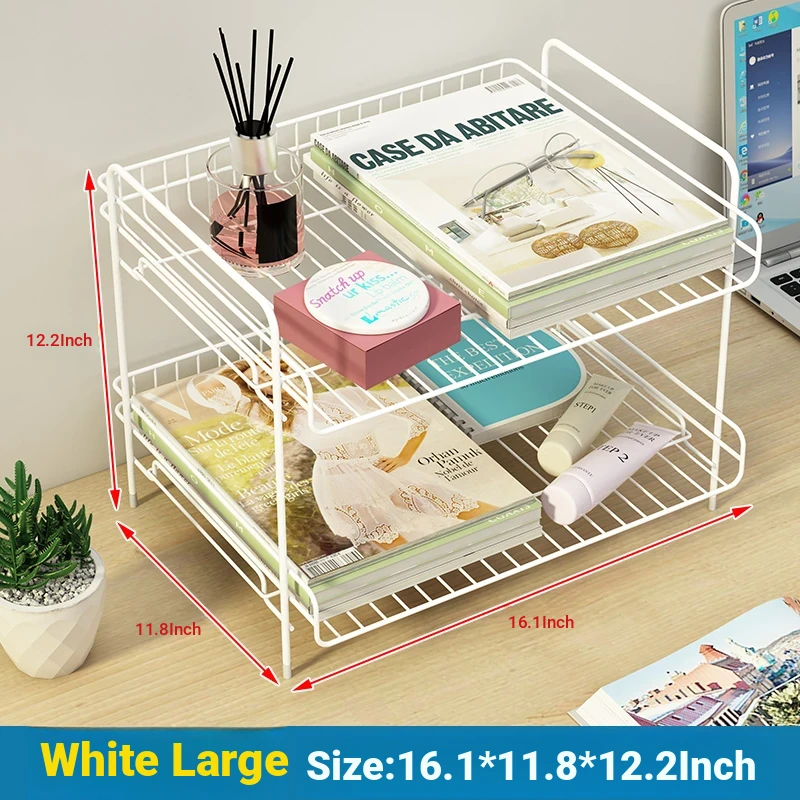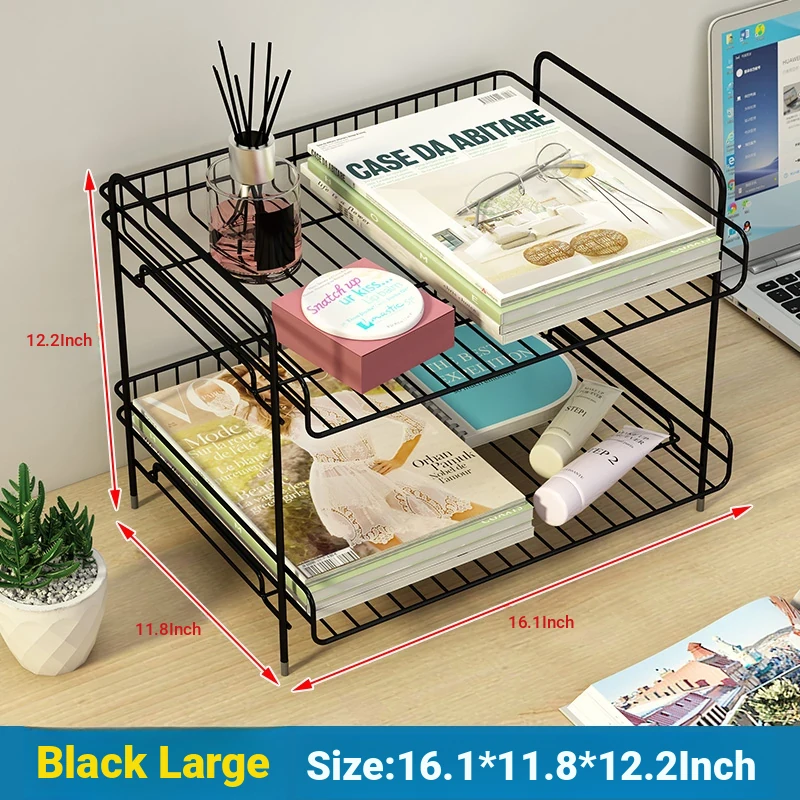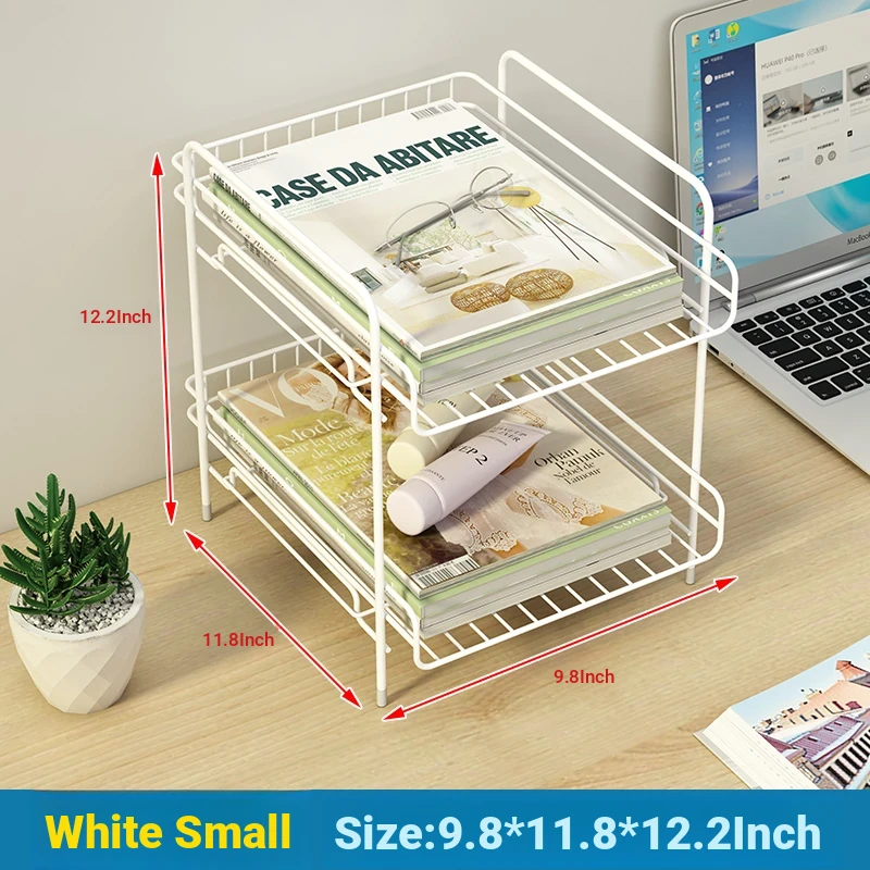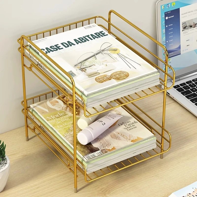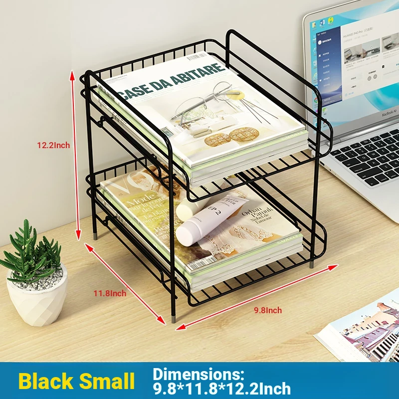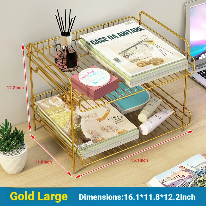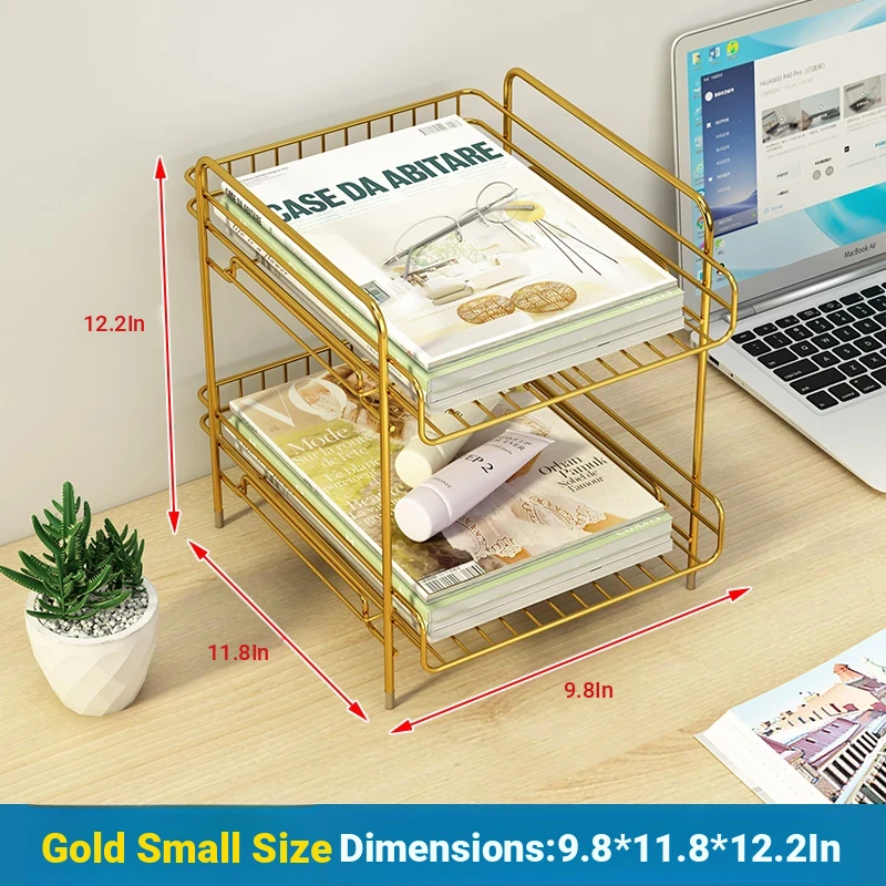 Metal Multi-Tier Desktop Organizer - Stylish Bookshelf for Bedside, Window Sill, or Office Desk Storage Solutions