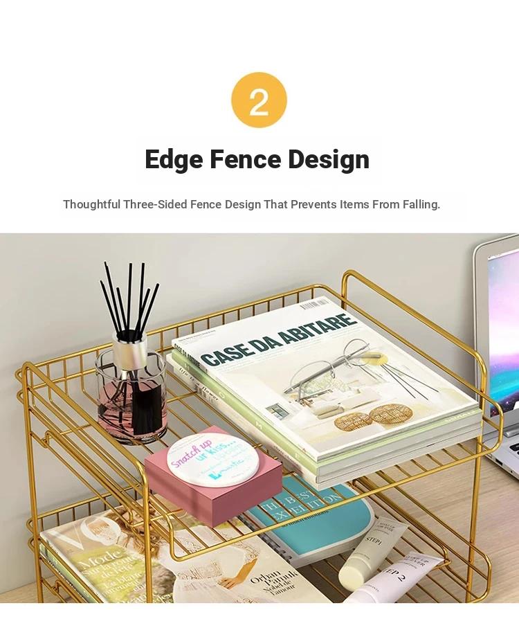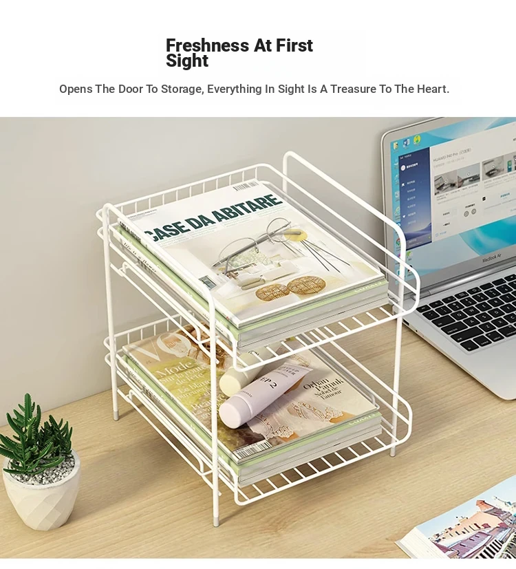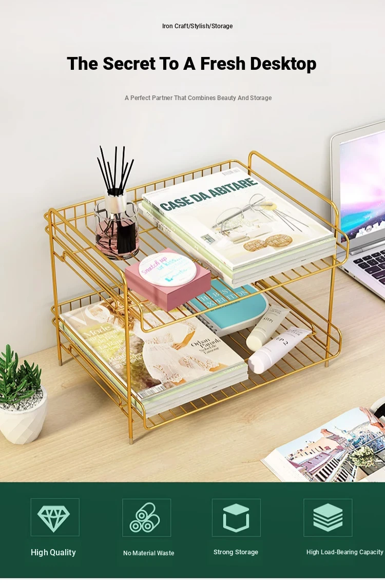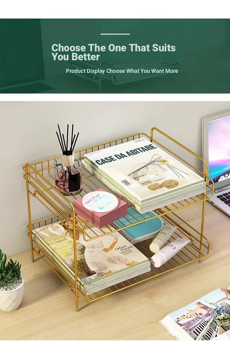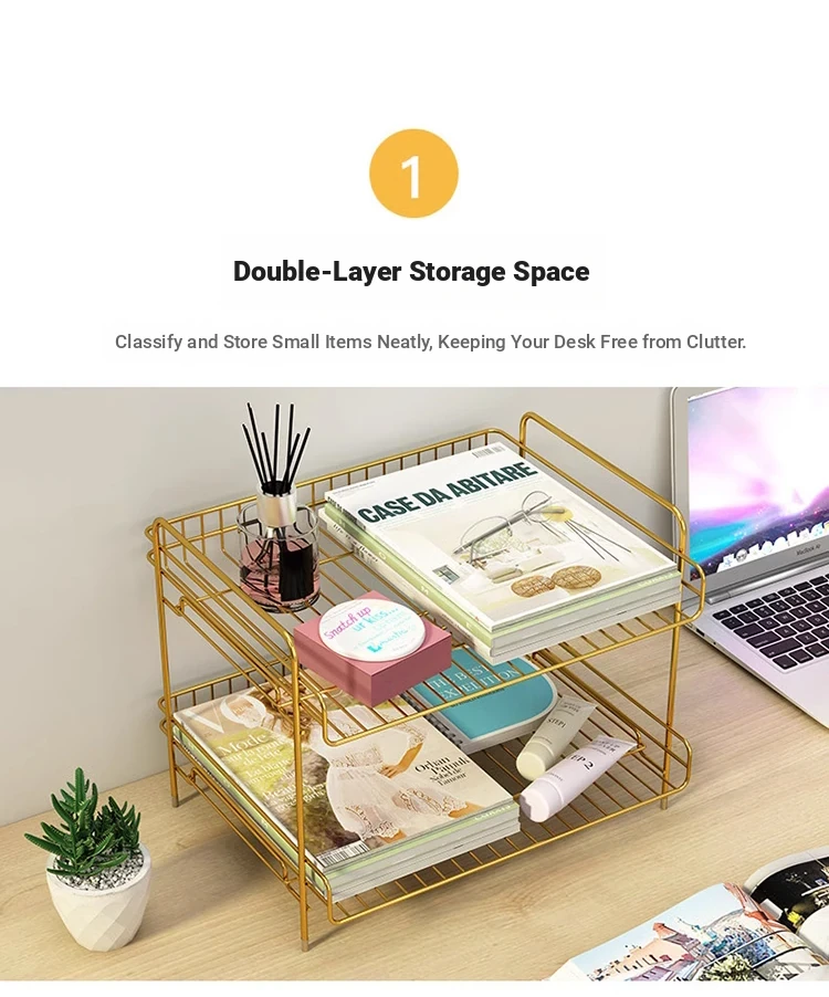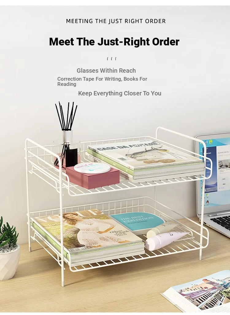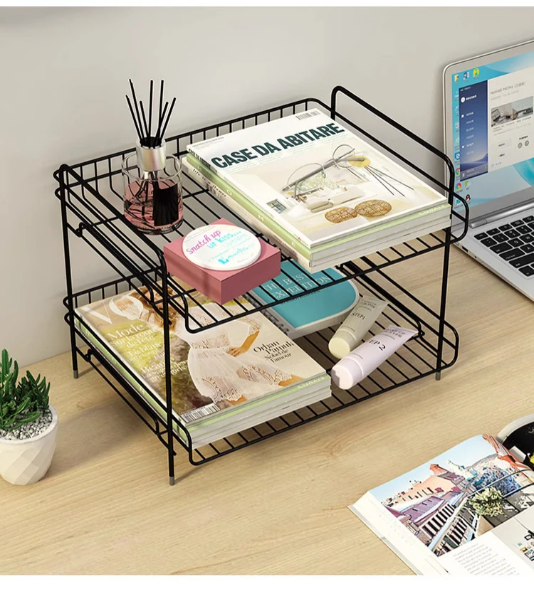 Metal Multi-Tier Desktop Organizer - Stylish Bookshelf for Bedside, Window Sill, or Office Desk Storage Solutions
