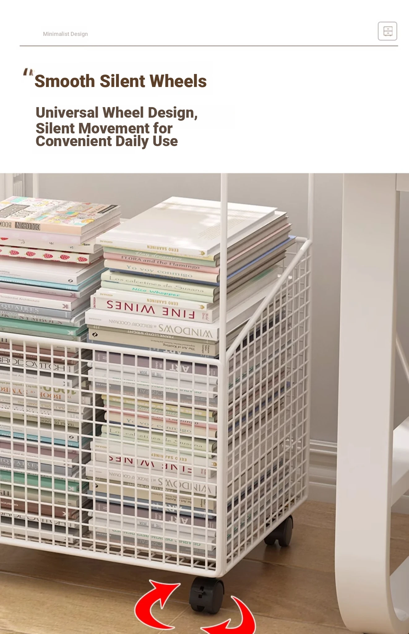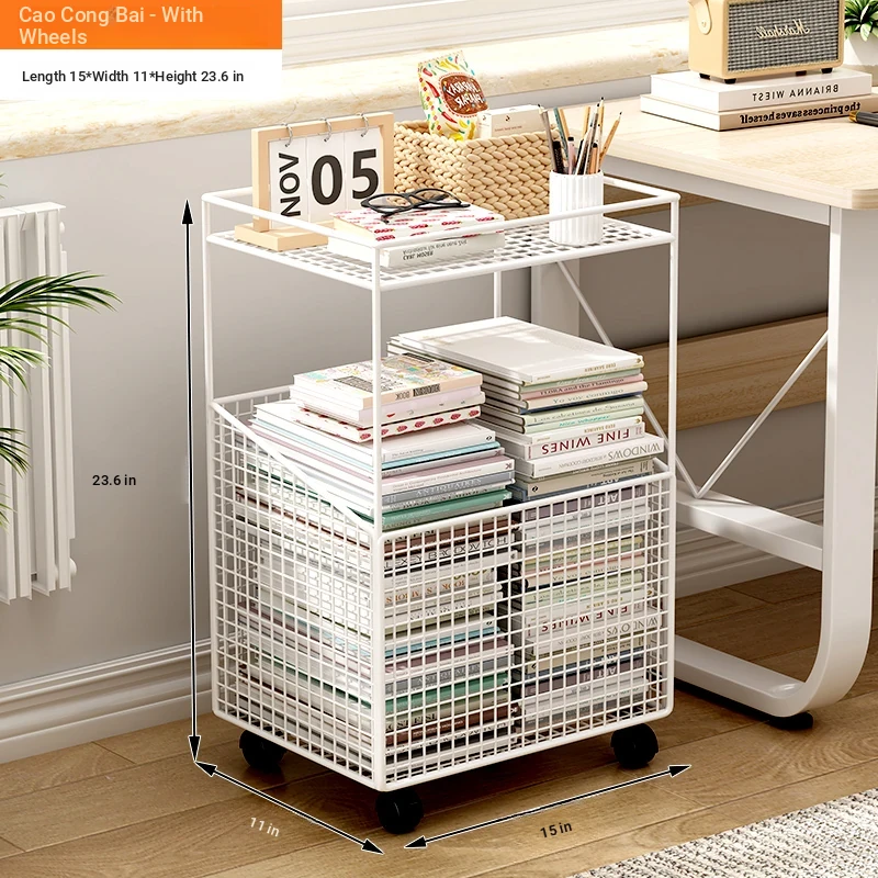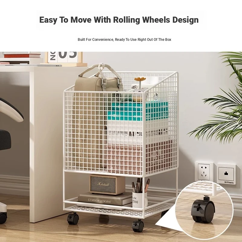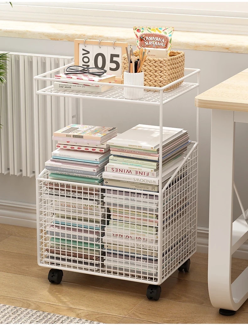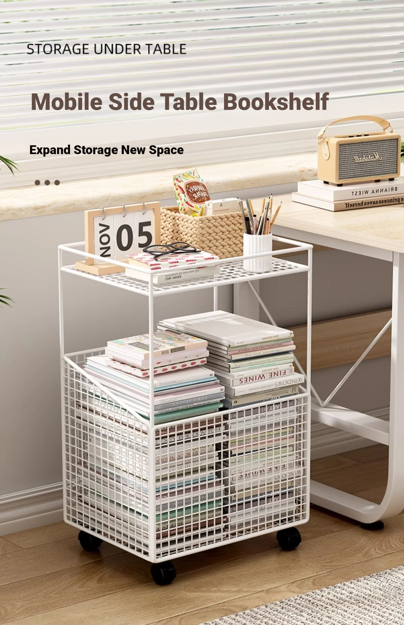 Mobile Bookshelf for Kids - Rolling Storage Cabinet Under Desk with Book Organizer and Backpack Rack, Simple and Stylish Freestanding Bookshelf for Home Use